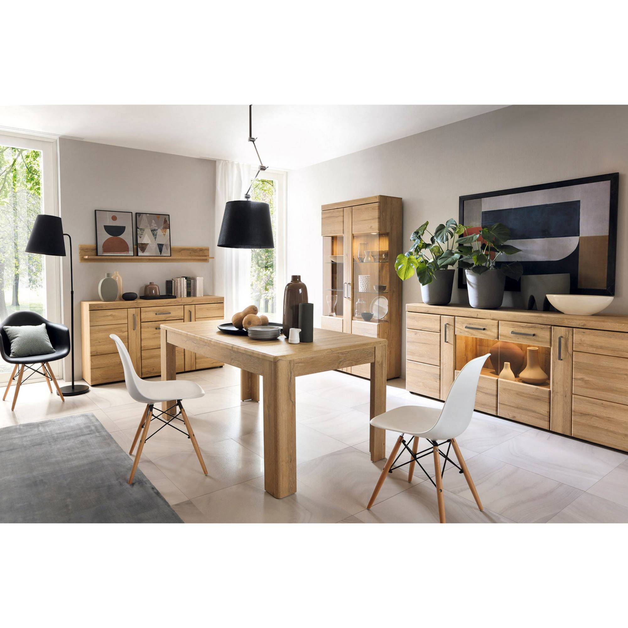 Túžite po domove plnom pokoja a pozitívnej energie? Dokonalé spojenie elegancie a útulnosti ponúka komoda CORTINA II. Masívna štruktúra dvierok pripomína klasický drevený nábytok. Komoda tak pôsobí masívnym dojmom, očarí vás výraznou kresbou dreva a získa si vás aj svojím tichým zatváraním "Softclose". Kombinácia plných a presklených dvierok poskytuje dostatok variabilne členeného úložného priestoru. V stredovom presklenom priestore sa bude vynímať elegantný riad, poháre alebo rodinné suveníry. S komodou CORTINA II bude vaša obývačku či jedáleň dokonalá.