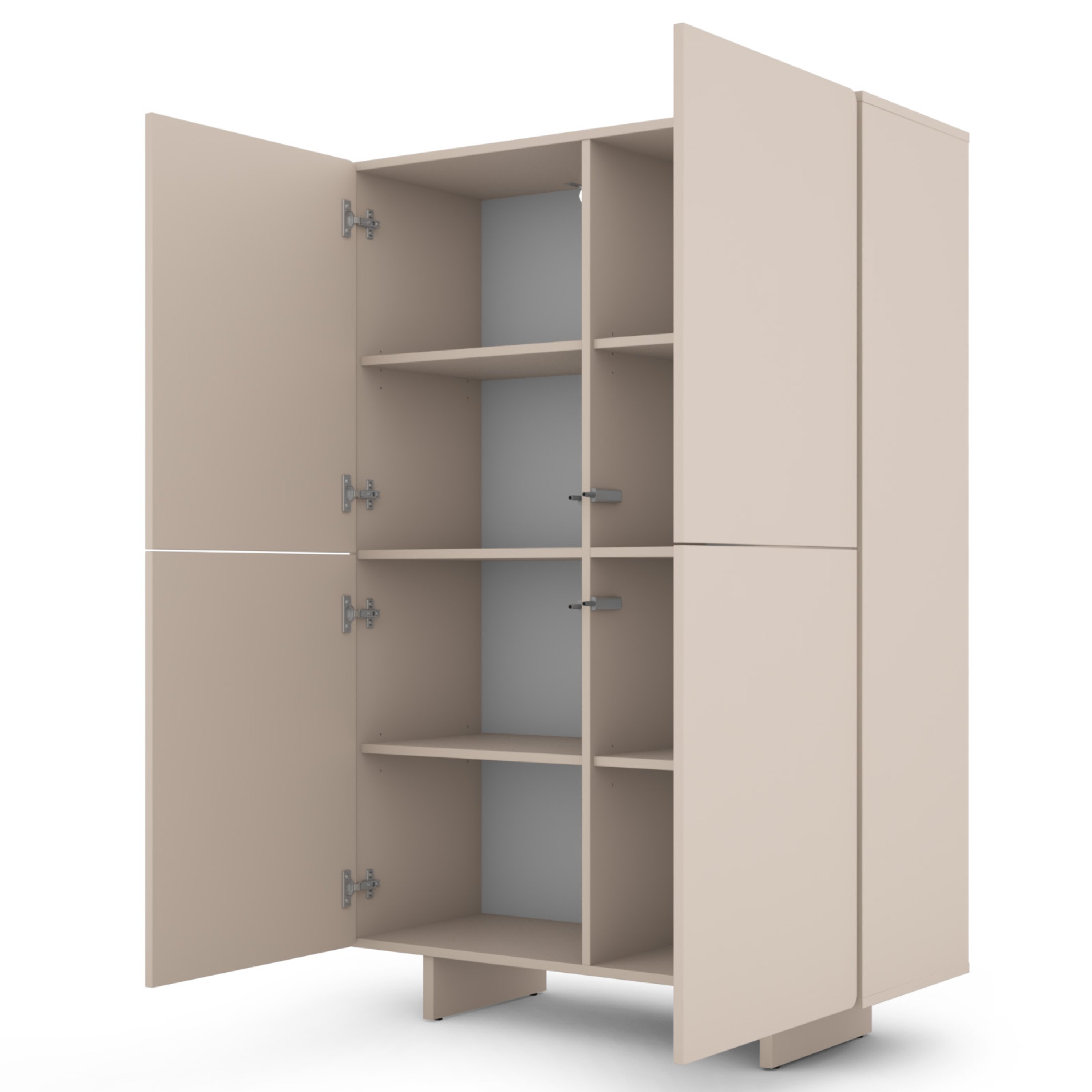 Komoda disponuje vloženými policami, kam môžete uložiť všetko, čo nechcete mať priamo na očiach. Na celkovom čistom vzhľade sa podieľajú dvierka v bezúchytovom vyhotovení, ktorých manipuláciu uľahčuje systém otvárania PUSH TO OPEN. Povrch komody sa vyznačuje jednoduchou údržbou.