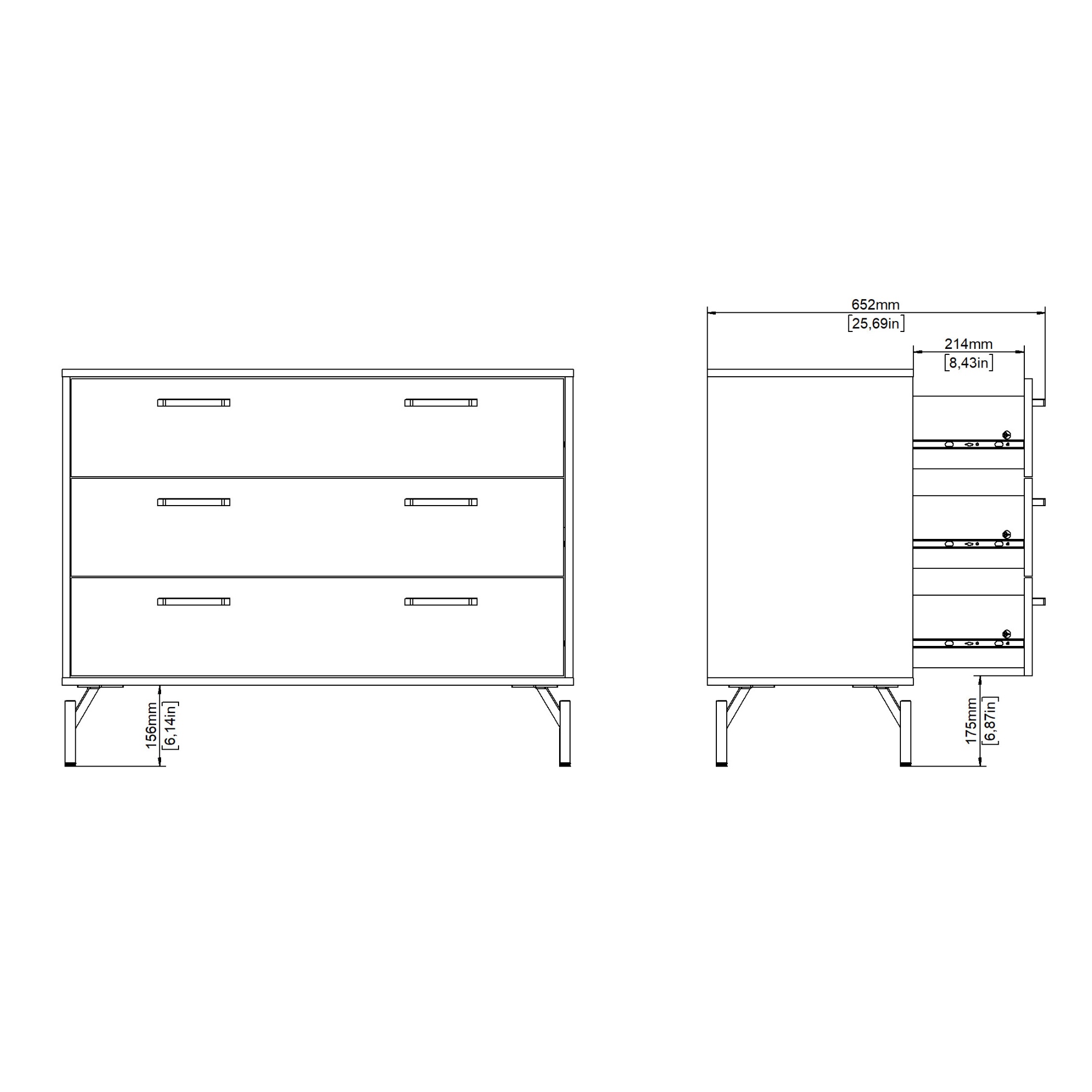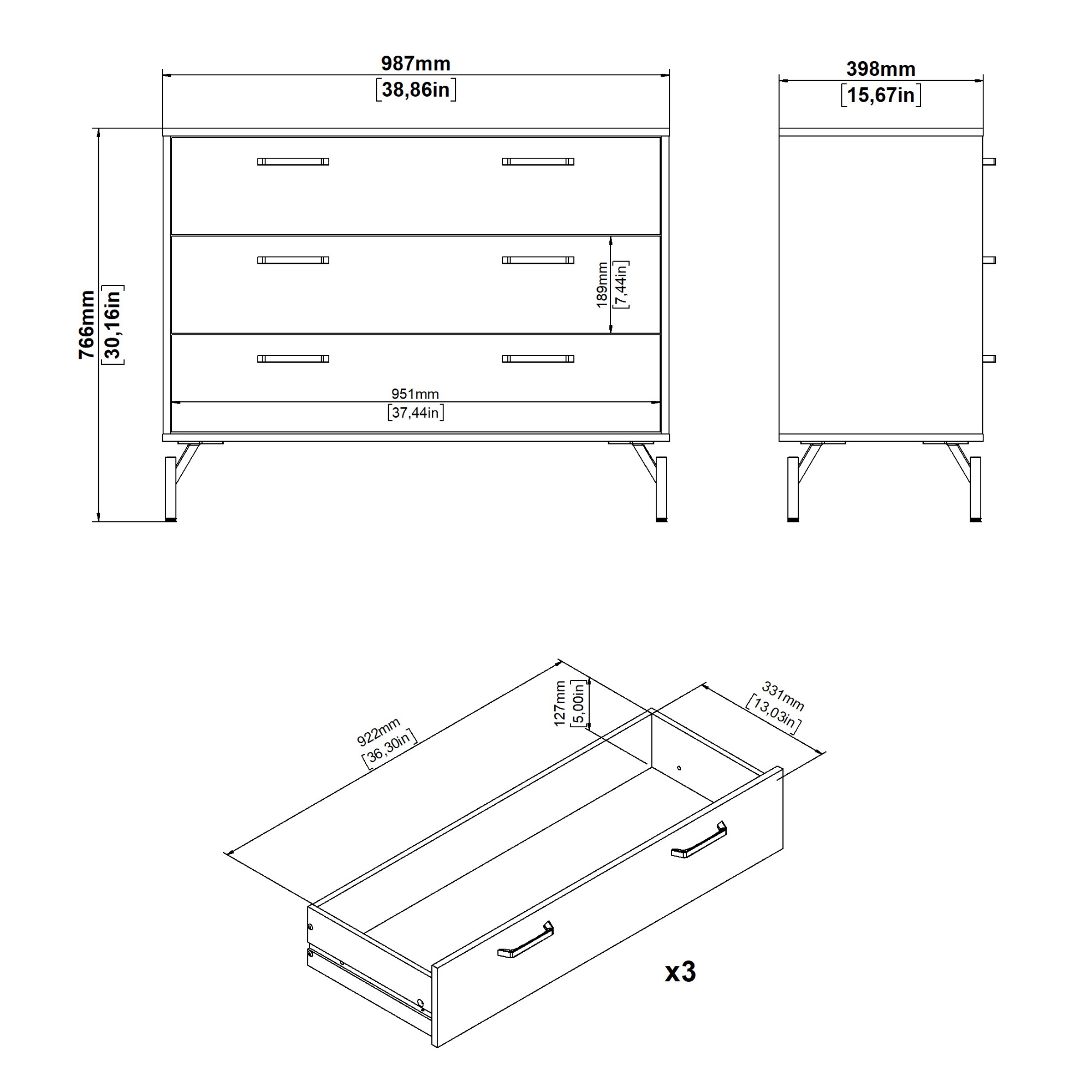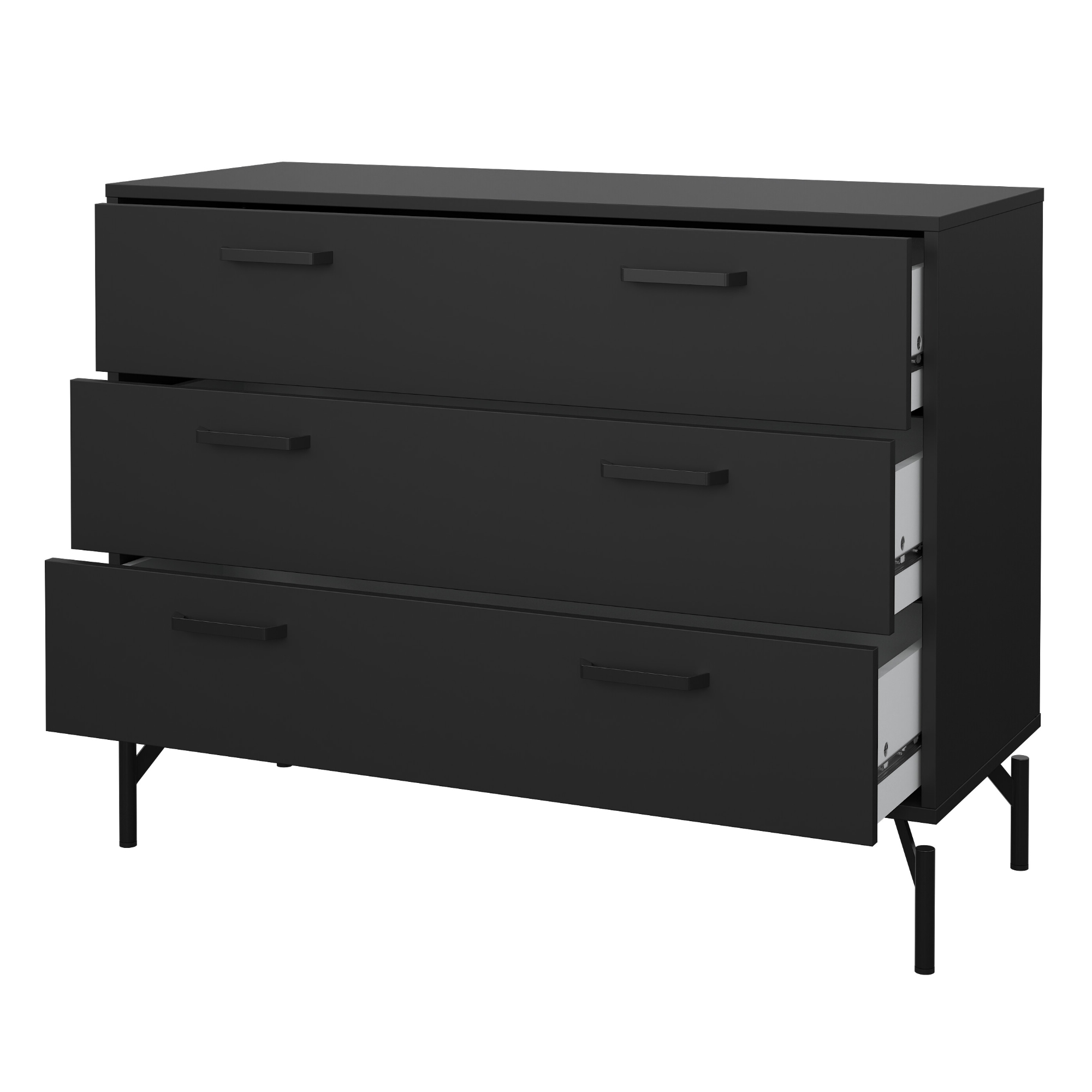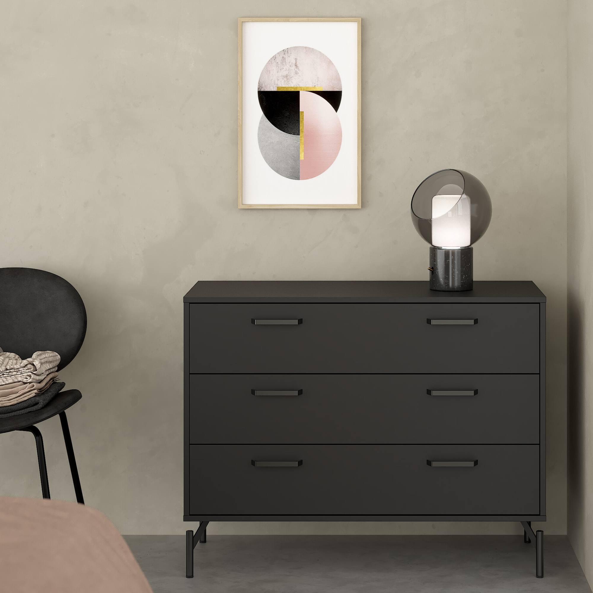 Komoda disponuje dostatkom úložného priestoru, ktorý je tvorený 3 zásuvkami. Aby sa so zásuvkami ľahšie manipulovalo, sú vybavené praktickými kovovými rúčkami.