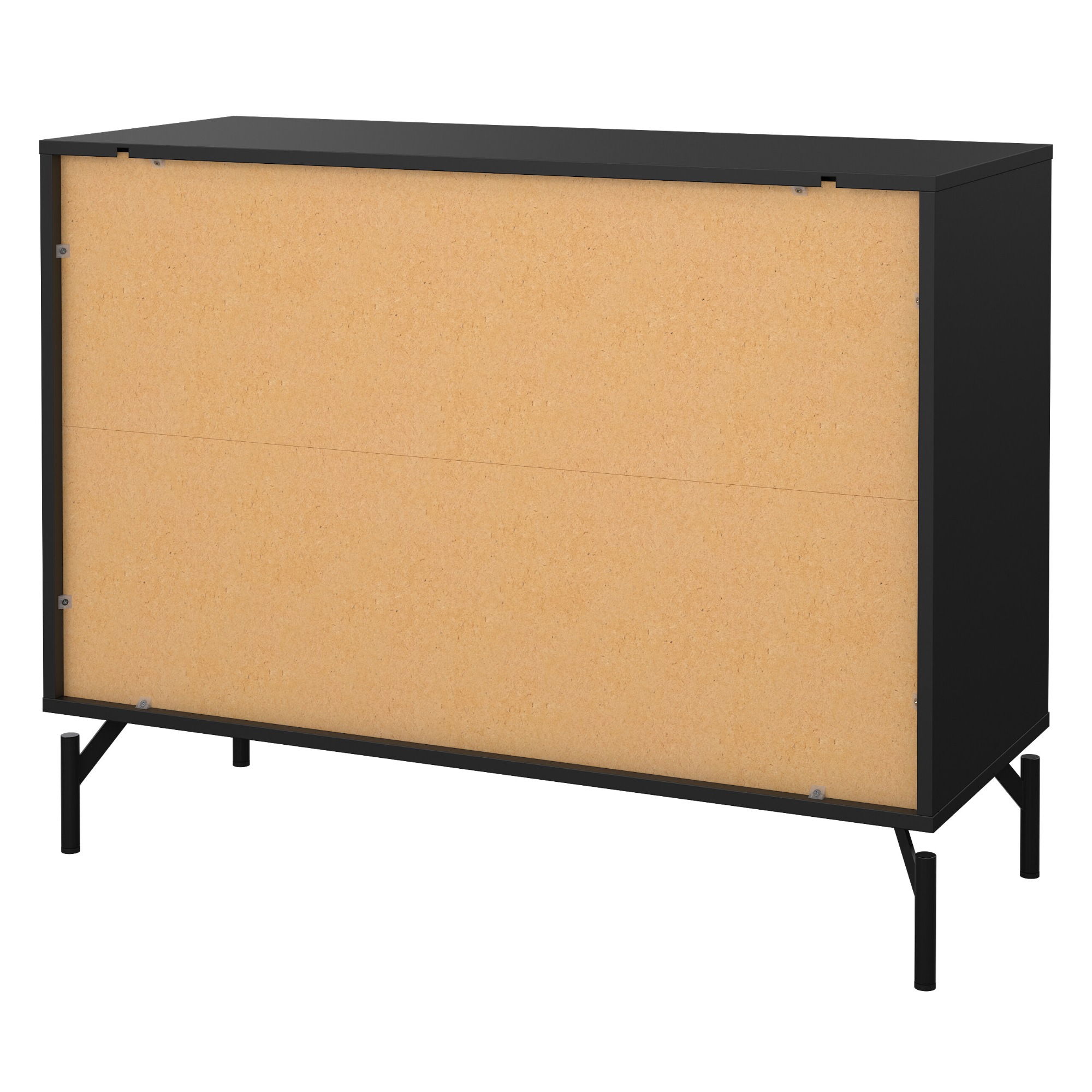 Z kovu sú aj pevné a stabilné nohy komody, zatiaľ čo na výrobu korpusu bola využitá laminovaná drevotriesková doska.