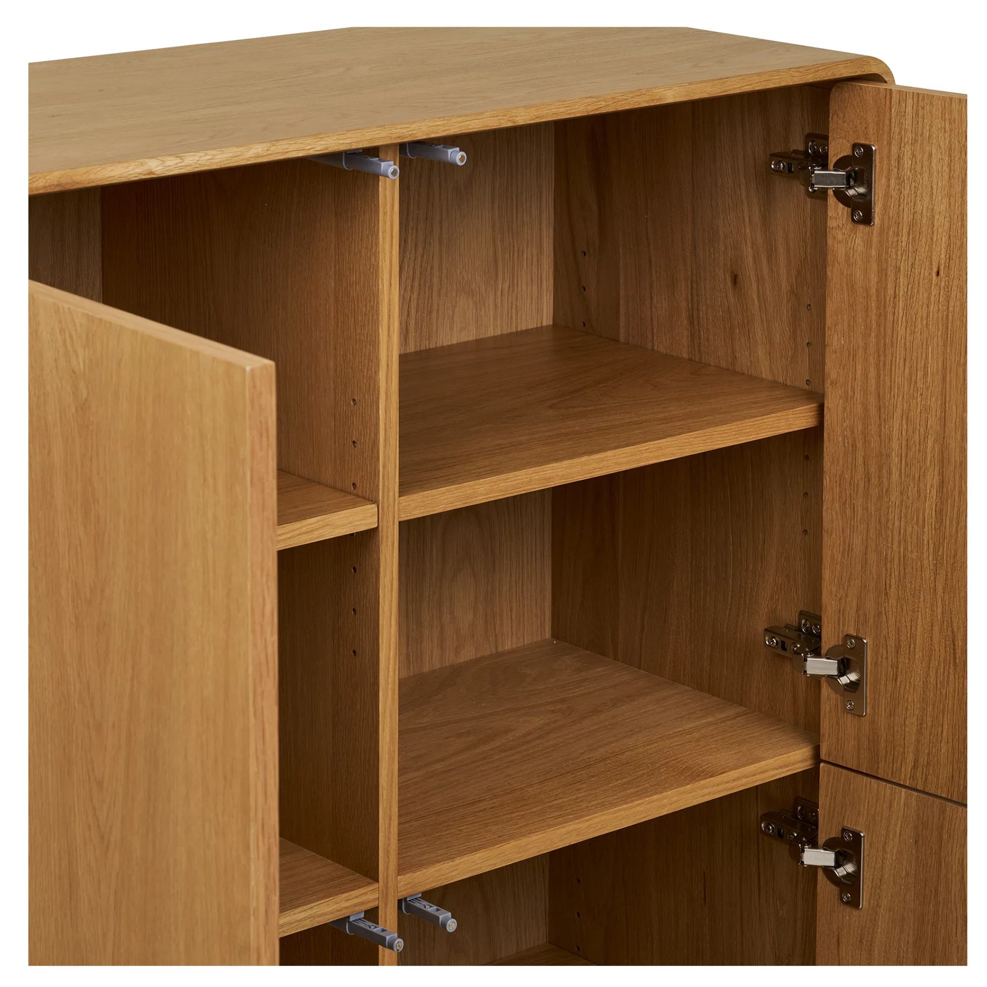 Za jej dvierkami nájdete 6 vložených políc, ktoré vám umožnia prehľadne uložiť všetko, čo sa dovnútra komody rozhodnete umiestniť. Pretože má komoda vysoké nohy, nebude upratovanie pod ňou predstavovať žiadny problém.
