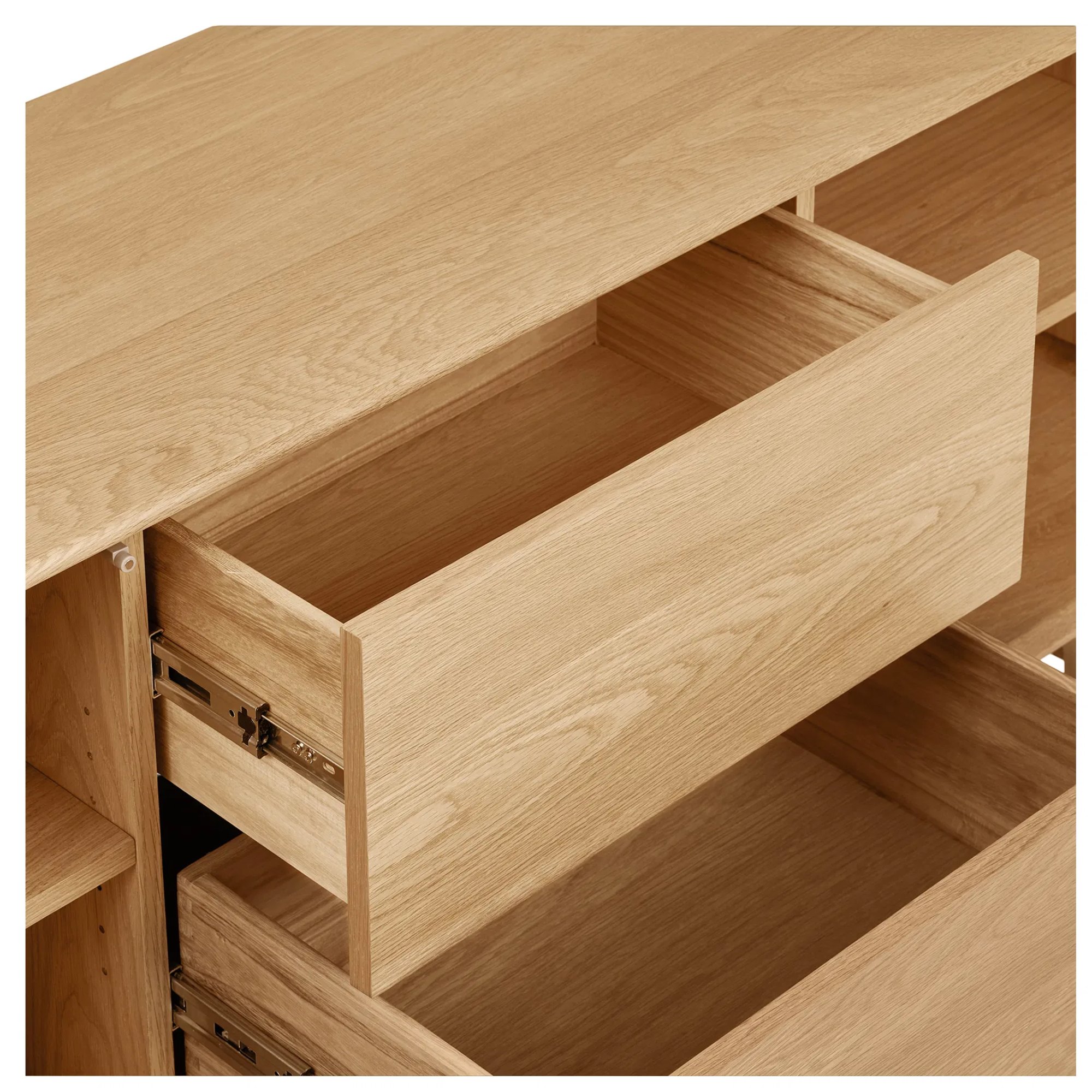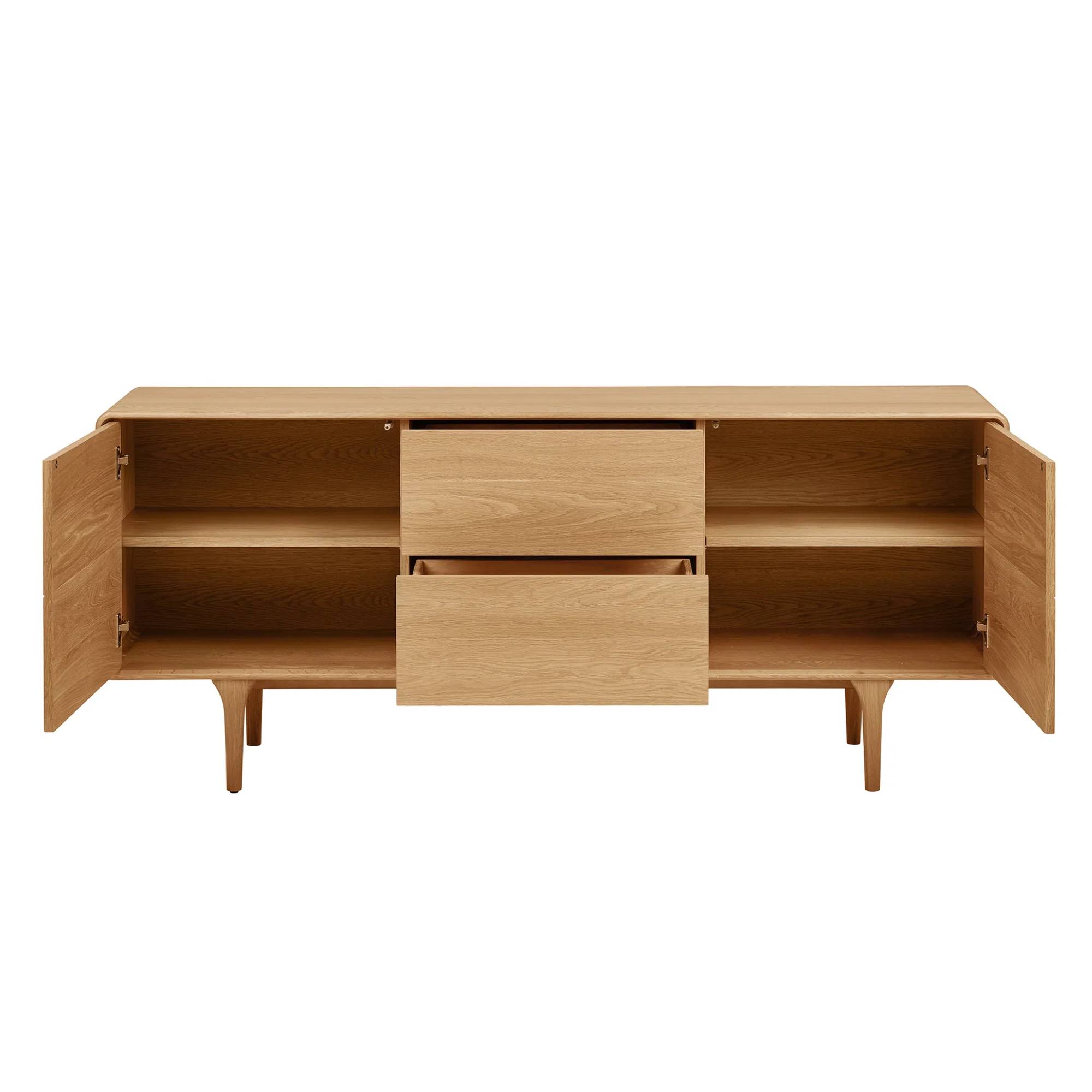 Na výrobu komody DORWAN bola využitá ľahko udržovateľná drevovláknitá doska MDF, ktorá je doplnená dyhou.