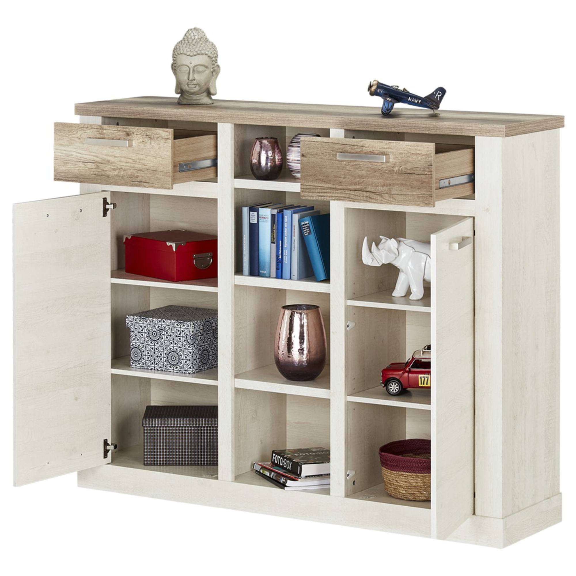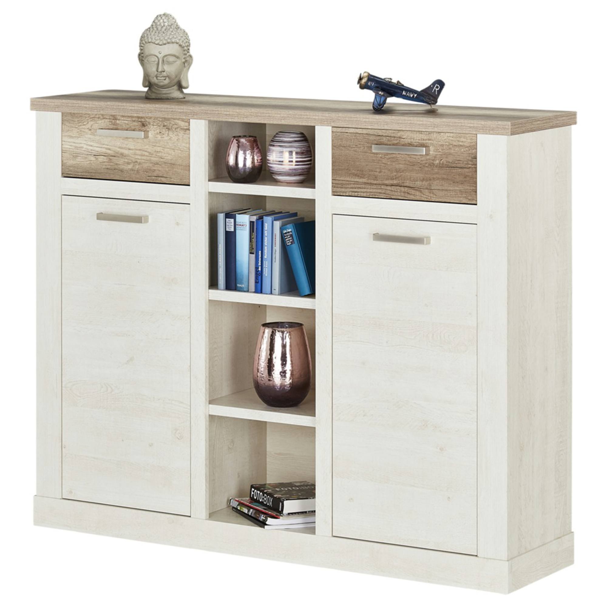 Komoda DURO 4 - pínia biela/dub antik