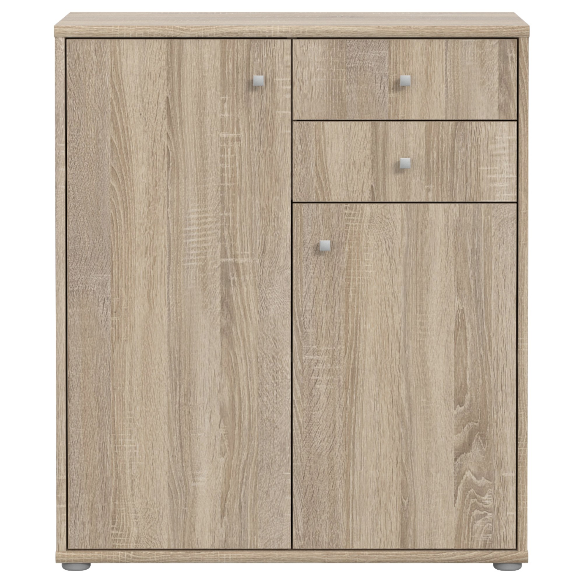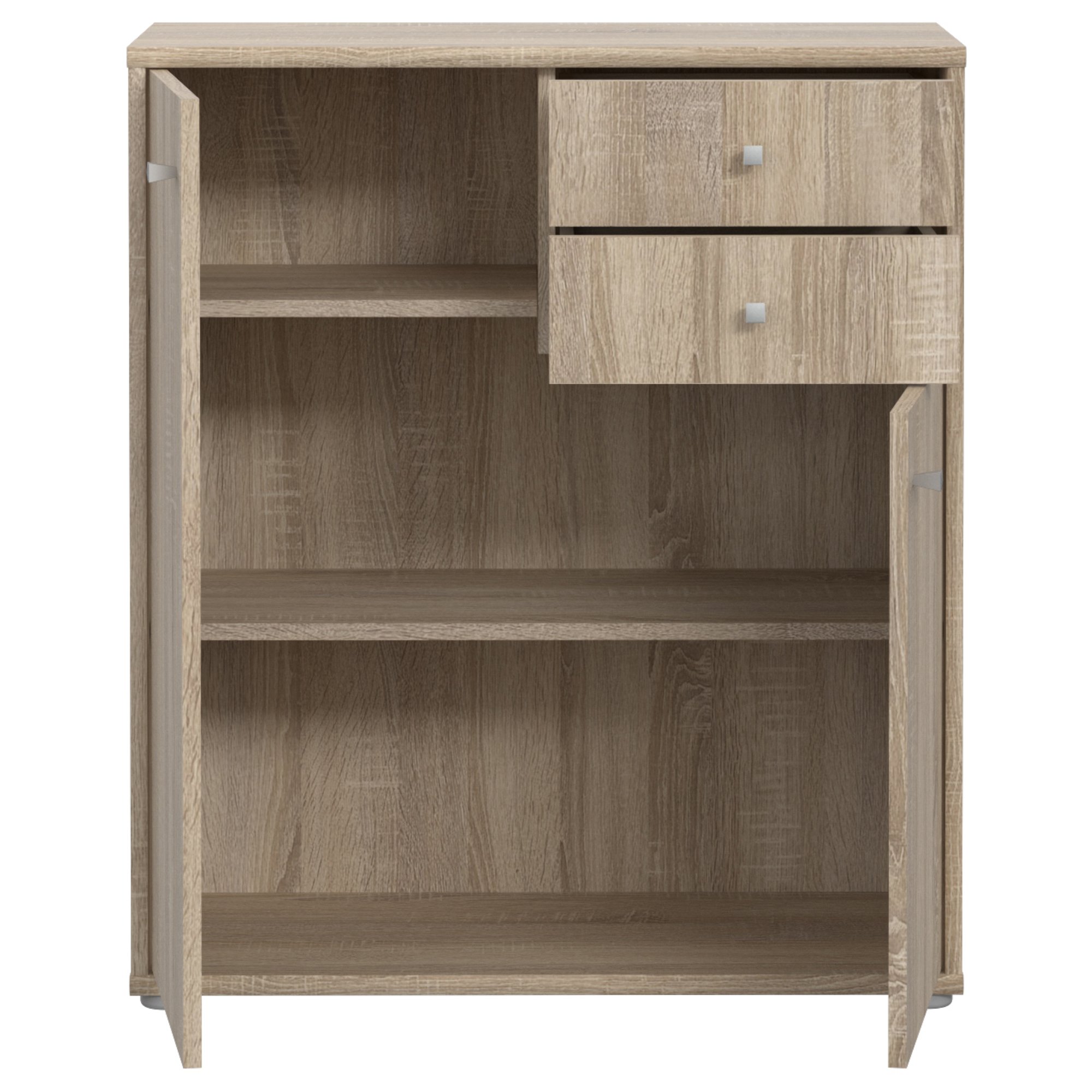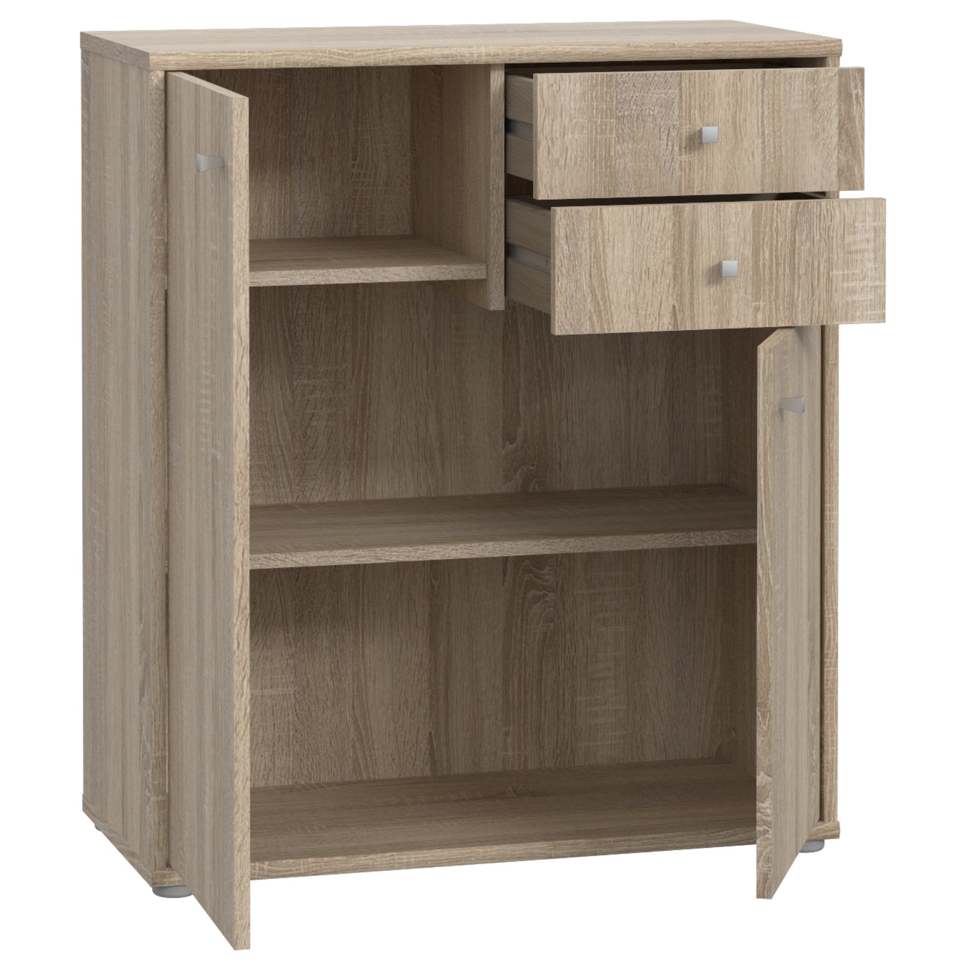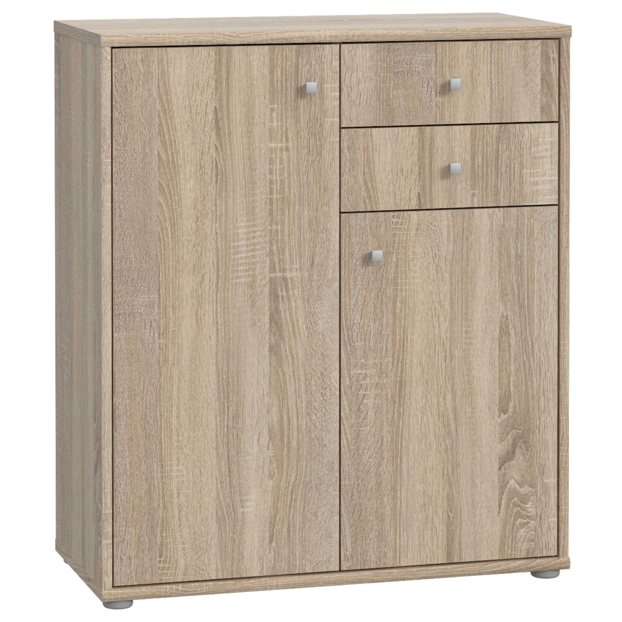Vďaka priestoru v zásuvkách a policiach budete mať vždy prehľad o vašich uložených veciach. Decentné rúčky plnia praktickú funkciu na ľahšie otváranie. Horná doska navyše poslúži na umiestnenie vašich sezónnych dekorácií, fotografií či izbových rastlín. Komoda je vyrobená z materiálu, ktorý je ľahký na údržbu.