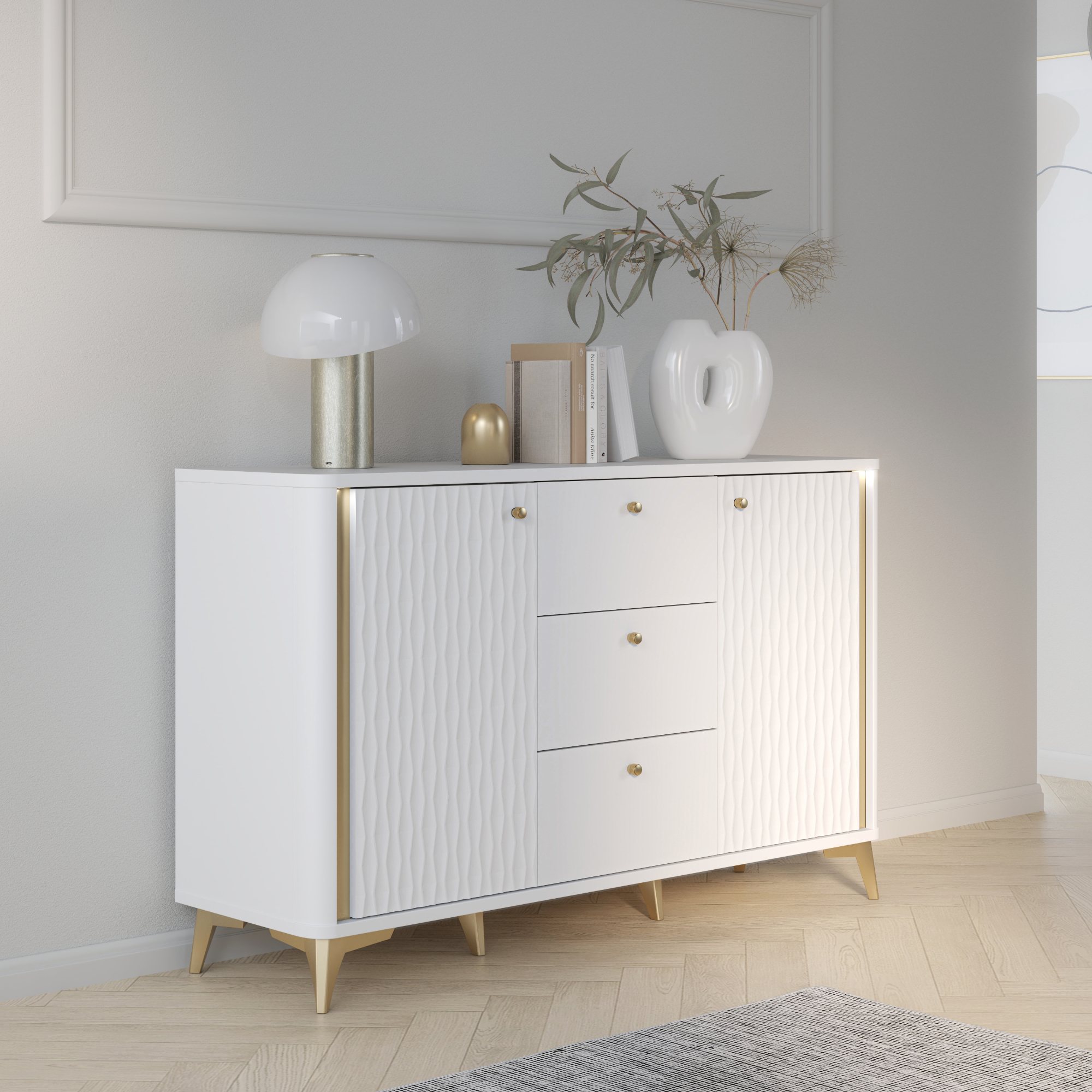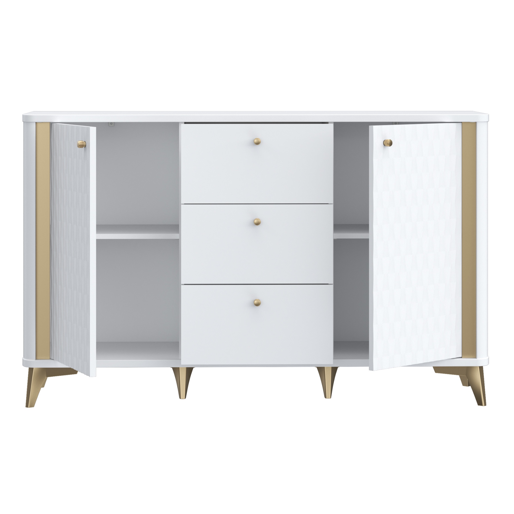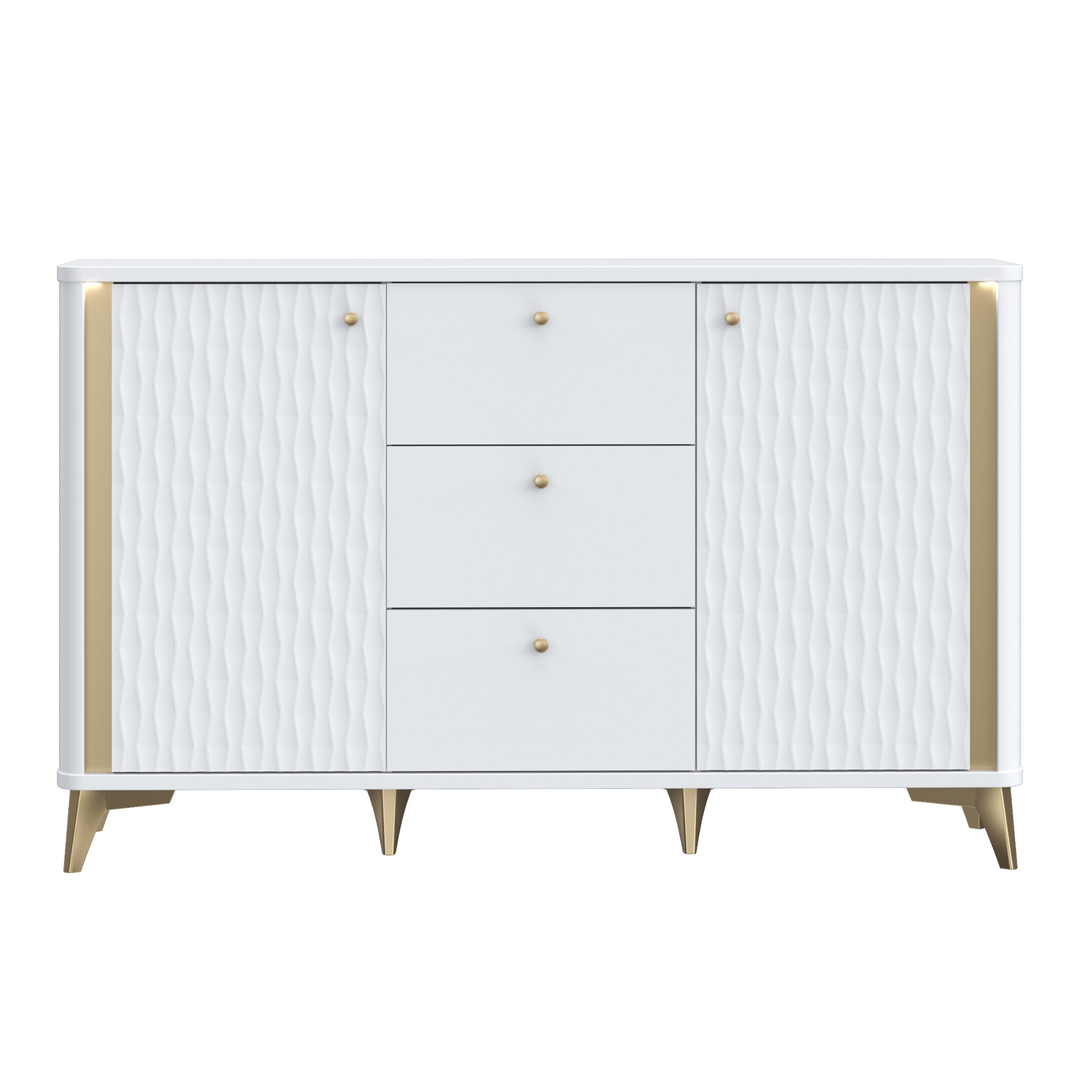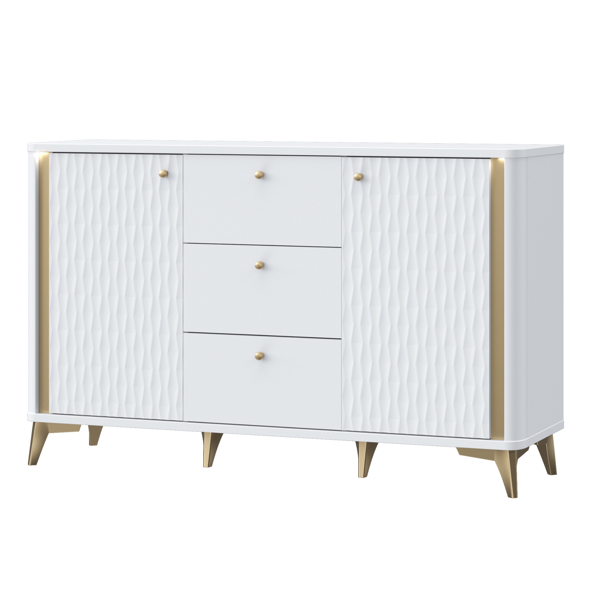 Komoda FORREST HILLS - biela/zlatá, šírka 140 cm