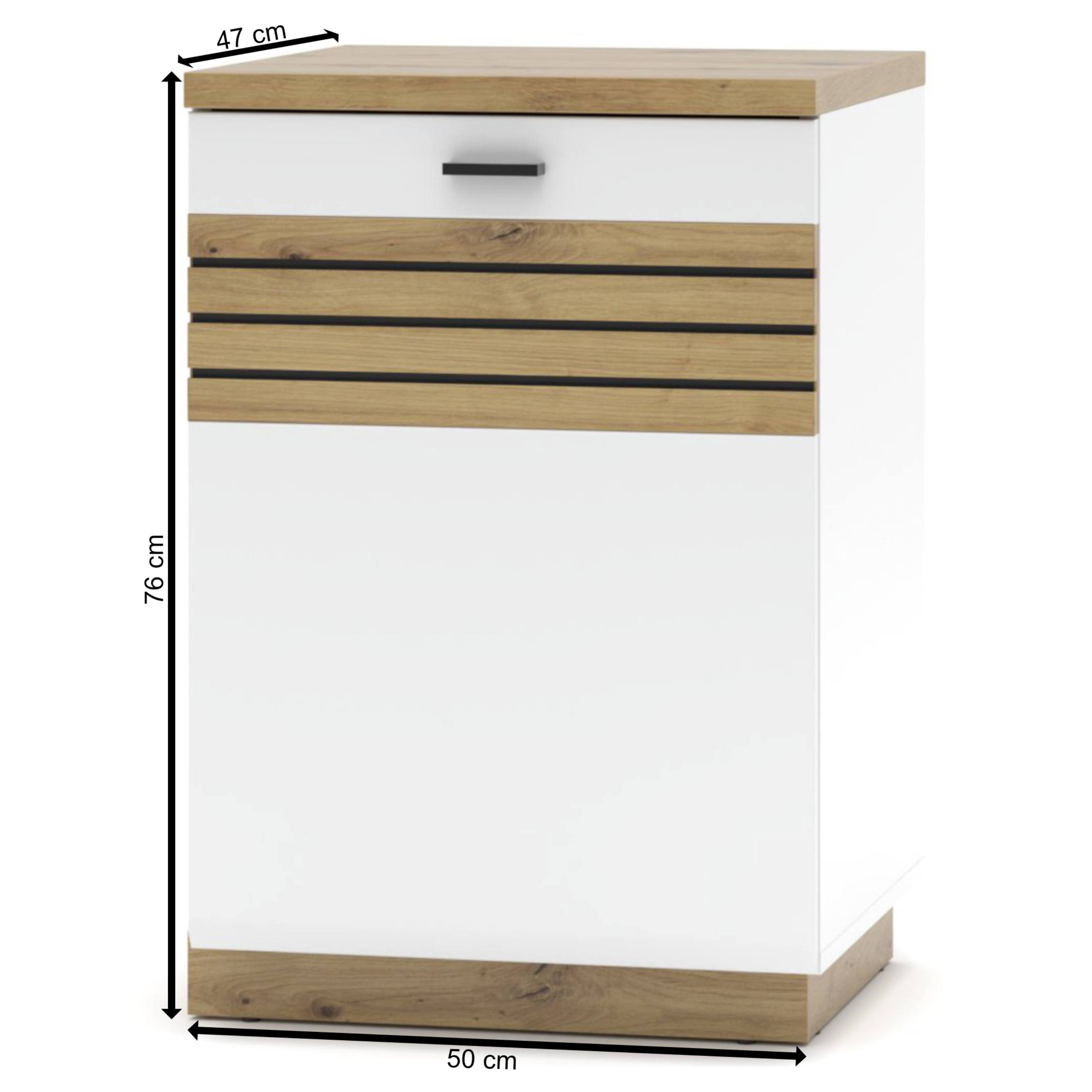Komoda FRESNO - biela/dub artisan, ľavá/pravá, šírka 50 cm
