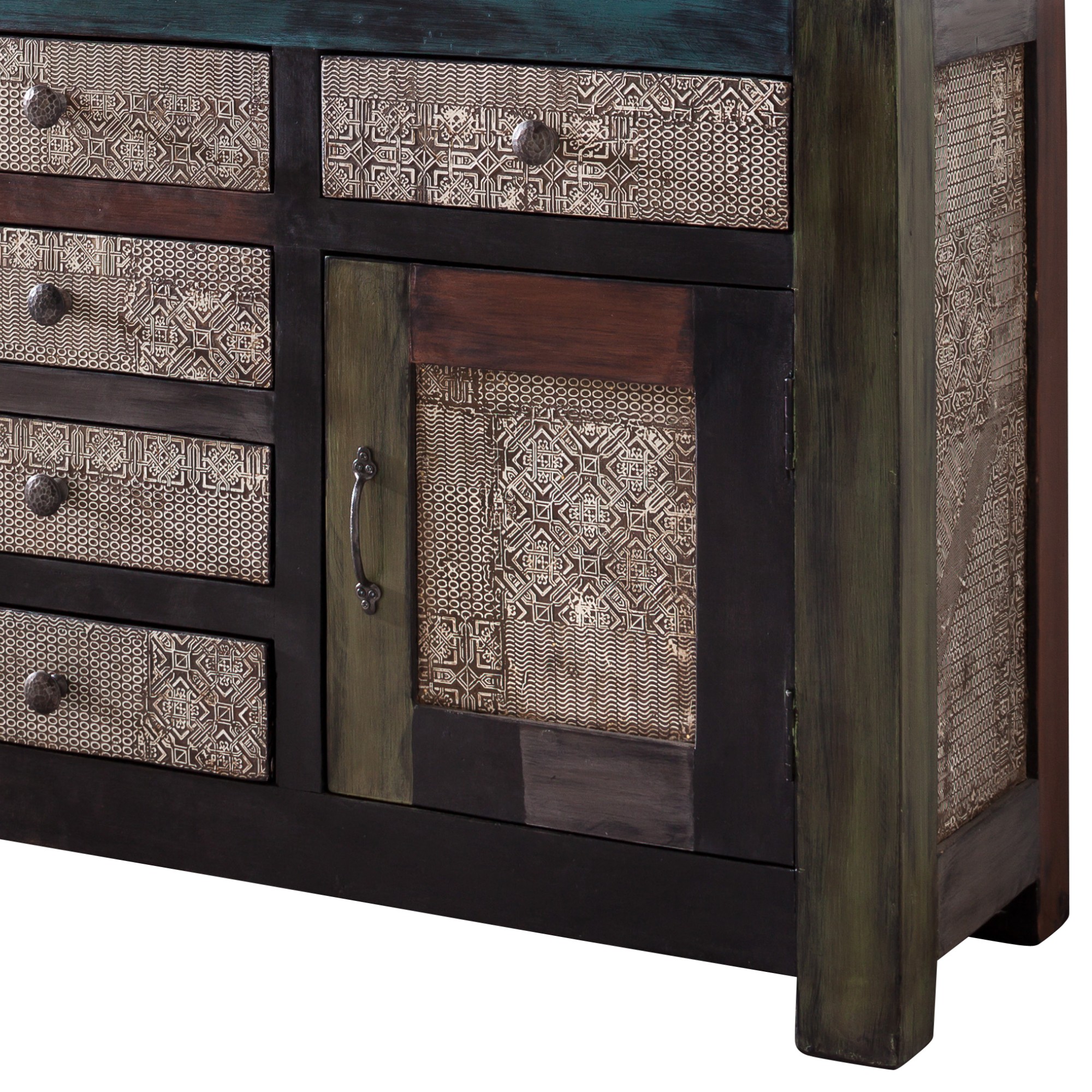 Viacúčelová komoda GOA je vyrobená z masívneho dreva mangovníka a akácie, ktoré sa pestuje na kontrolovaných indických plantážach. Zaujme exotickým dizajnom s nádychom koloniálneho štýlu. Jej neformálny vzhľad dotvárajú jemné odtiene farieb spolu s kovovými prvkami v podobe rúčok. Komoda ponúka úložný priestor v podobe šiestich zásuviek a dvoch dvierok. Povrchová úprava "Shabby-Look" vytvára efekt použitého nábytku. Ide výhradne o ručnú výrobu. Typické pre tento druh nábytku sú priznané nedostatky dreva a vďaka hrubému spracovaniu sa stáva každý kus úplne jedinečným. K najväčším prednostiam masívneho dreva patrí dlhá životnosť a pri správnom používaní i odolnosť.
