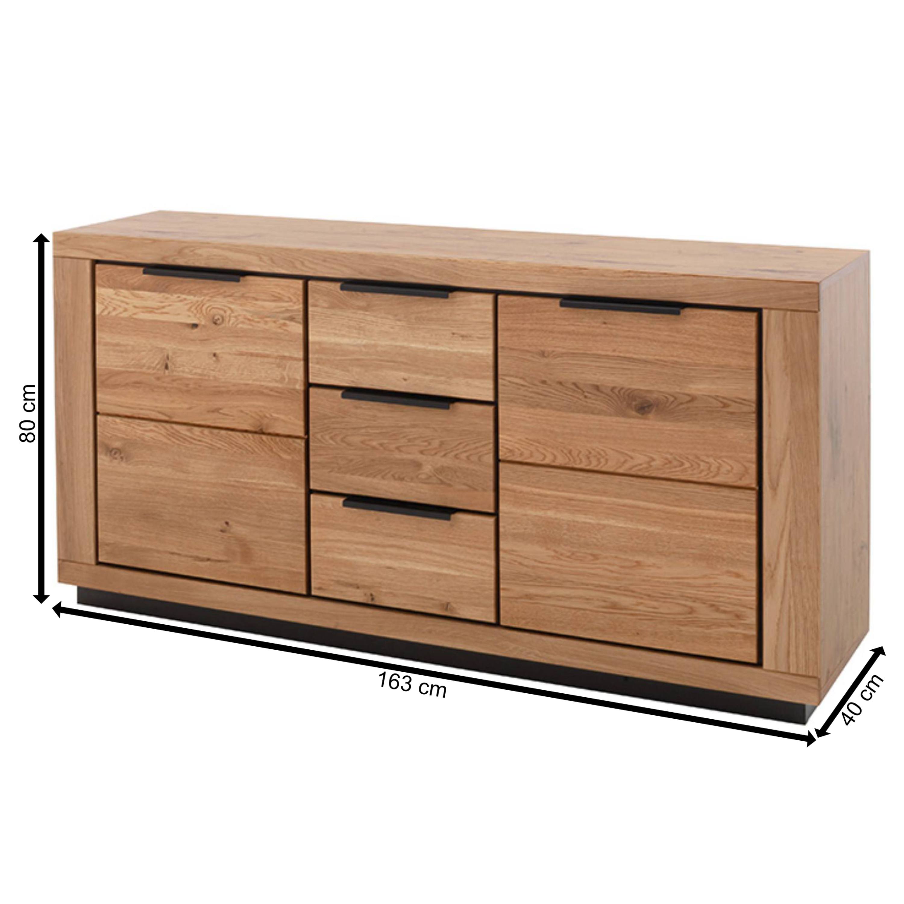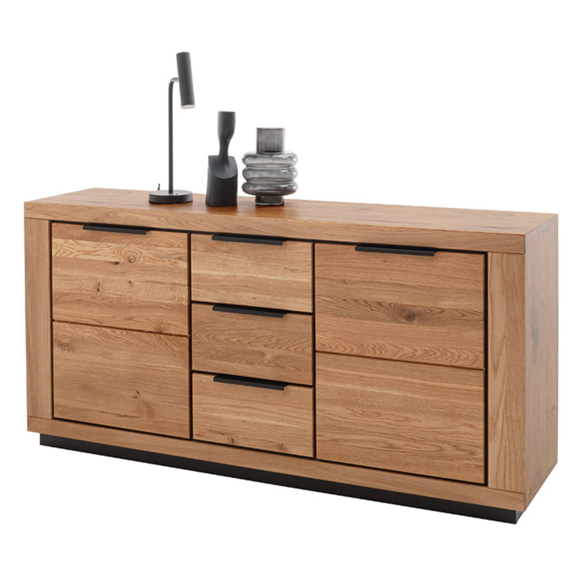 Korpus komody je vyrobený z drevovláknitého materiálu MDF. Predná strana je z masívneho dubového dreva. Rúčky uľahčujúce manipuláciu s dvierkami a zásuvkami sú z kovu.