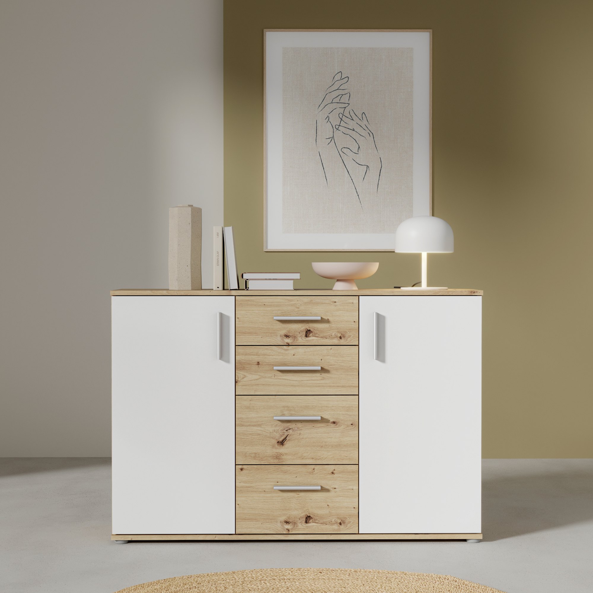 Komoda IKOLI 4 - biela/dub artisan