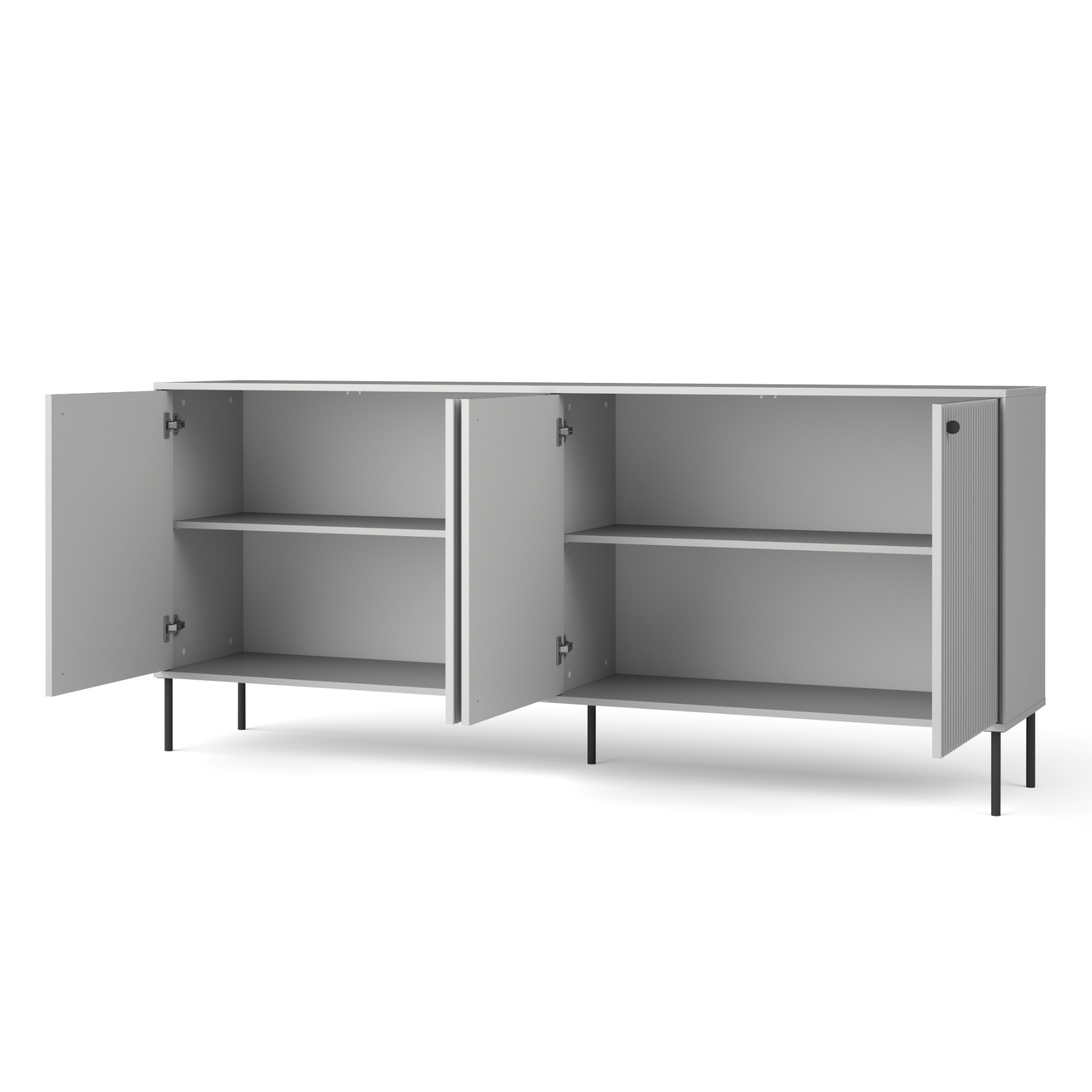 Komoda ponúka dostatok úložného priestoru. Jej súčasťou sú 2 vložené police, ktoré sú ukryté za dvierkami. Na jednoduchšiu manipuláciu sú dvierka vybavené rúčkami.