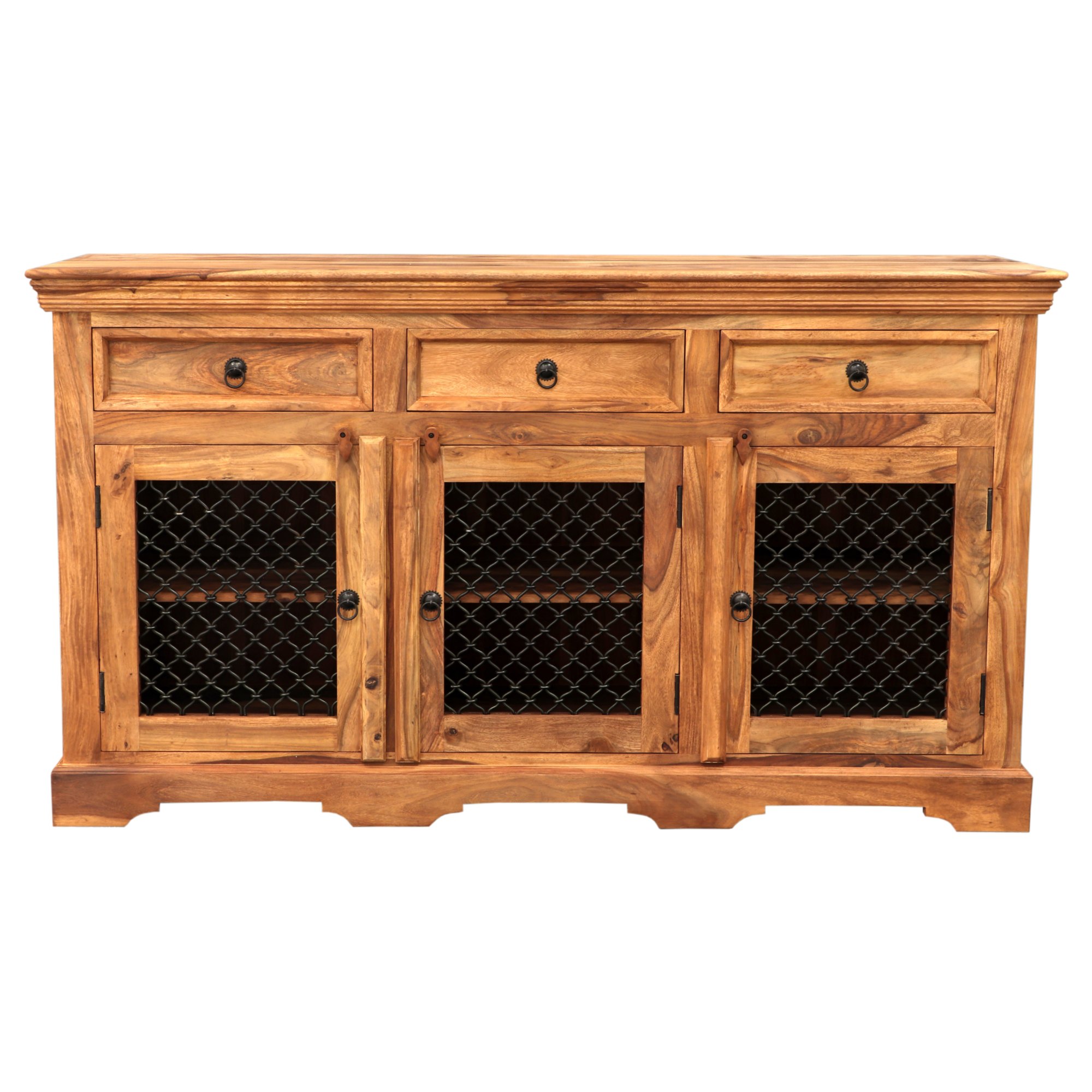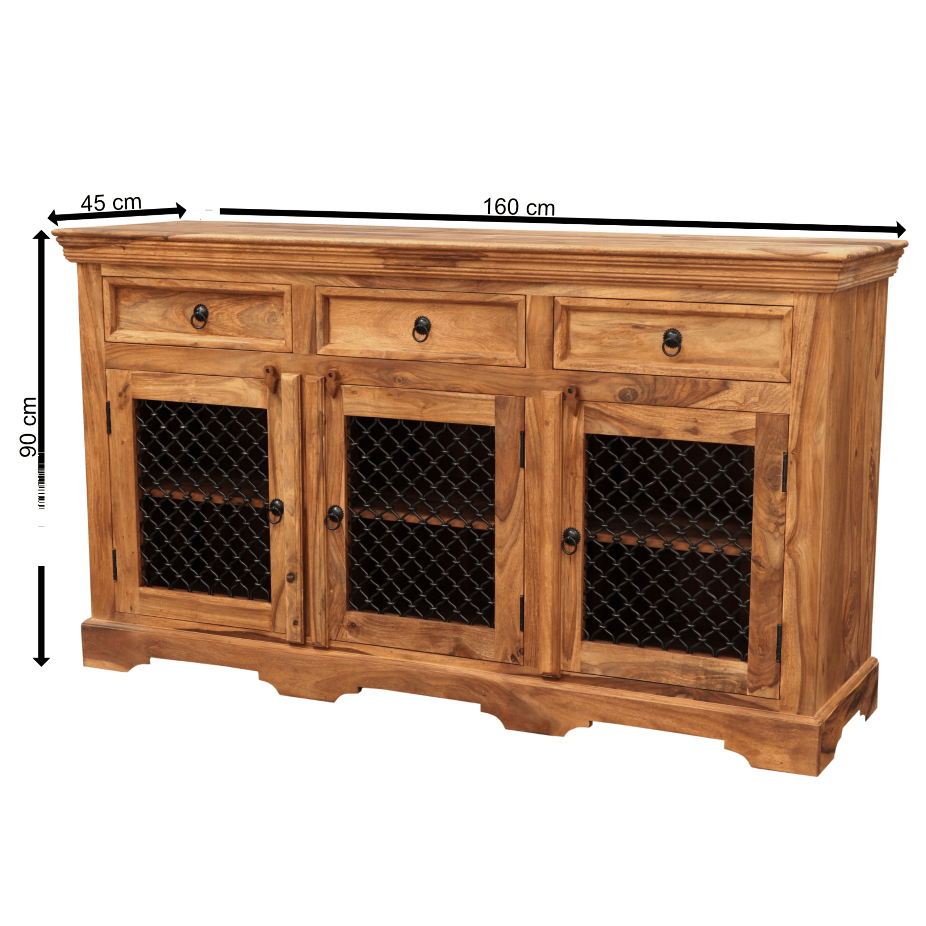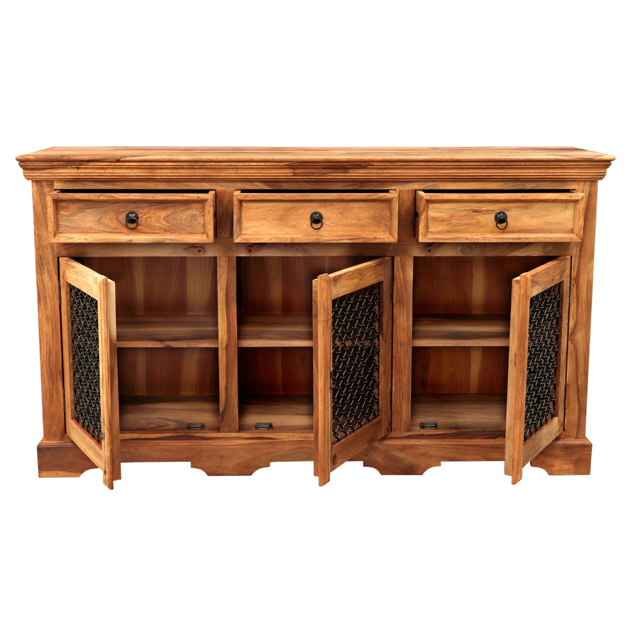 Komoda JALILA 160 je vyrobená z masívneho palisandrového dreva, ktoré je známe svojou výnimočnou pevnosťou a dlhou životnosťou. Vďaka fascinujúcej kresbe a prírodným farebným prechodom je každý kus úplným originálom, ktorý dodá vášmu interiéru jedinečný prírodný vzhľad. Olejová povrchová úprava zvýrazňuje textúru dreva, jeho prirodzenú krásu a zároveň chráni povrch na dlhodobé užívanie.