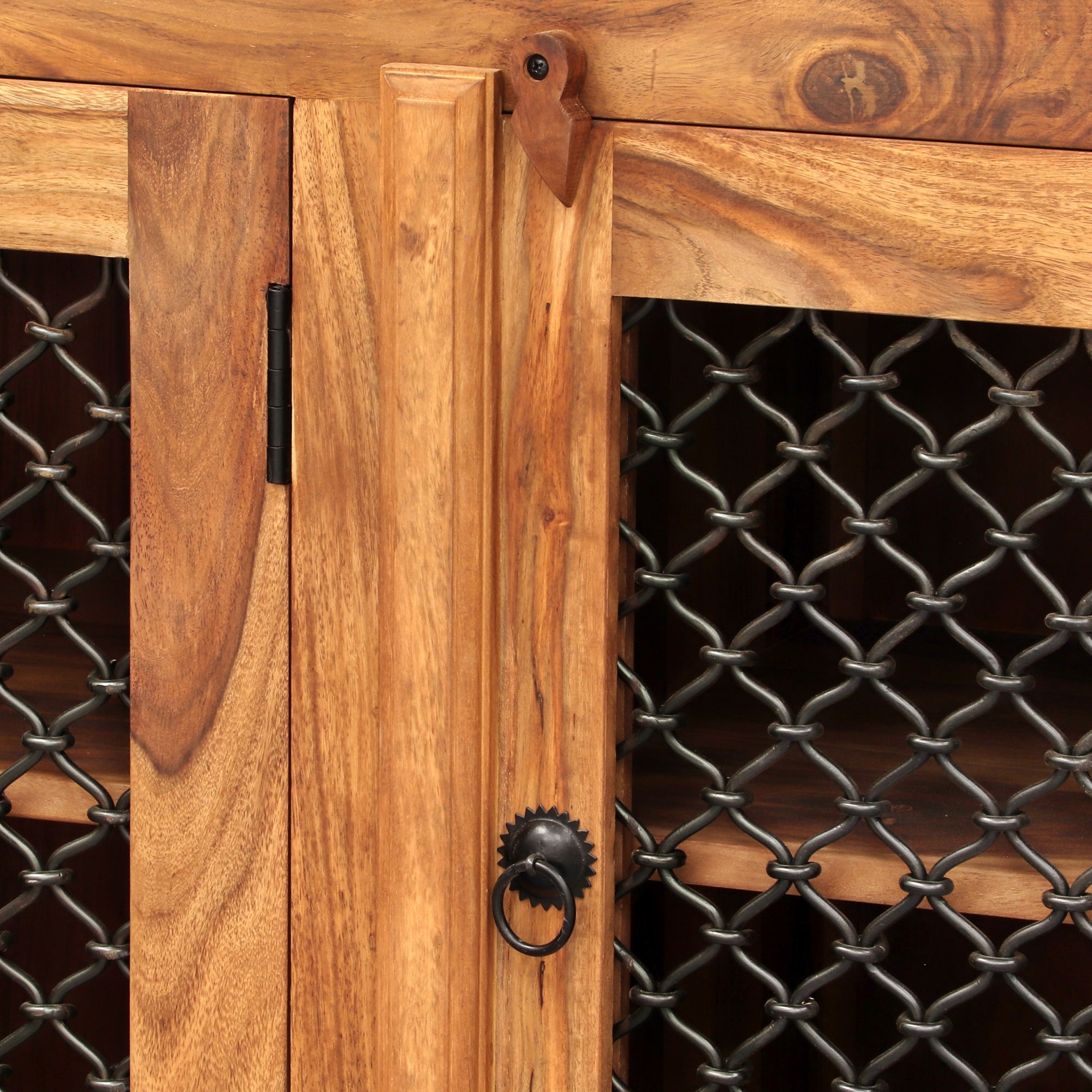 - Kovový výplet na dvierkach dodáva komode štýlový vzhľad