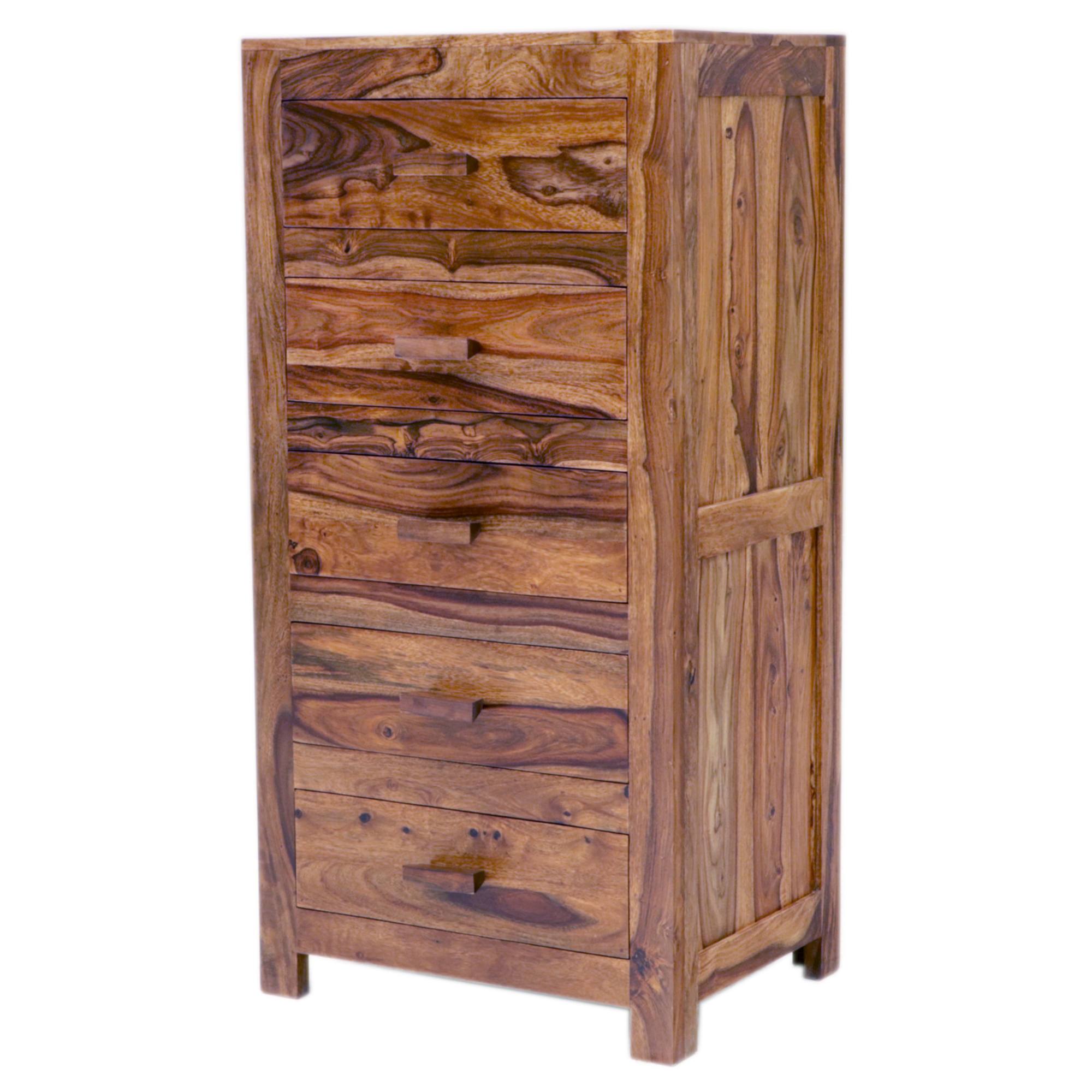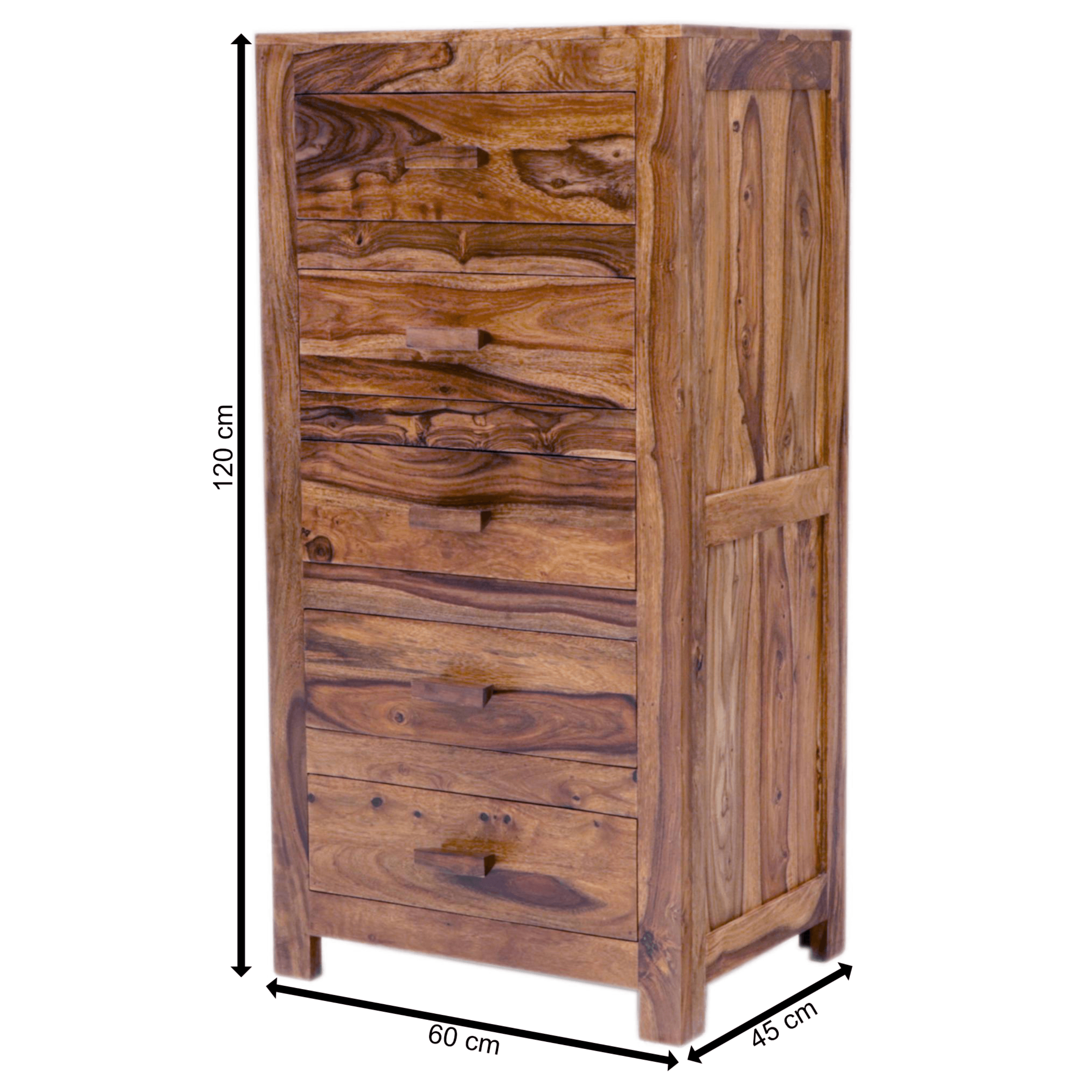 Komoda je vyrobená z masívneho dreva shishamu, veľmi odolnej exotickej dreviny tiež známej ako palisander. Ten vyniká svojou pevnosťou a výraznou kresbou dreva s unikátnymi farebnými prechodmi, ktoré sa kus od kusa líšia. Každý kus je tak svojim spôsobom jedinečný.