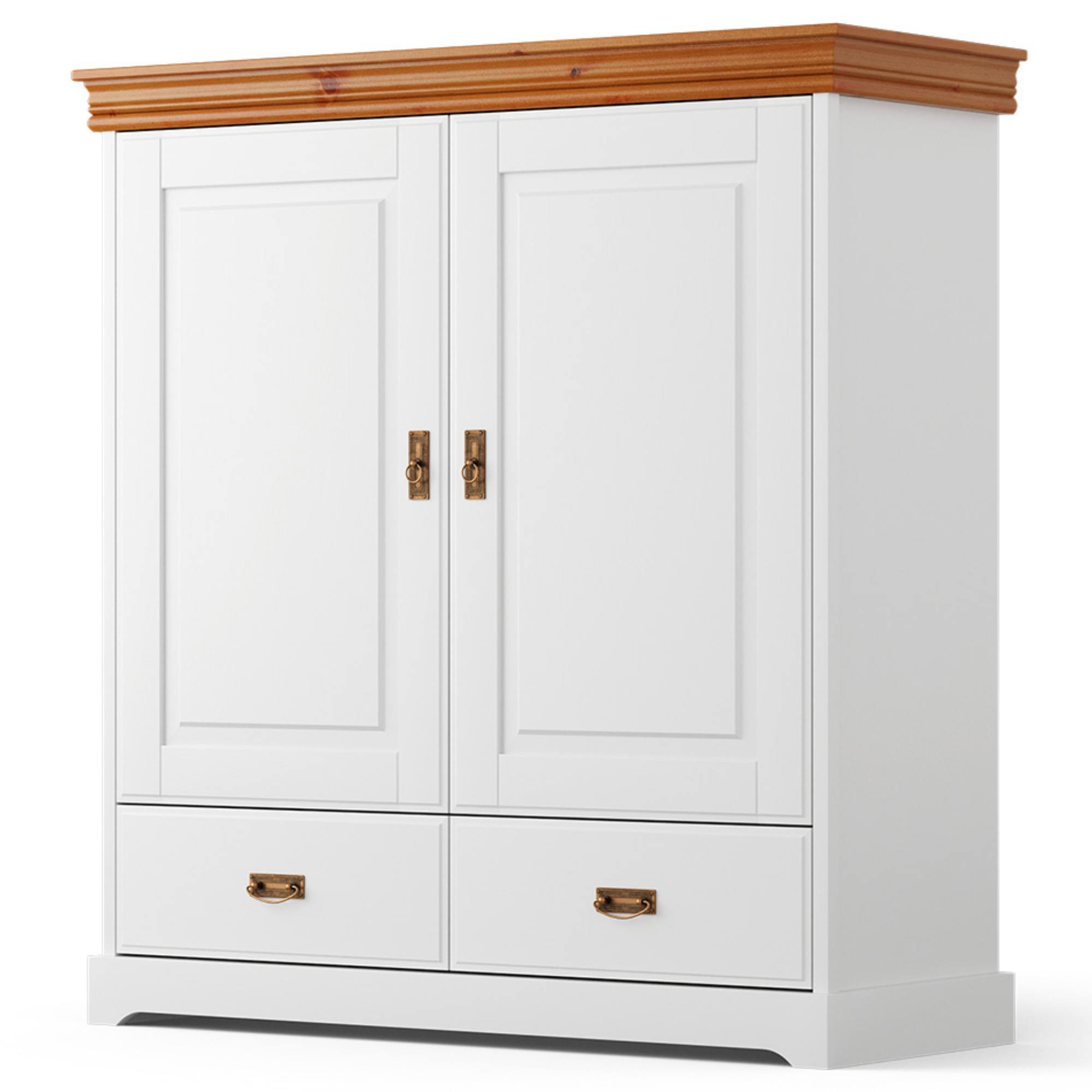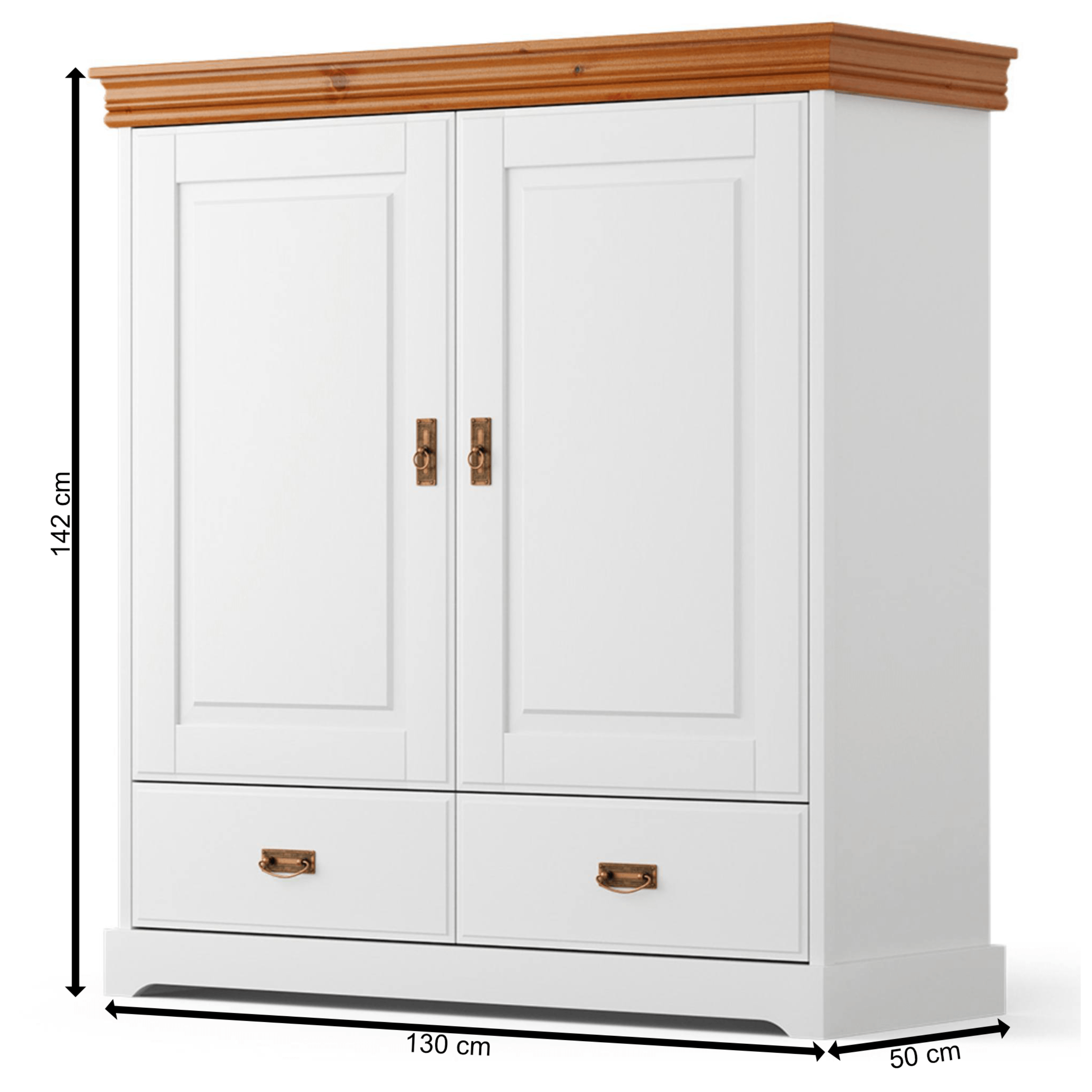 Vyrobená je z masívneho dreva fínskej borovice, ktorá dodáva konštrukcii potrebnú pevnosť, odolnosť a dlhú životnosť. Dekoratívne detaily ako frézovanie predných plôch, ozdobný pilaster a kovová rúčka dotvárajú celkový romantický dojem. Komoda je vybavená dvomi zásuvkami a dvoma vloženými policami kam odložíte všetko potrebné. Vrchná odkladacia doska sa postará o predmety, ktoré chcete mať vždy po ruke.