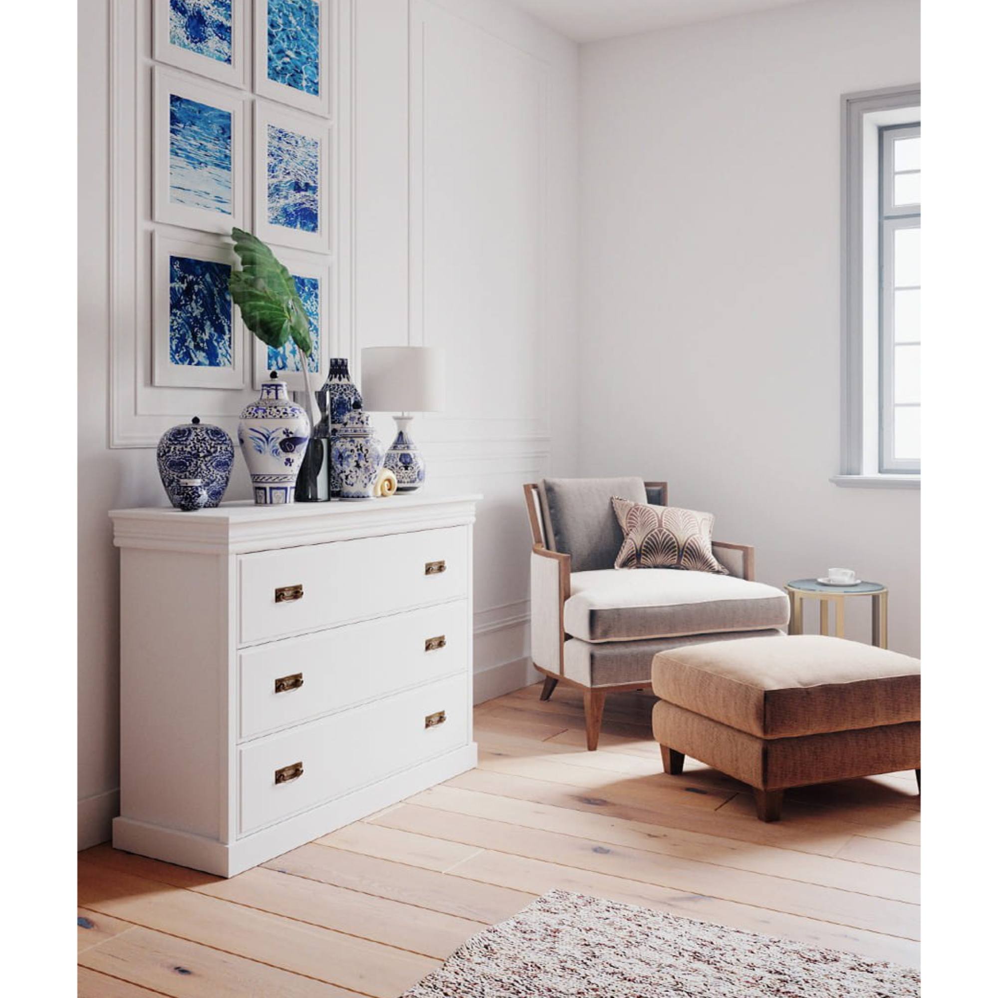 Komoda KANIA 3S vyhotovená v kvalitnom, nadčasovom spracovaní je ideálnym odkladacím priestorom pre spálne inšpirované vidieckym štýlom.
