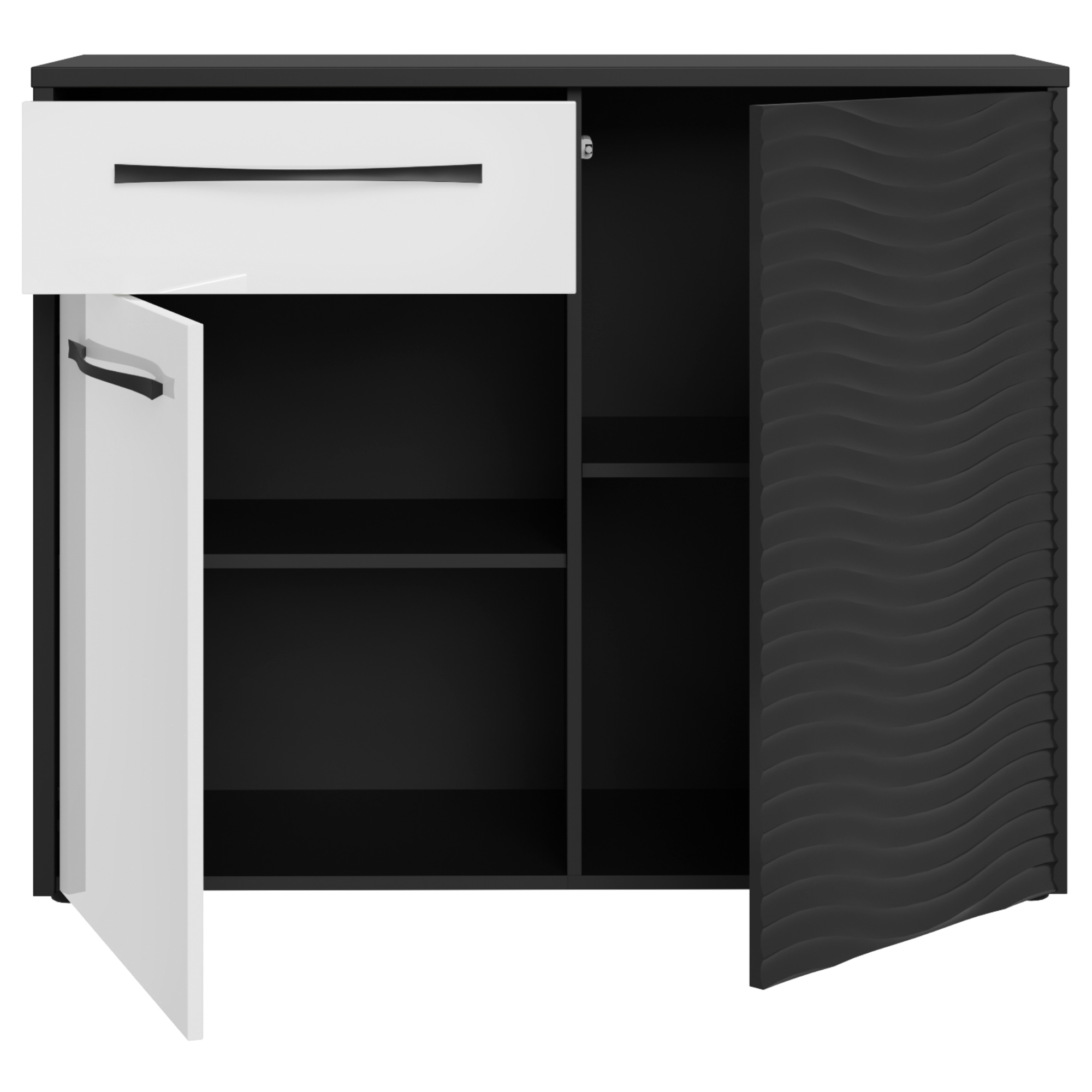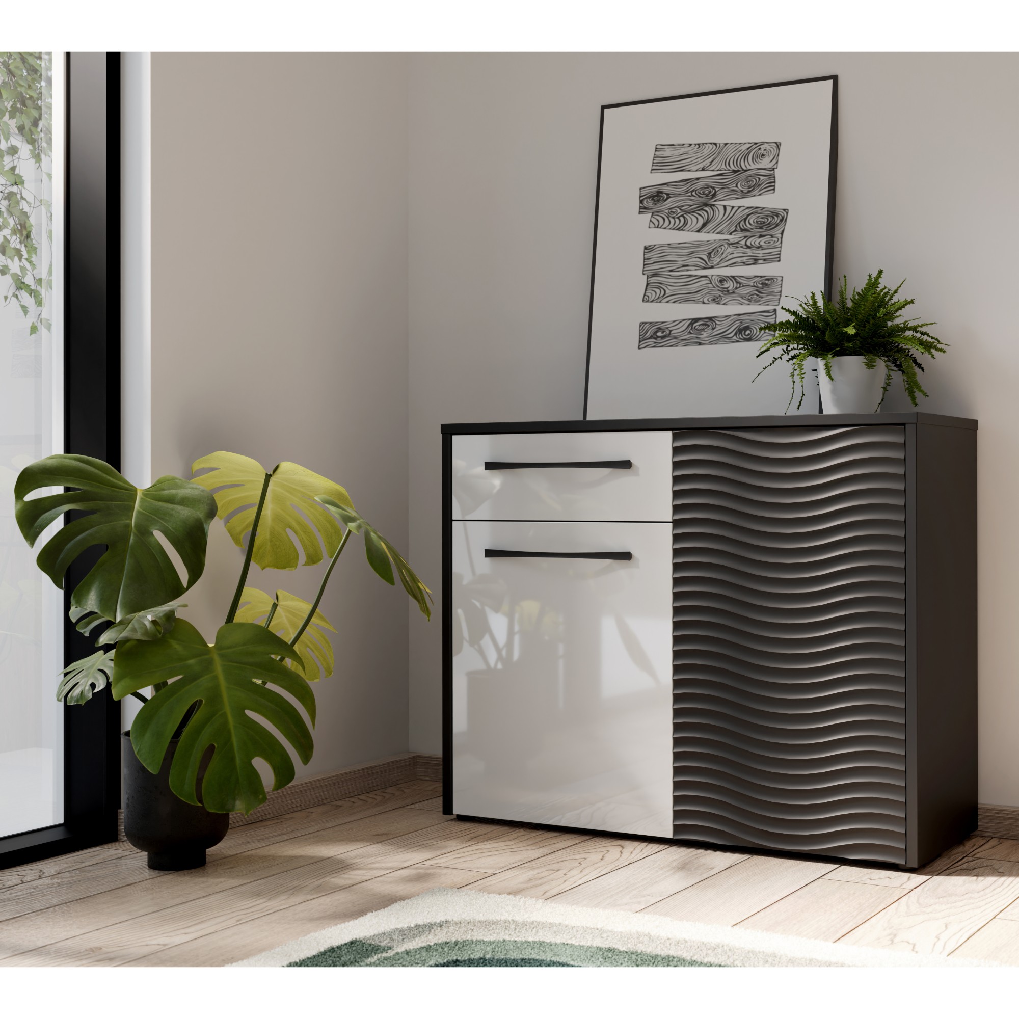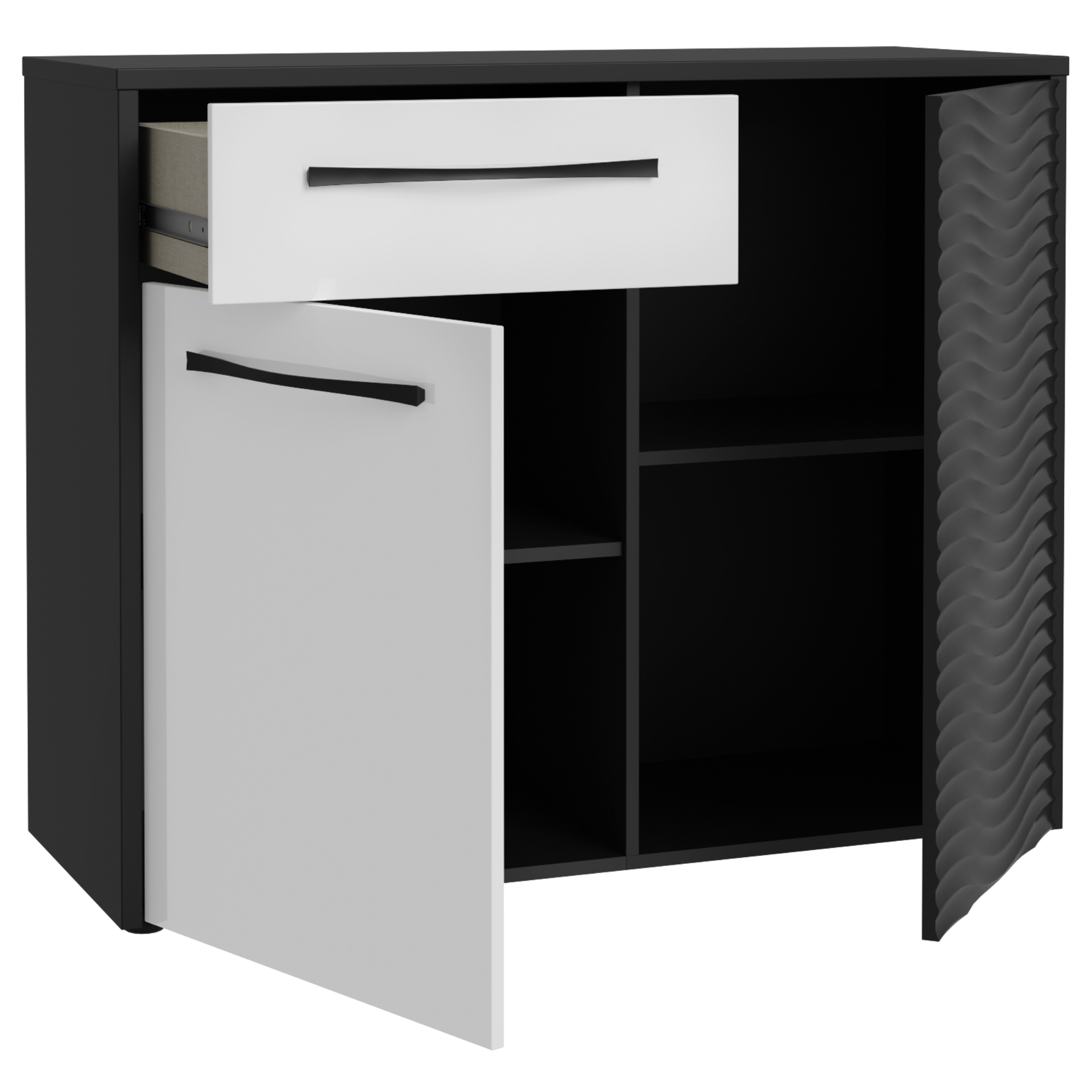 Komoda KARLSHAMN 1 - čierna/biela vysoký lesk