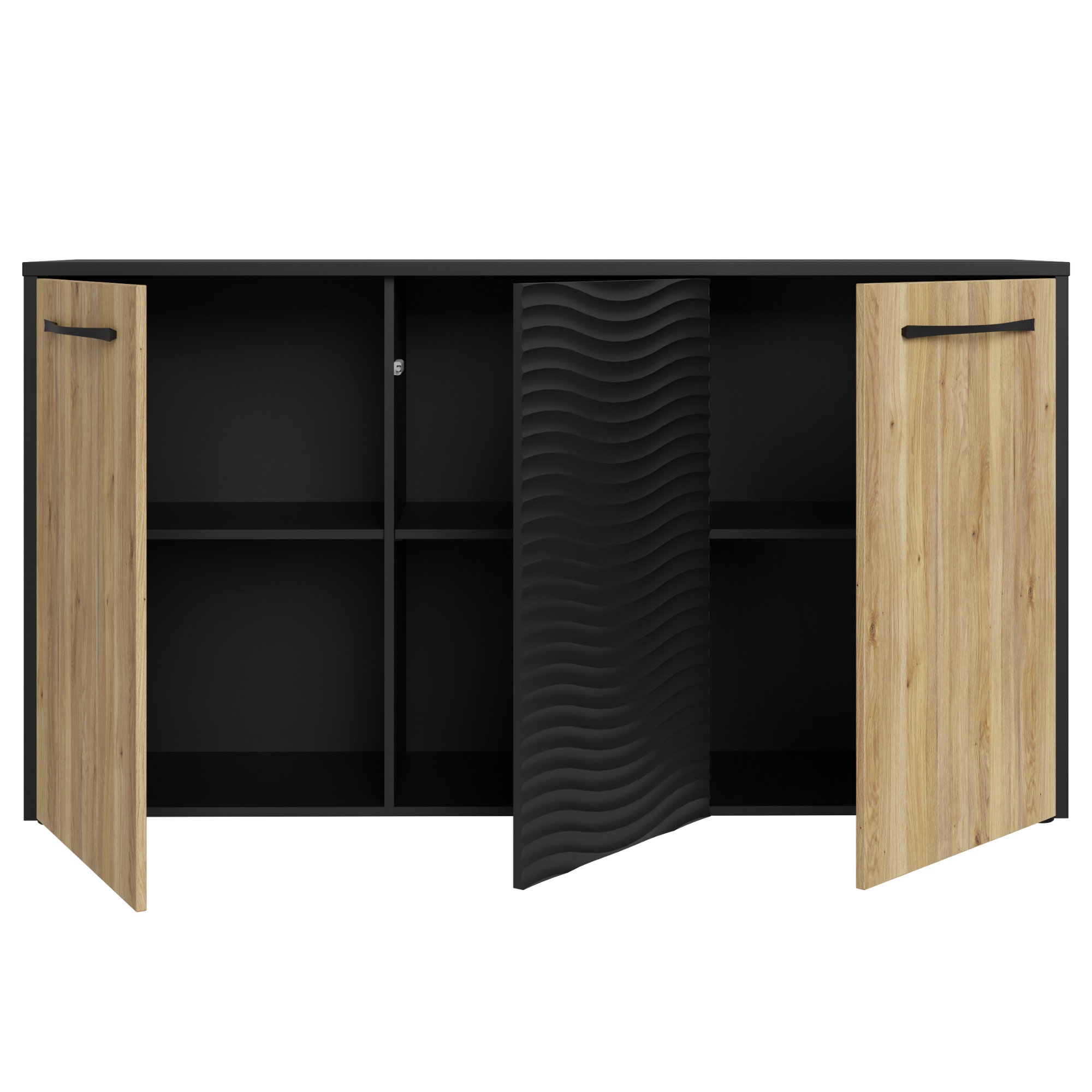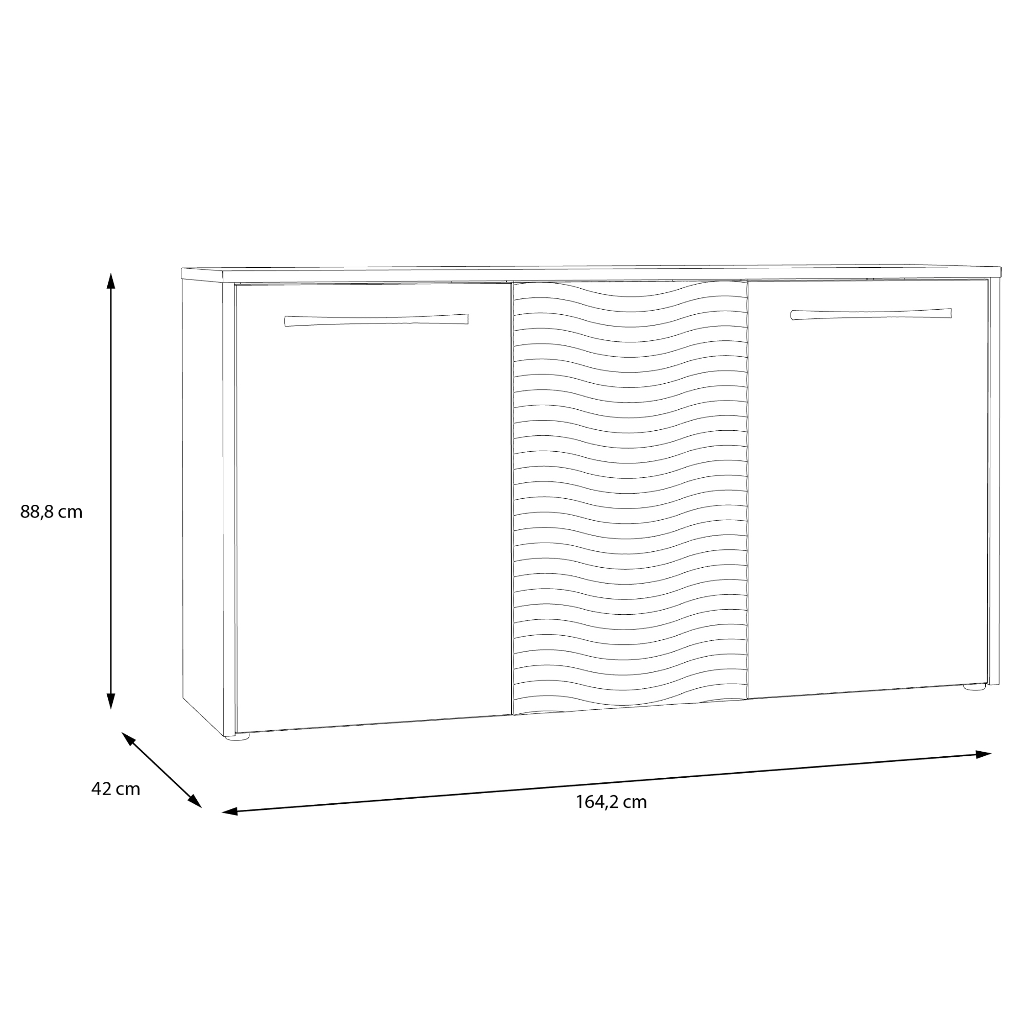 K dispozícii máte uzatvárateľný úložný priestor, ktorý obsahuje tri vložené police schované za dvierkami. Manipuláciu dvierok uľahčujú praktické rúčky. Povrch komody sa vyznačuje jednoduchou údržbou.