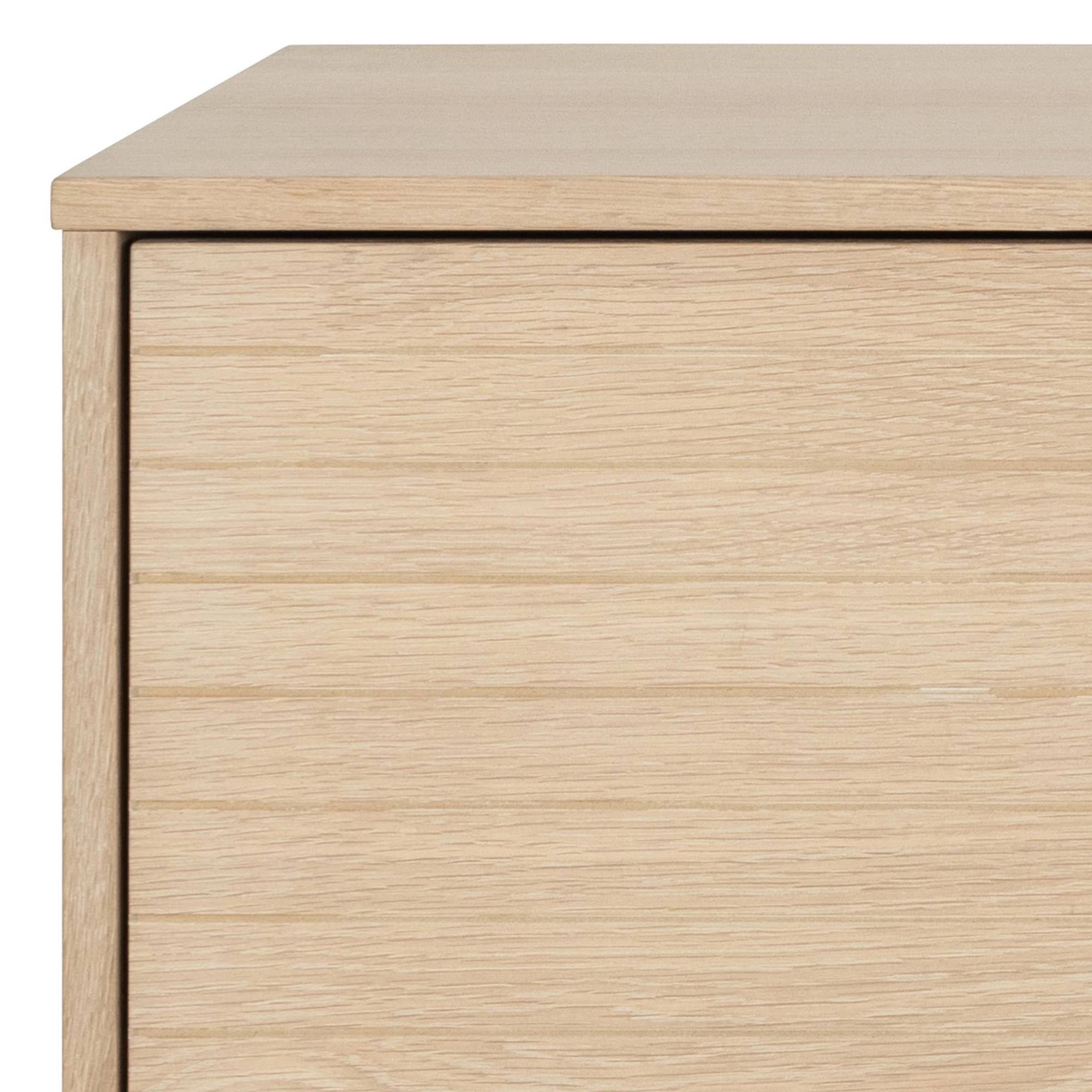 Na výrobu komody KENSINGTON 180 bola využitá drevotriesková doska, ktorá je nenáročná na údržbu. Tento materiál je doplnený dubovou dyhou.
