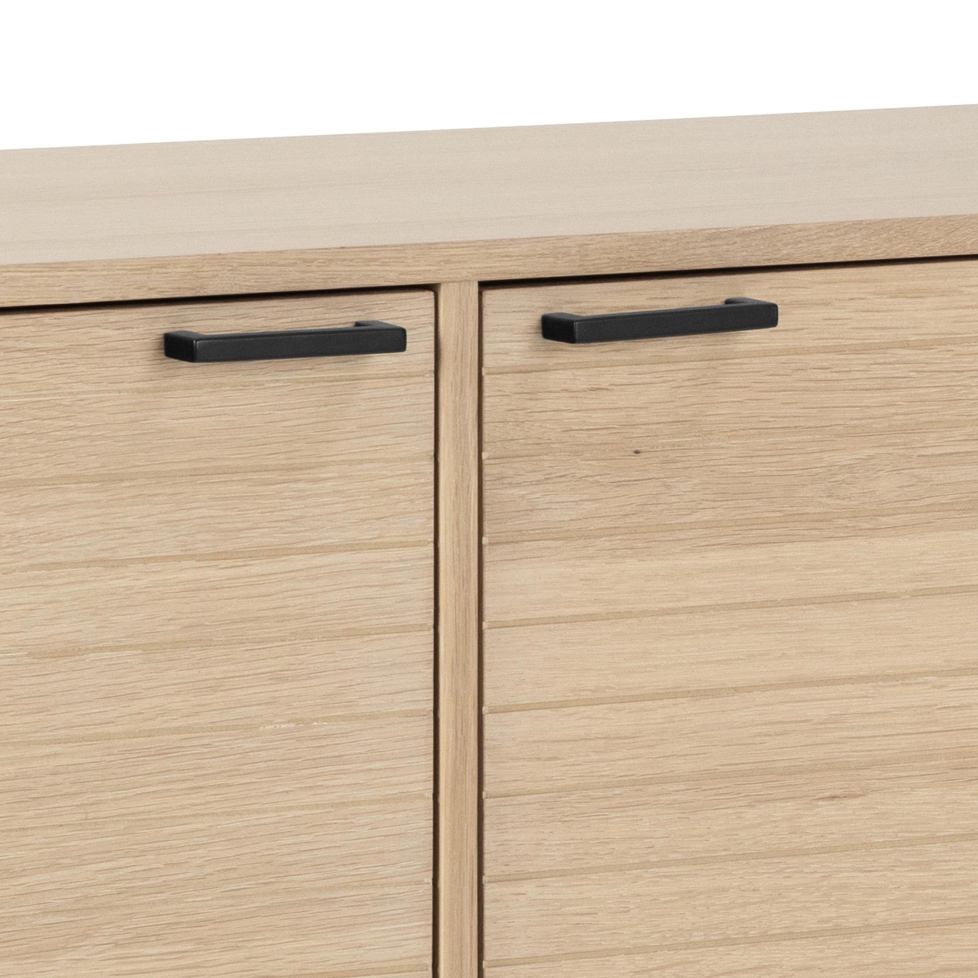 Komoda ponúka dostatok úložného priestoru, a tak nepochybne nájde využitie v každej domácnosti. Jej súčasťou sú 4 vložené police, ktoré sa ukrývajú za dvierkami. Na ľahšiu manipuláciu sú dvierka vybavené praktickými rúčkami.