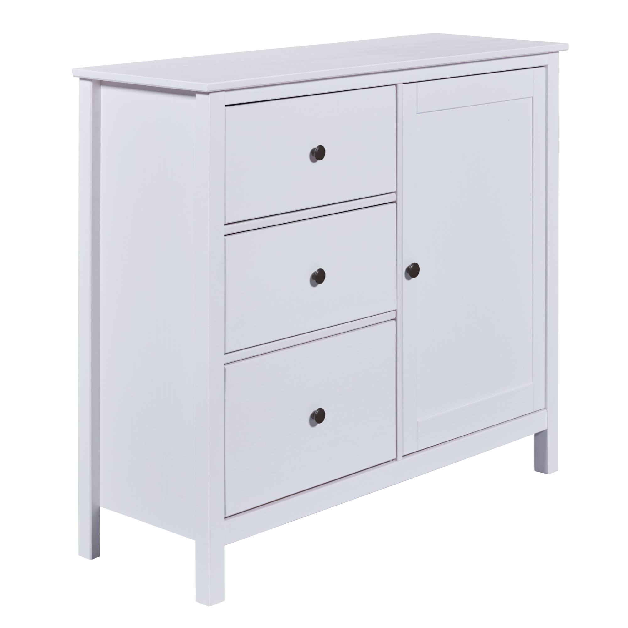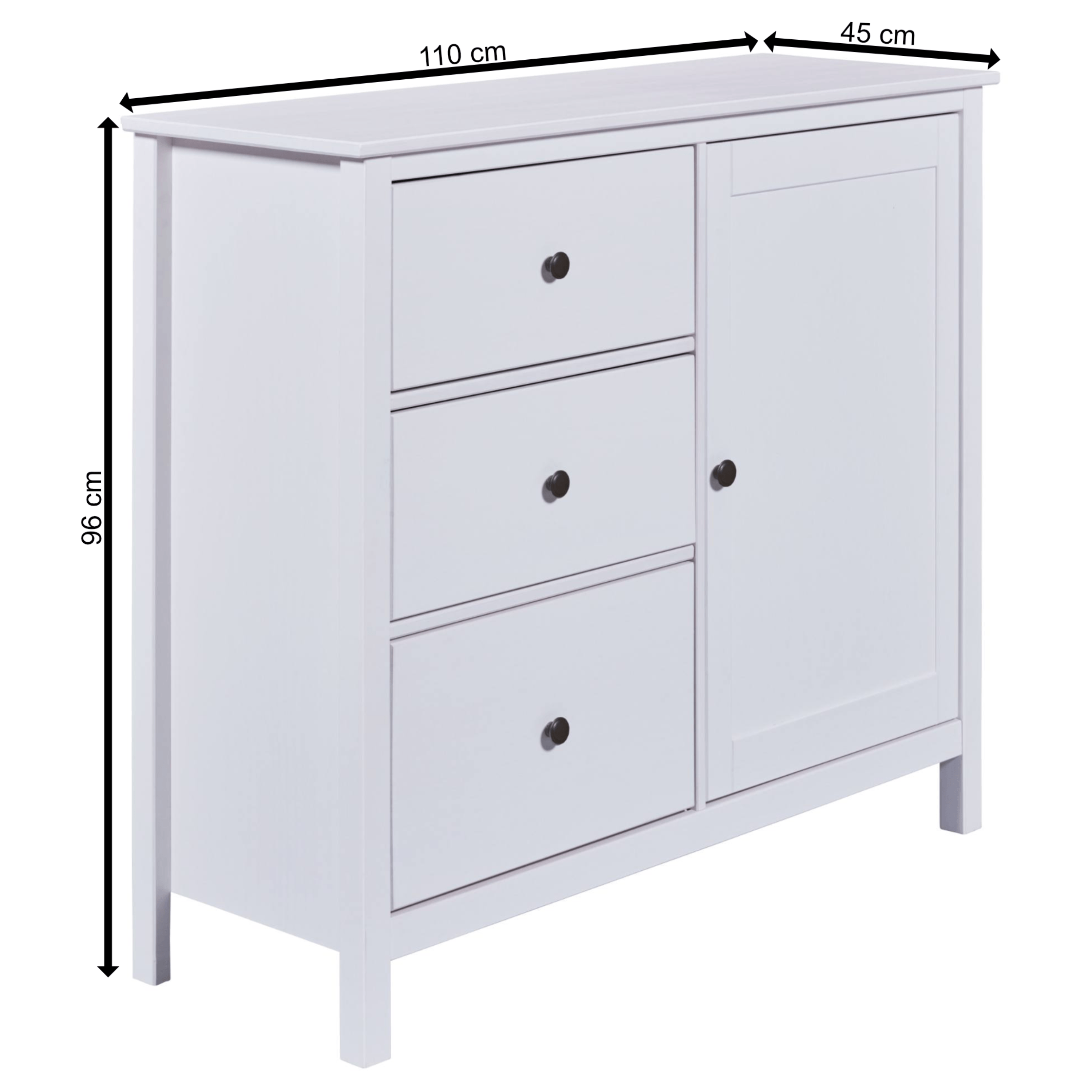 Súčasťou komody sú tri praktické zásuvky a jedna vložená polica ukrytá za dvierkami. Vďaka tomu komoda ponúka dostatok úložného priestoru na všetky predmety,