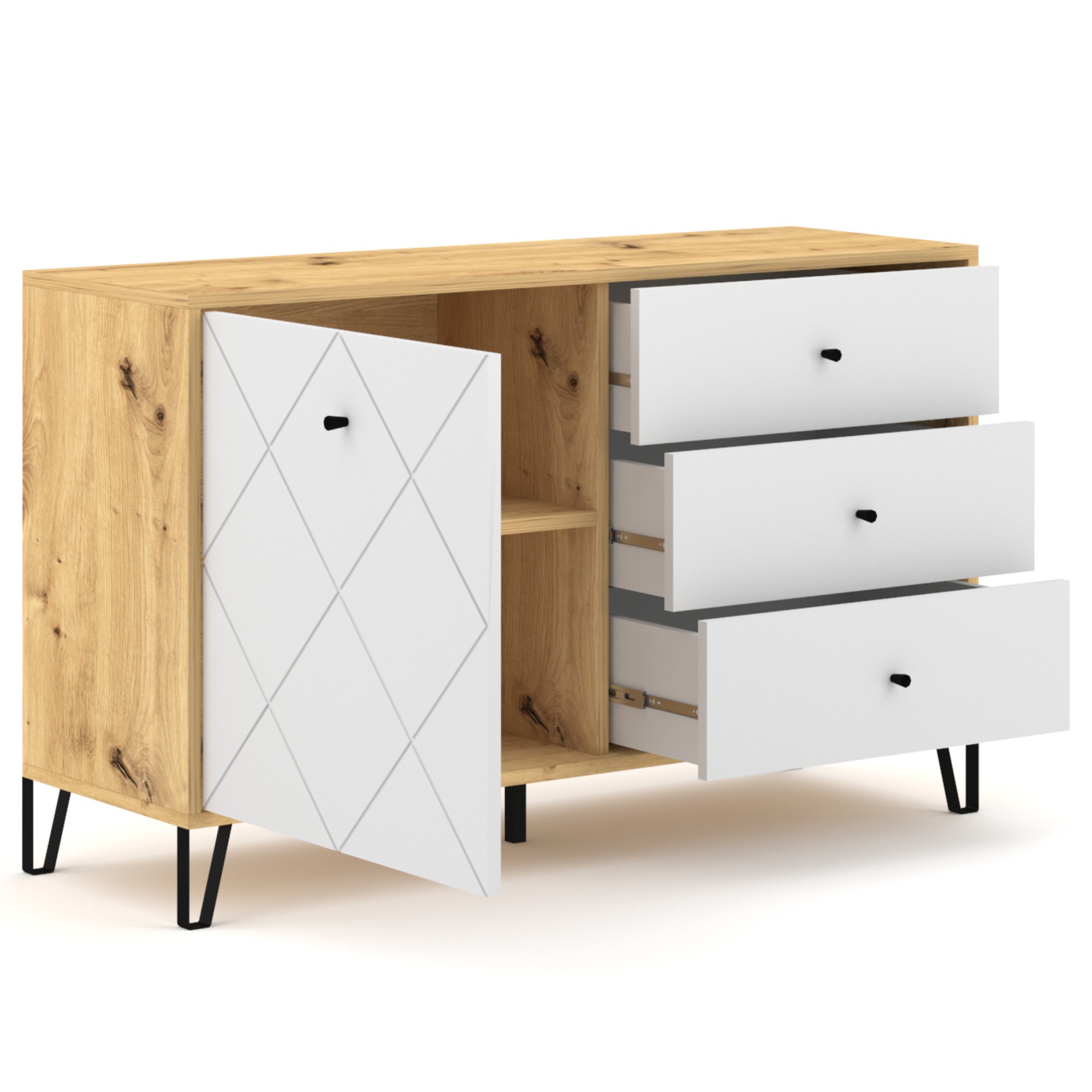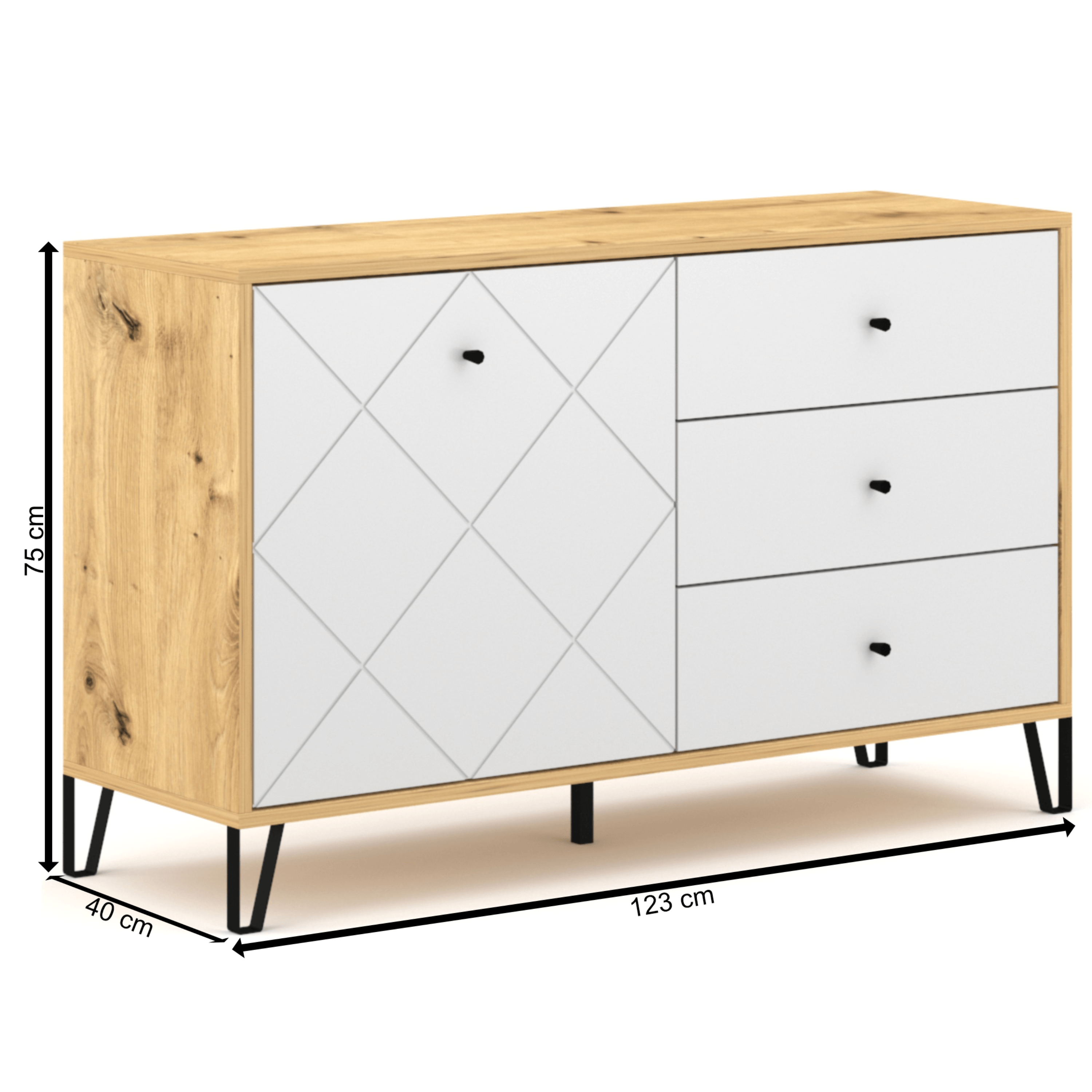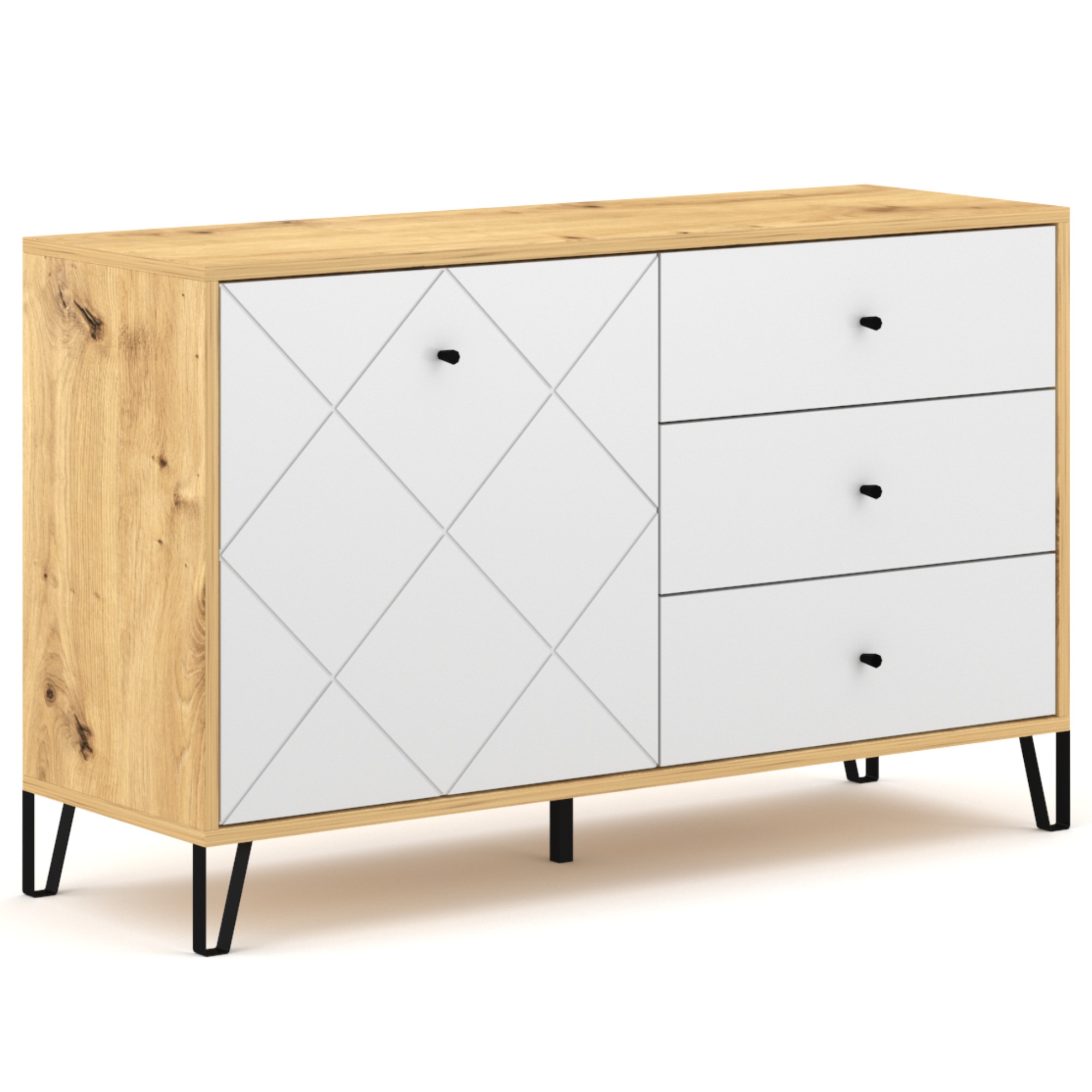 Komoda LIAM 5 - dub artisan/biela matná
