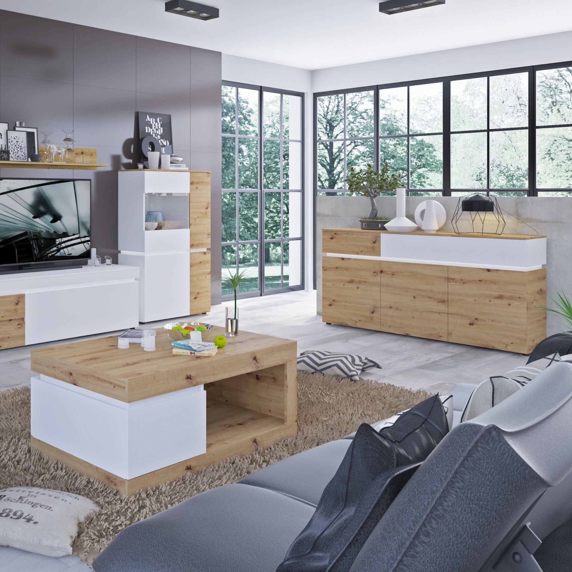 Komoda LUCI 2 - dub artisan/alpská biela