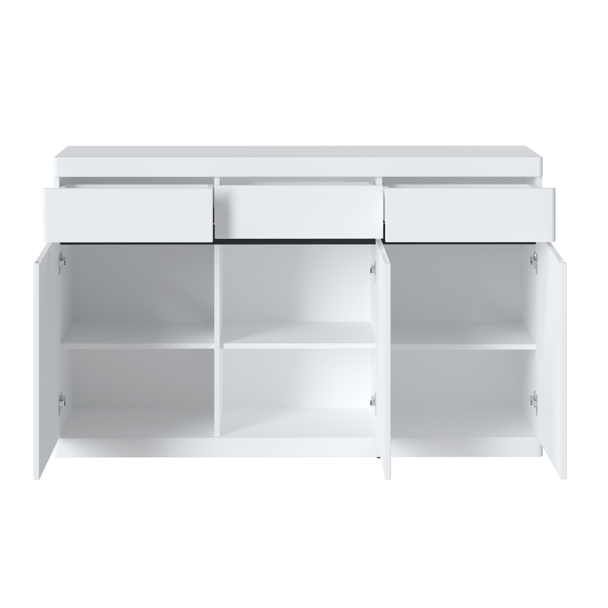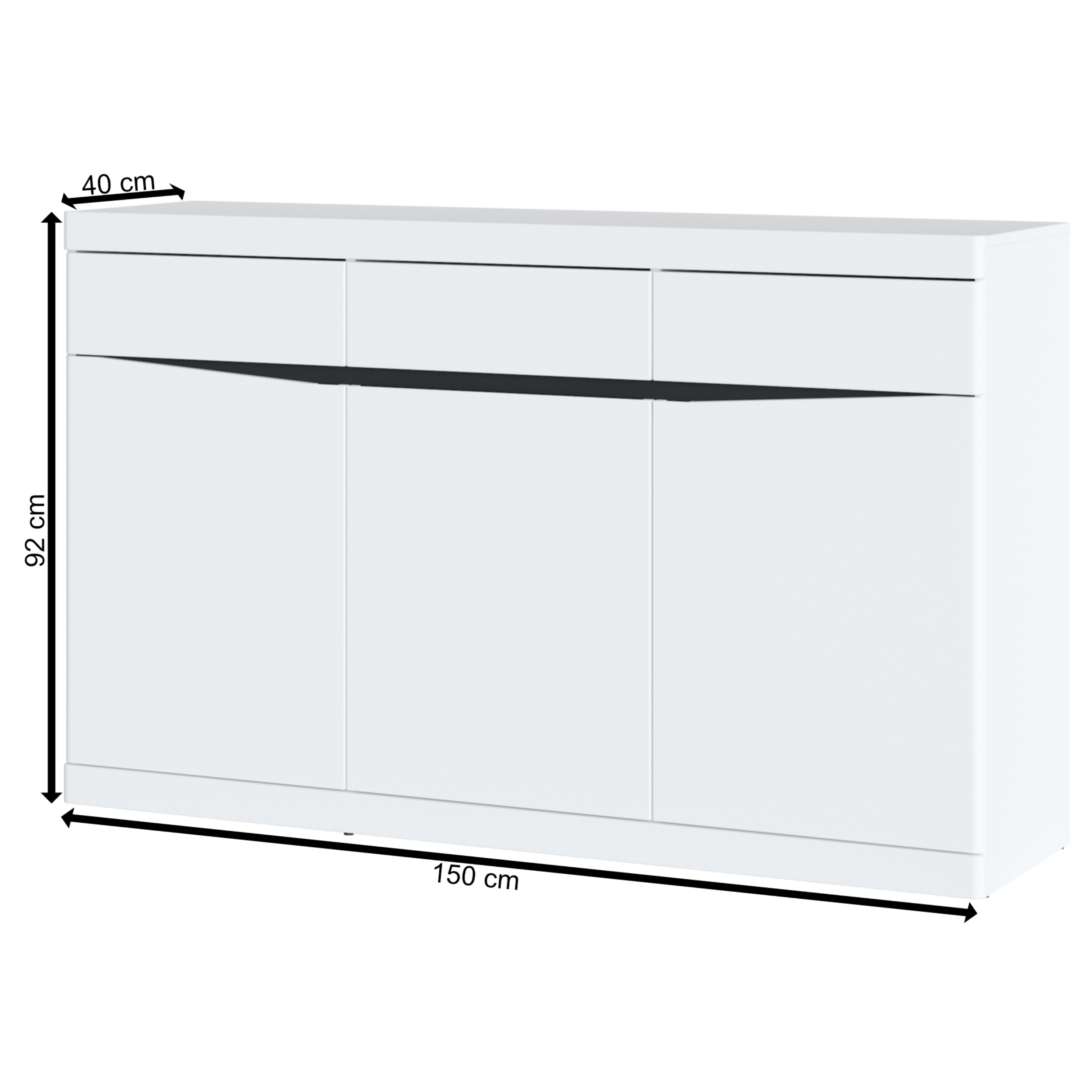 Táto komoda disponuje tromi otočnými dvierkami, kedy za každými z nich sa nachádza priestor s jednou vloženou policou. Ďalší úložný priestor poskytnú tri priestranné zásuvky. Jednoduchú manipuláciu umožňuje bezrúčkové vyhotovenie.
