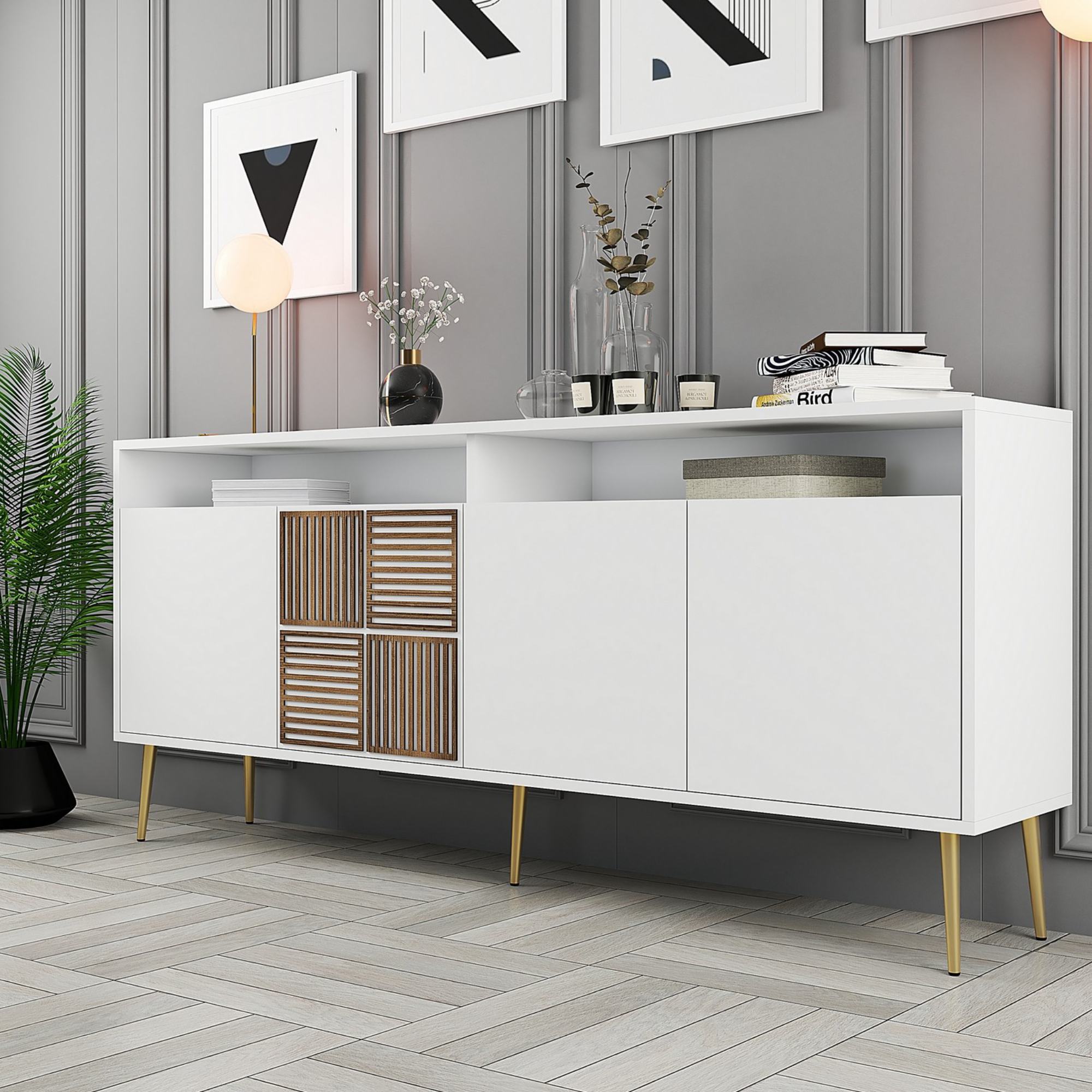 Komoda MALOMA 4 - biela/zlatá
