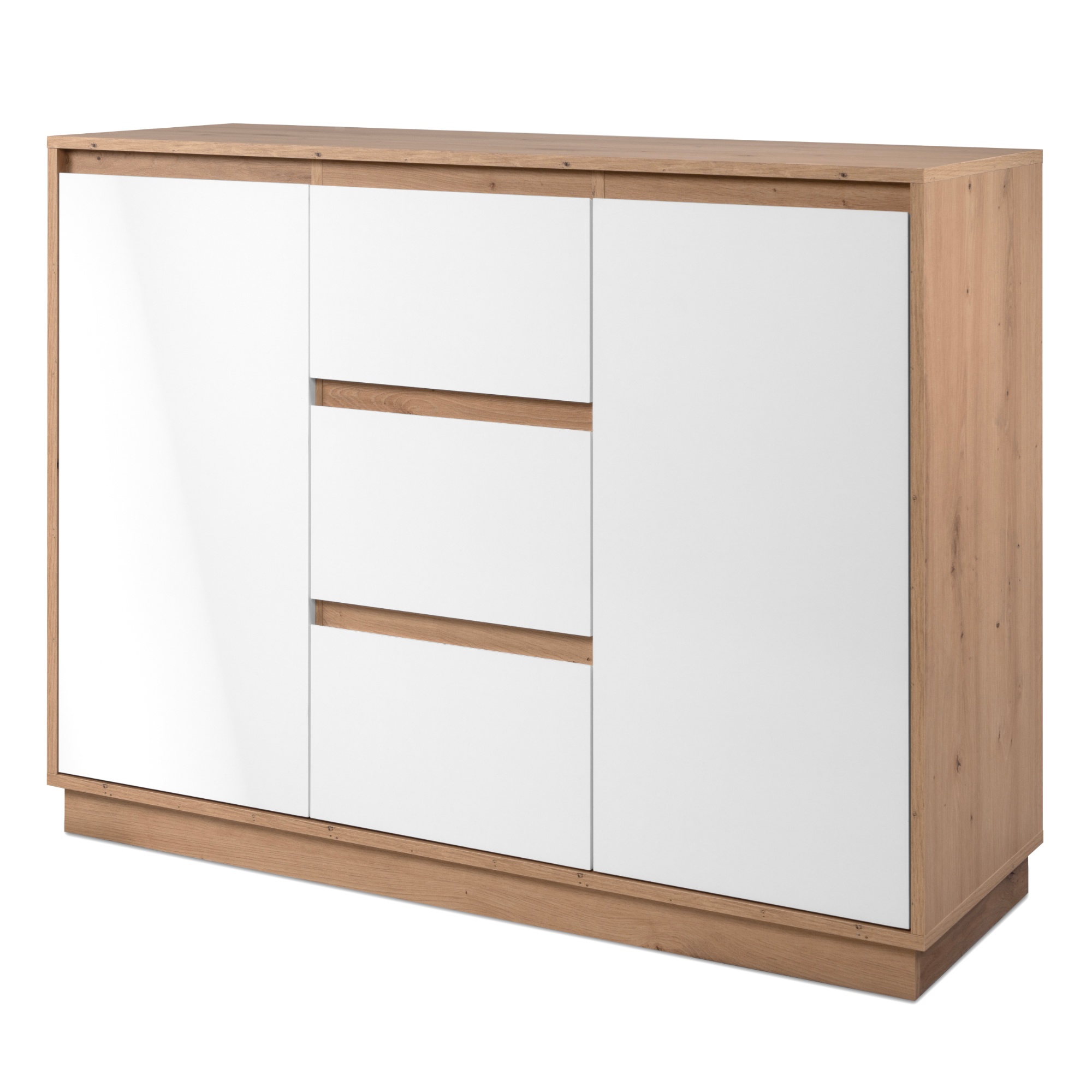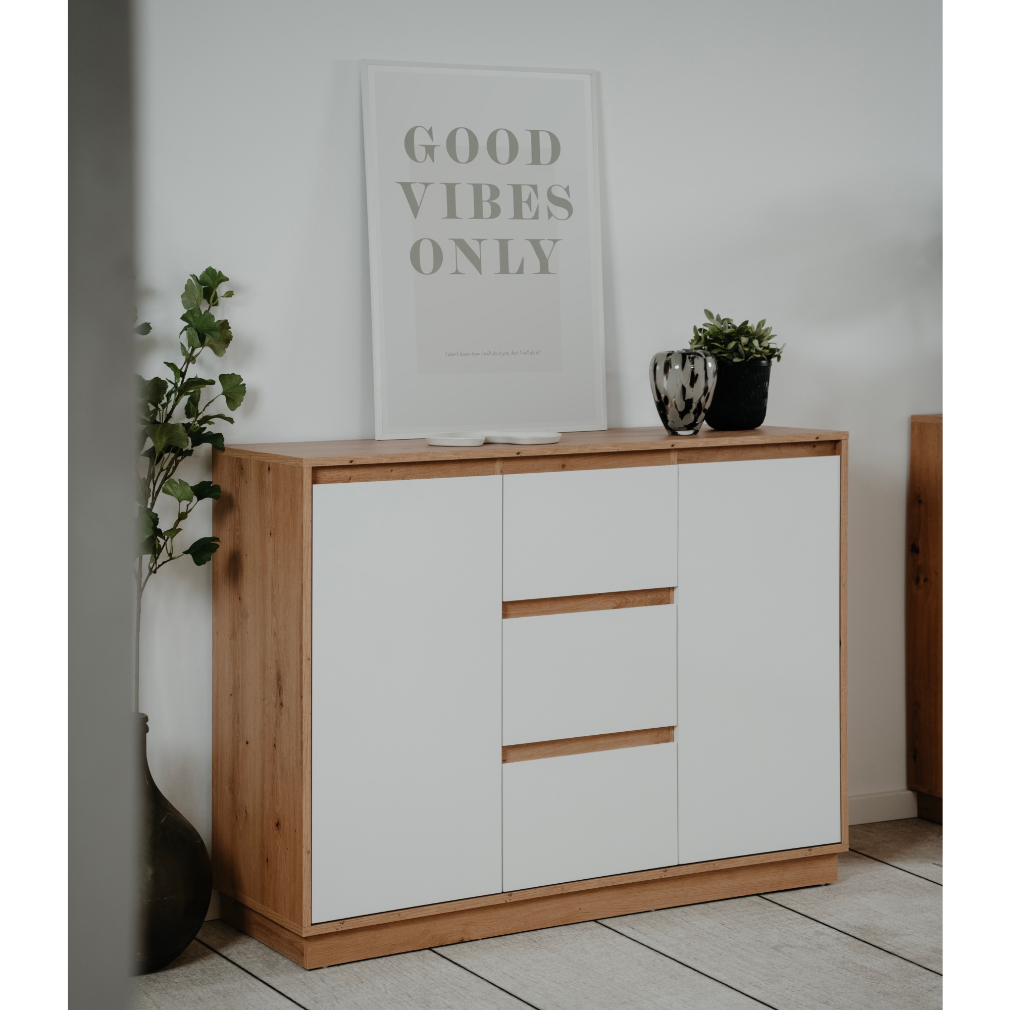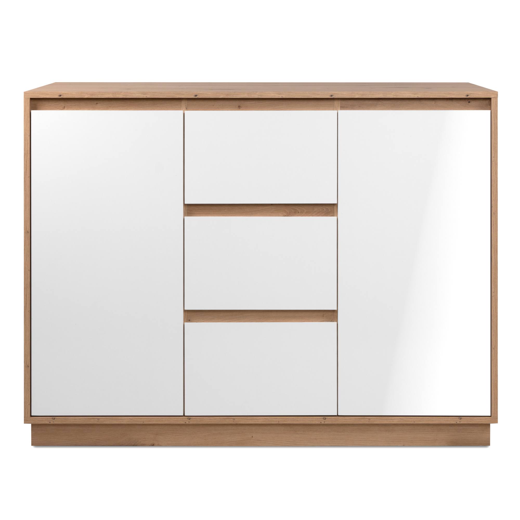 Komoda je vyrobená z ľahko udržiavateľnej laminovanej drevotriesky s ABS hranou, ktorá zvyšuje odolnosť materiálu.