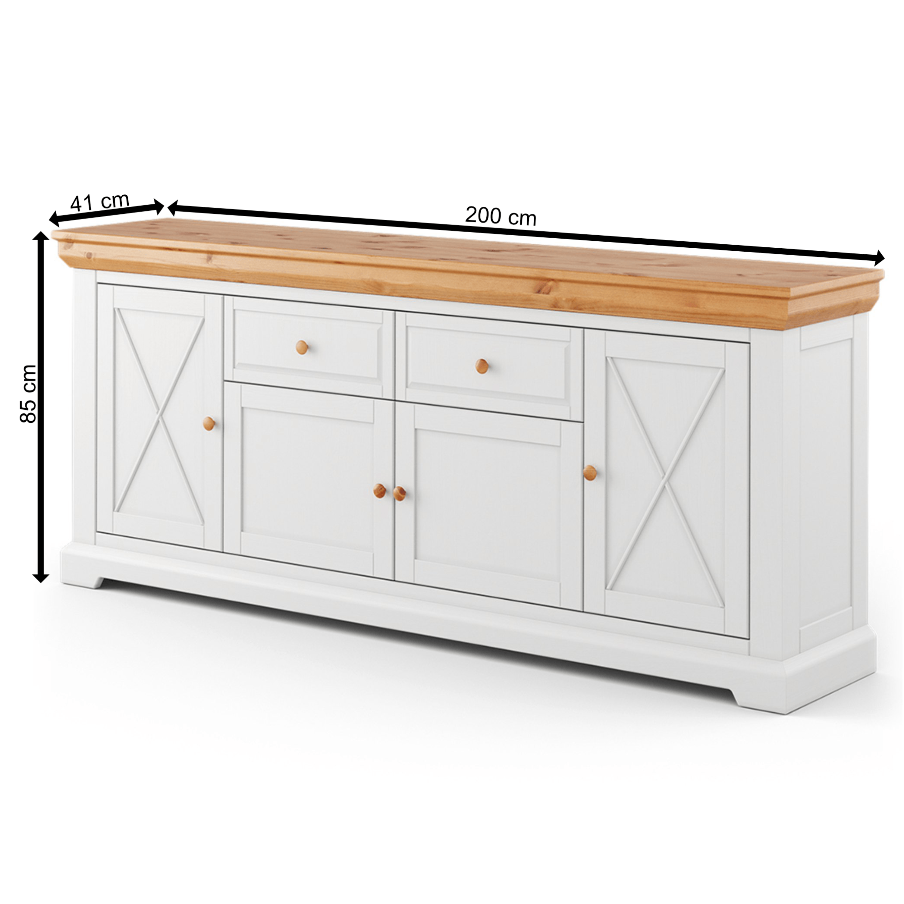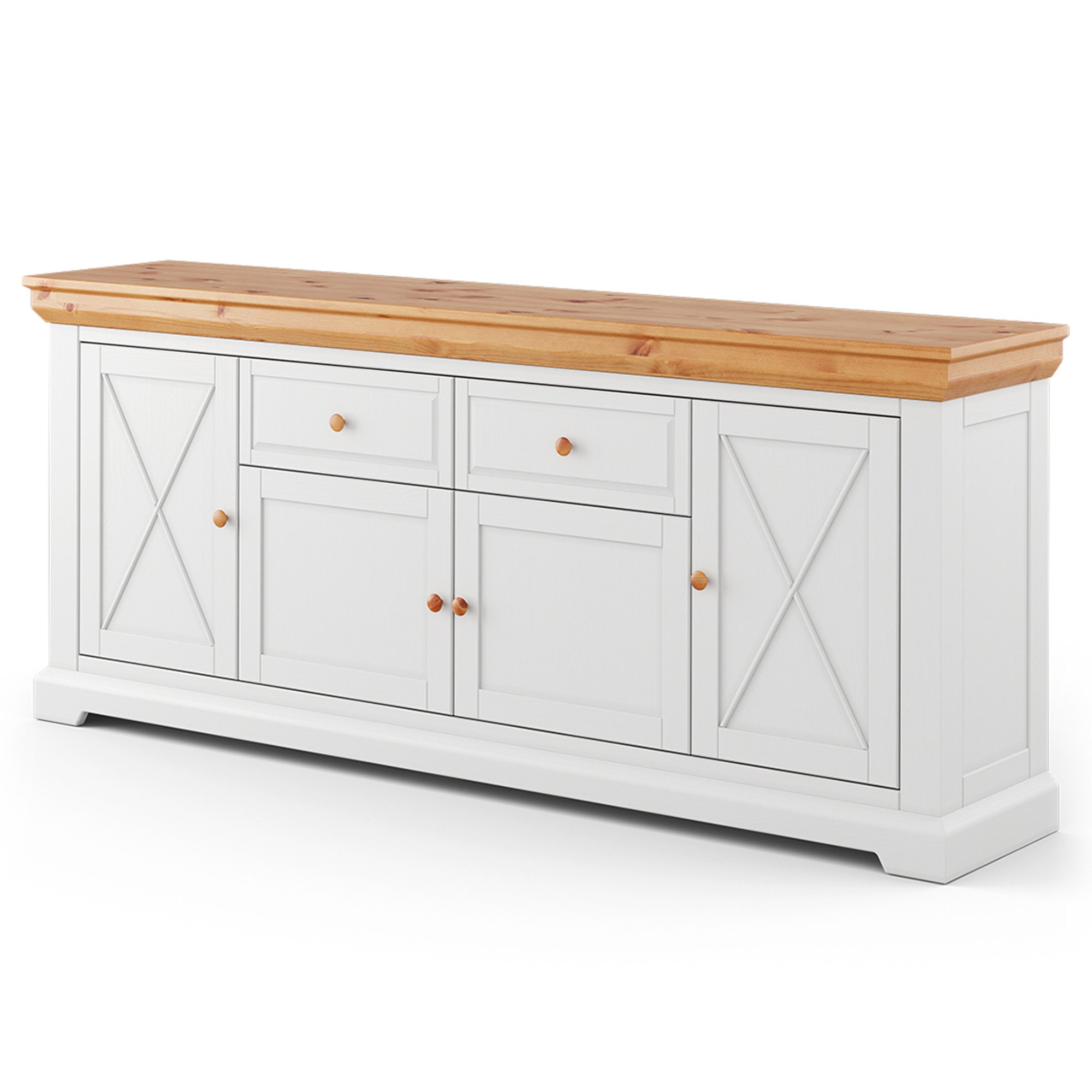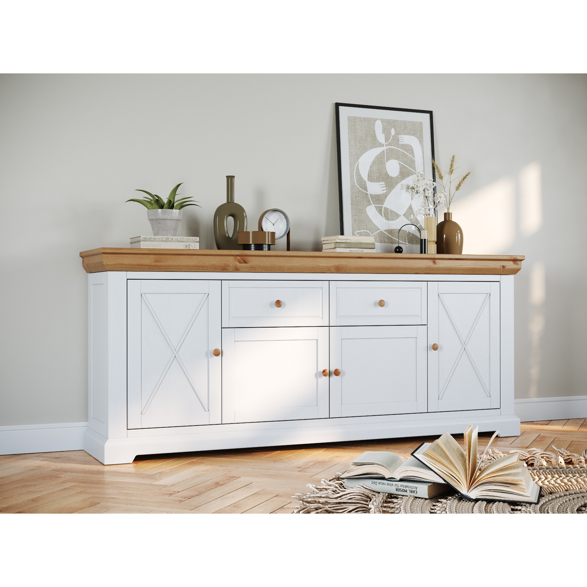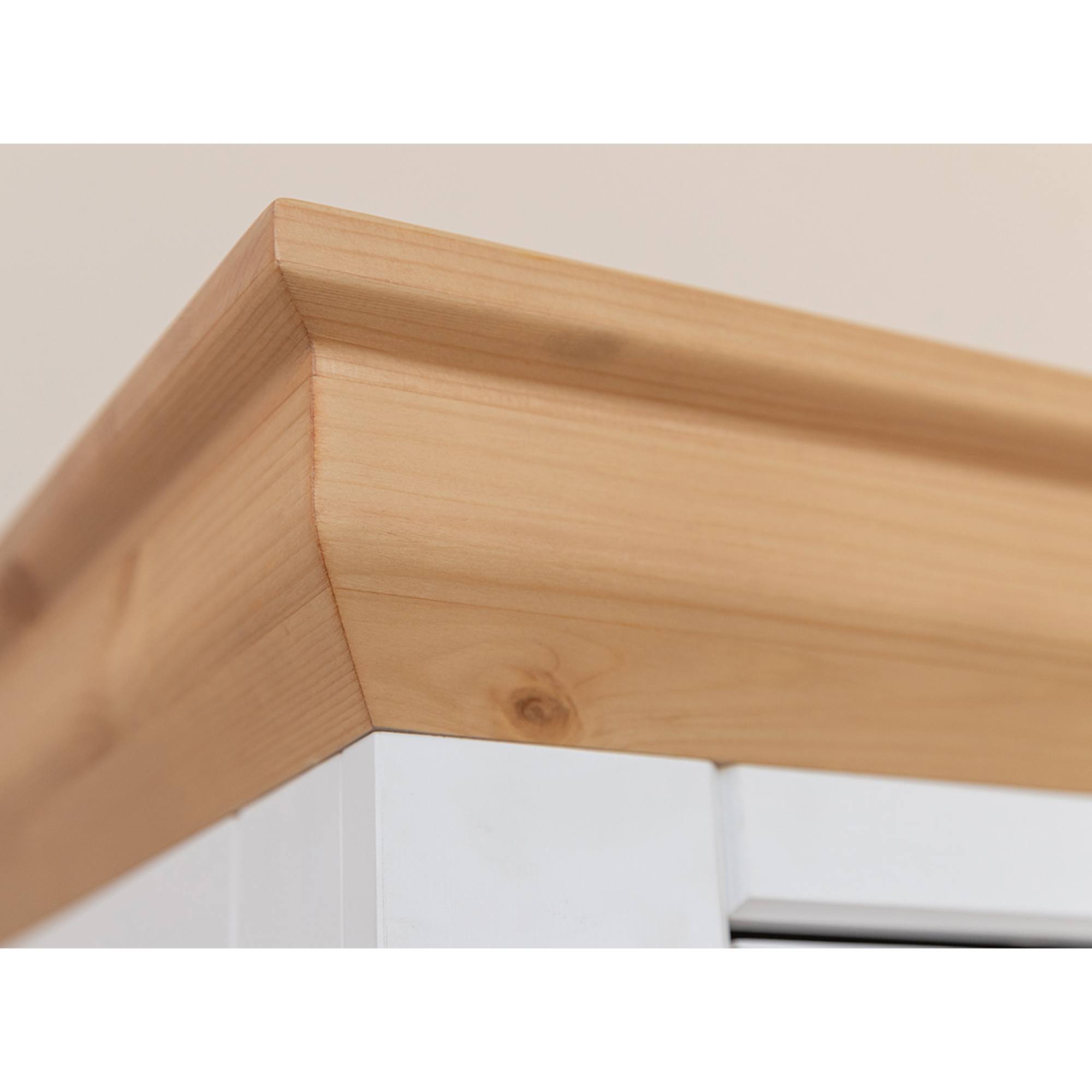Komodu MARON 2.4 môžete umiestniť do obývacej izby, spálne, predsiene, ale aj jedálne. Kamkoľvek ju umiestnite, tam sa stane praktickým spoločníkom vášho každodenného života. Zlatý vršok z masívnej borovice je kombinovaný s bielym telom, čo dokonale odráža provensálsky štýl.