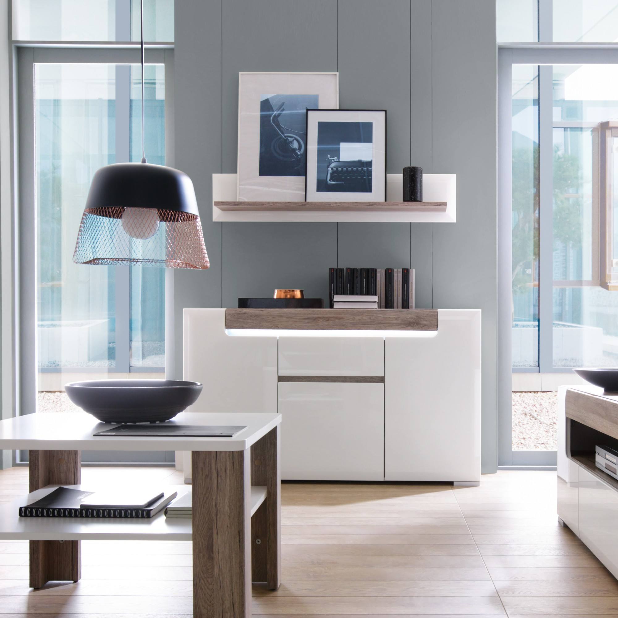 Kombinácia čistej bielej vo vysokom lesku s dekorom dreva vytvára jedinečný, príjemný vzhľad. Komoda poskytuje dostatok krytého úložného priestoru. Vďaka zásuvke budete mať prehľad, kde čo máte a vyhnete sa tak zúfalému prehrabovaniu, police elegantne uschované za dvierkami zase zaistia perfektnú organizáciu vnútri komody. Dvierka sú vybavené systémom SOFT CLOSE, ktorý sa postará o ich tiché dovieranie.