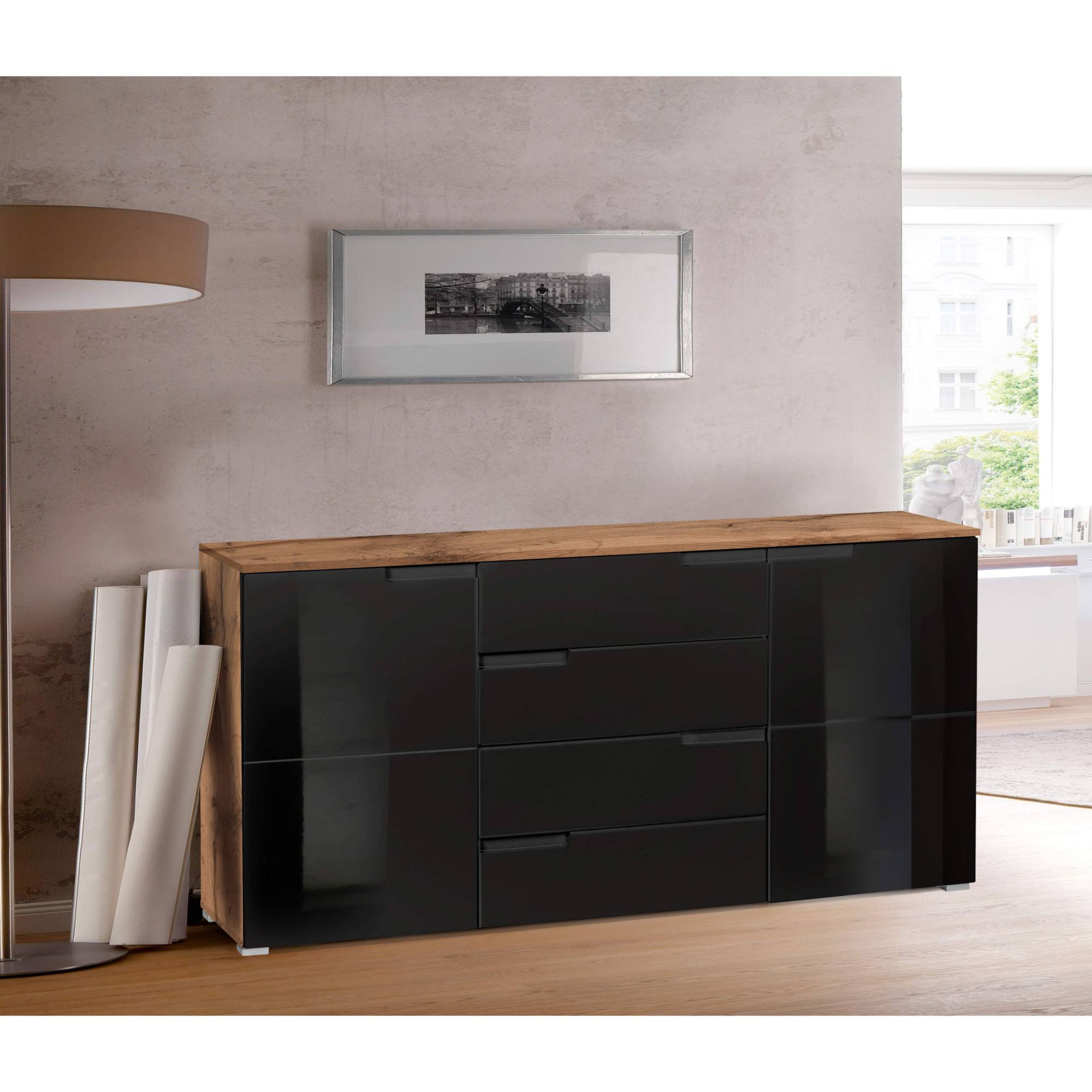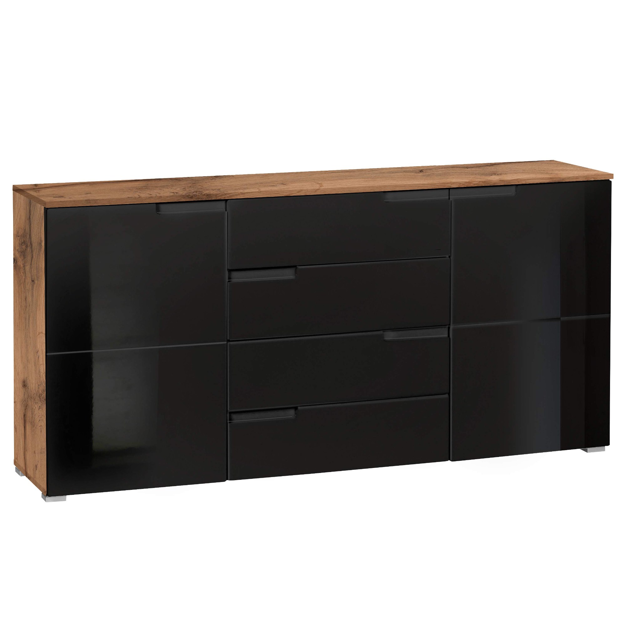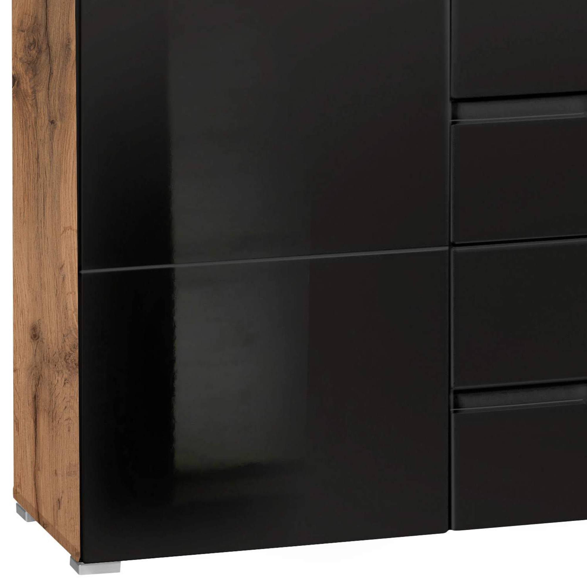Komoda MOON 4 - dub wotan/čierna vysoký lesk