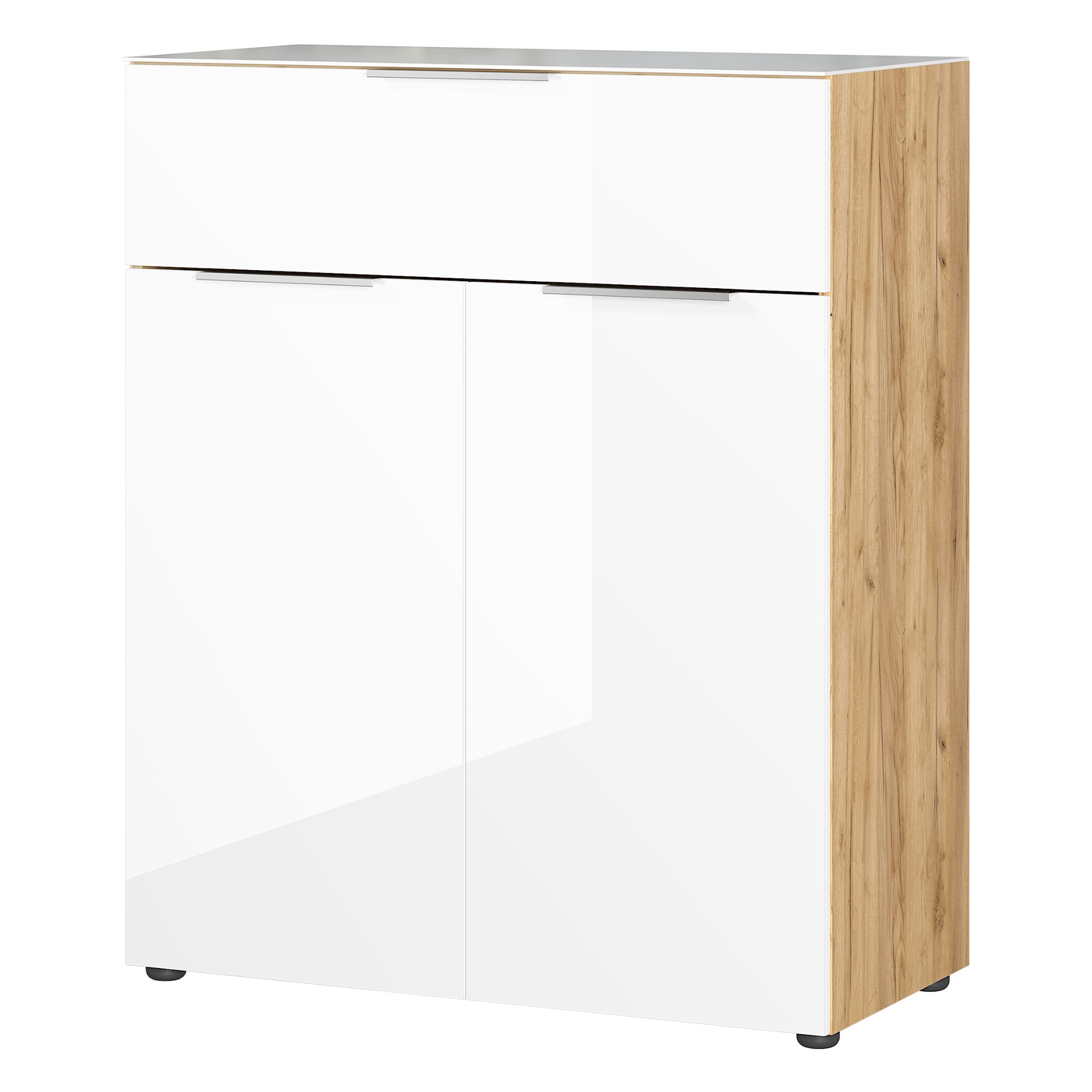 Jej súčasťou sú 2 nastaviteľné police ukryté za dvierkami a 1 zásuvka. Vďaka tomu komoda poskytuje dostatok úložného priestoru na všetky predmety, ktorým vo vašej domácnosti potrebujete nájsť stále miesto.