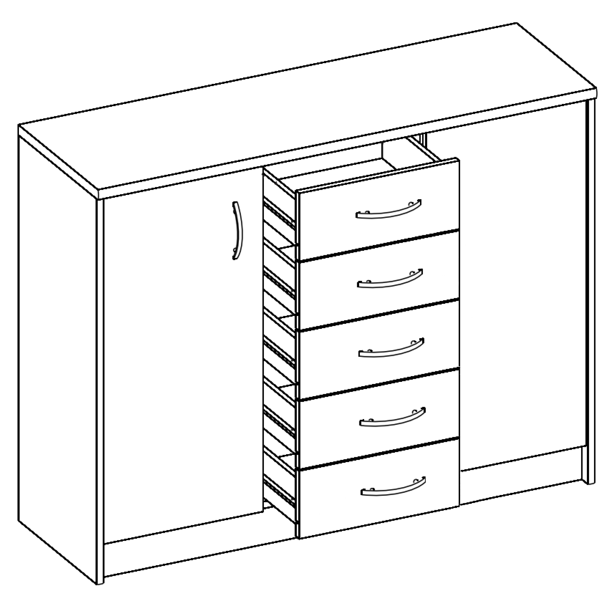 Nadčasová komoda OPTIMUS sa vyznačuje elegantným vzhľadom a ľahko udržiavateľným povrchom. Je vybavená dômyselne členeným úložným priestorom pozostávajúcim z piatich zásuviek a dvoch skriniek.