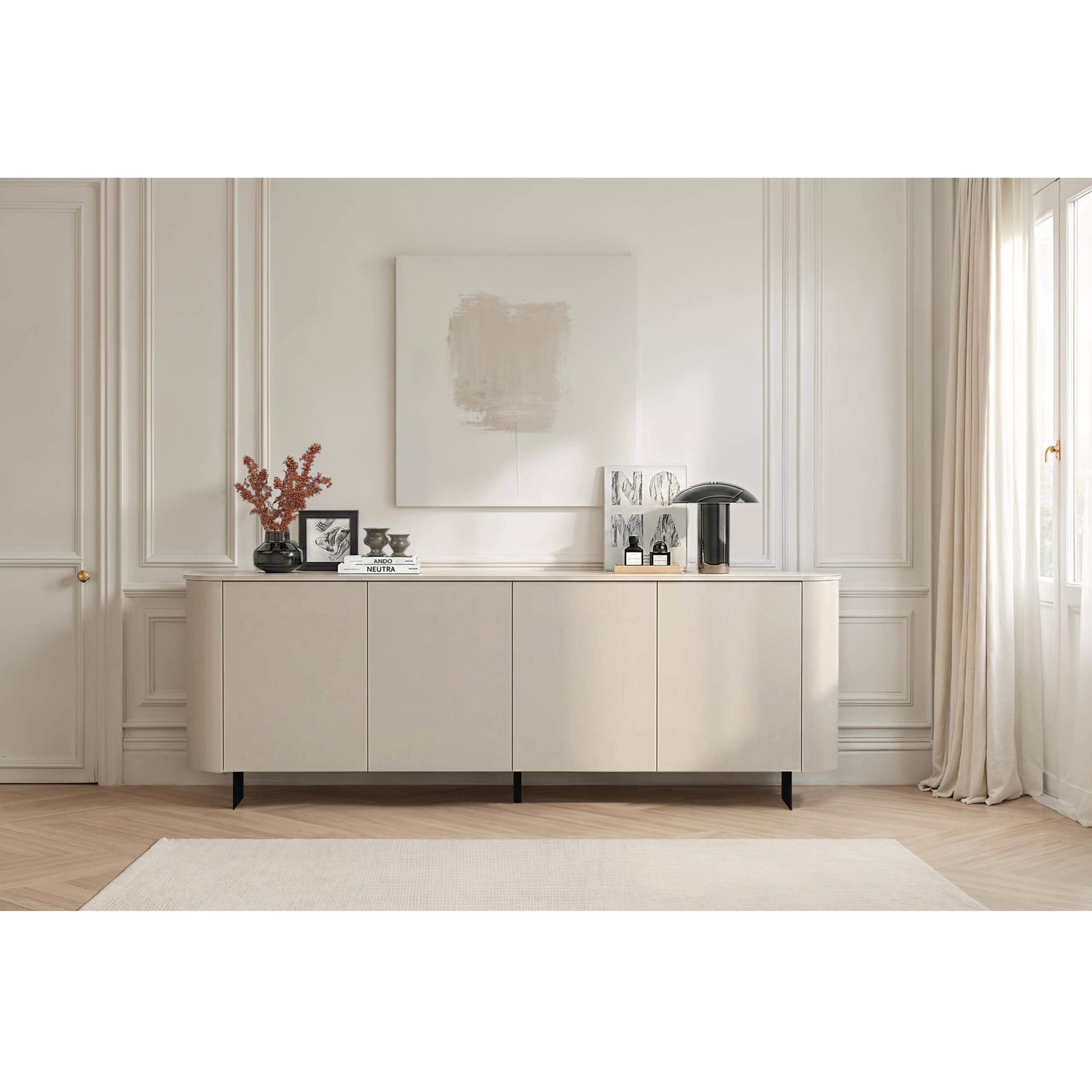 Komoda ORTISEI 4D v elegantnom kašmírovom odtieni zaujme svojím čistým dizajnom, ktorý pôsobí jemne a moderne. Vďaka svojmu neutrálnemu vyhotoveniu sa ľahko začlení do rôznych interiérov.
