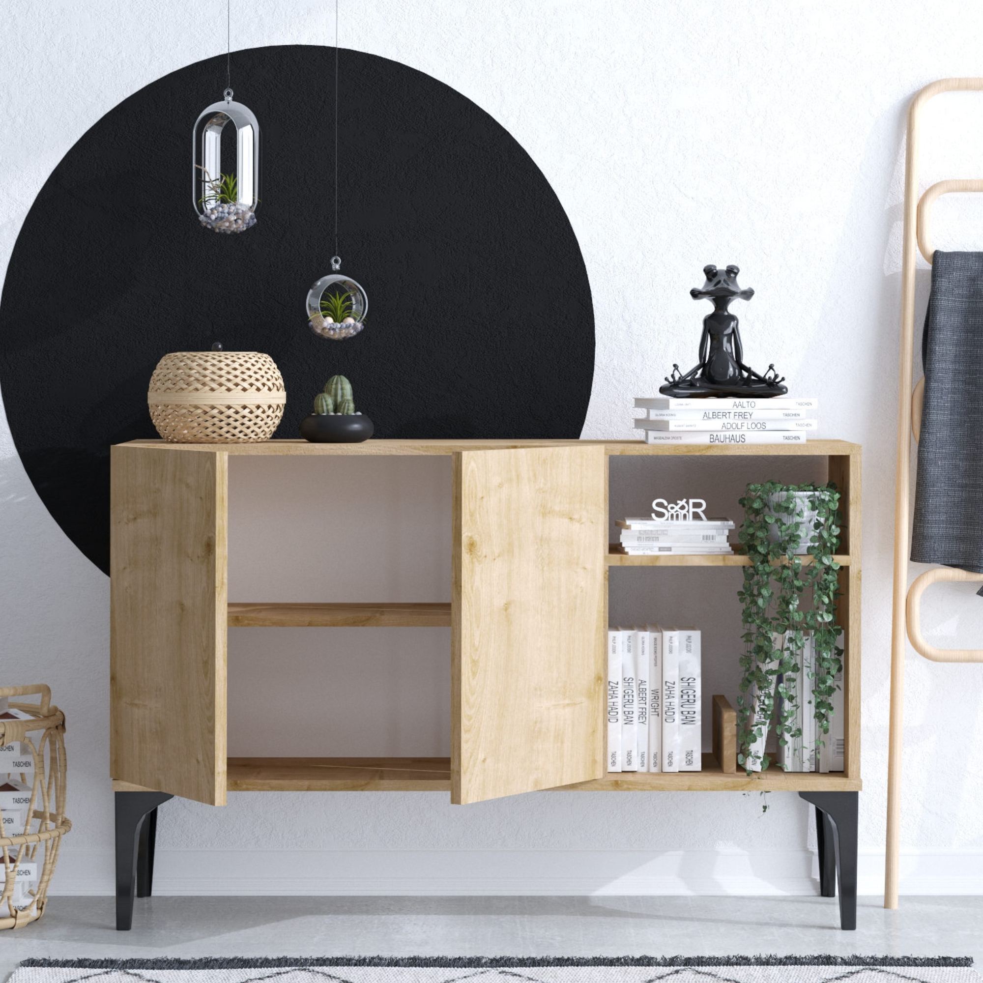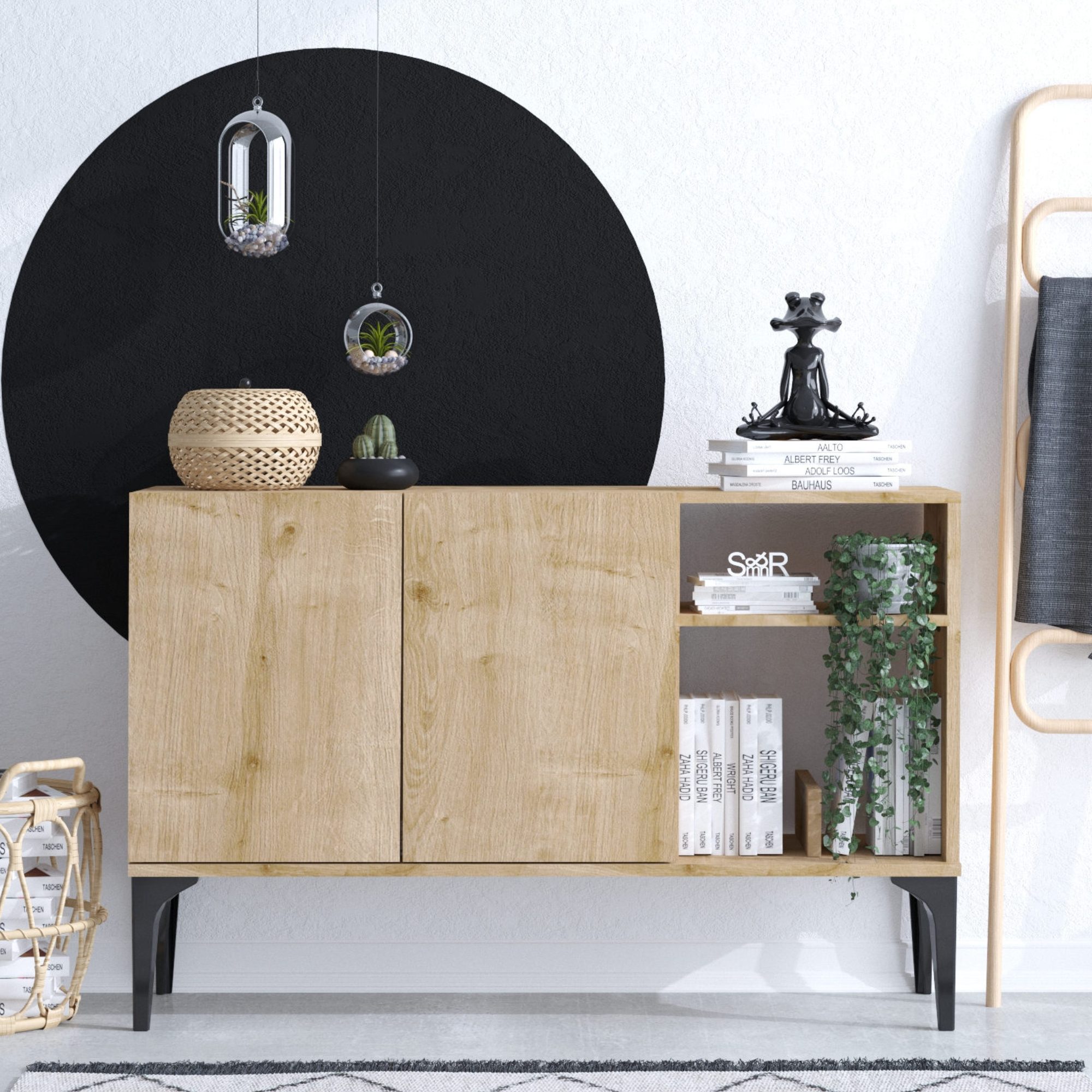 Stabilná komoda poskytuje dostatok uzavretého a otvoreného úložného priestoru, ktorý udrží všetky vaše veci usporiadané. Nôžky vysoké 25 centimetrov oceníte najmä pri upratovaní.