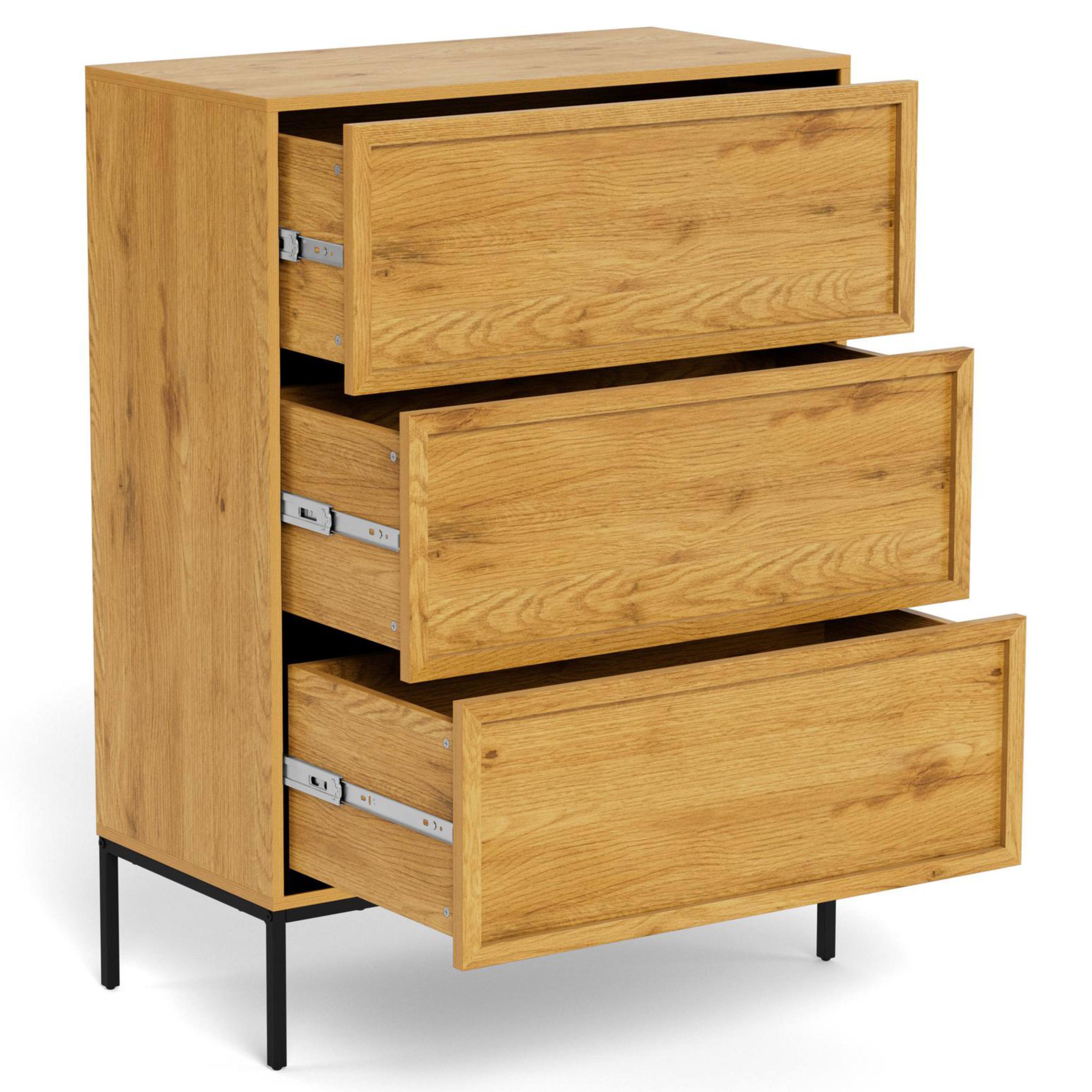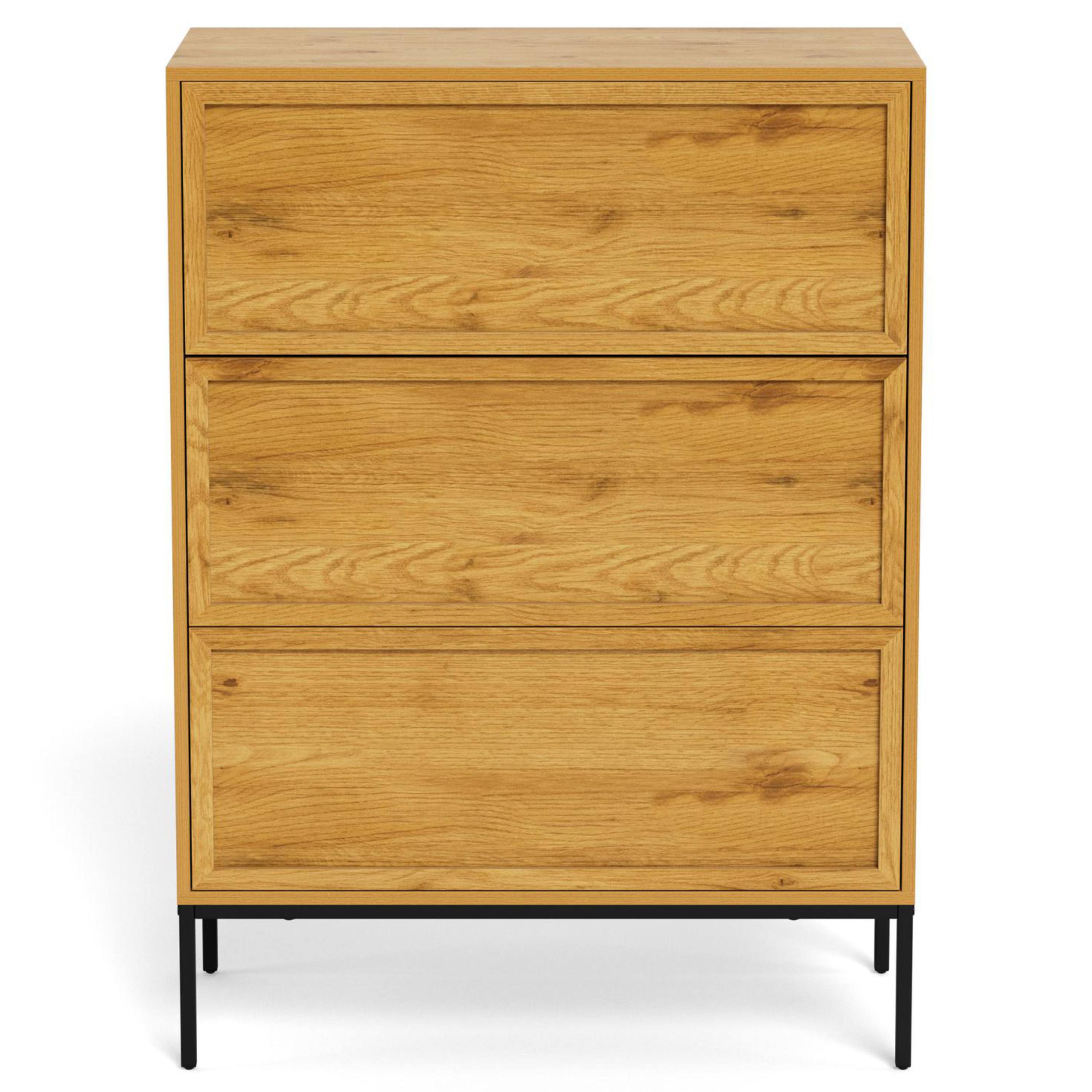 Ponúka na využitie úložný priestor v podobe troch zásuviek, kde budete mať dostatok miesta pre širokú škálu predmetov. Pre ešte čistejší vzhľad sú všetky úložné priestory vybavené bezúchytovým otváraním so systémom PUSH TO OPEN. Komoda sa vyznačuje jednoduchou údržbou.