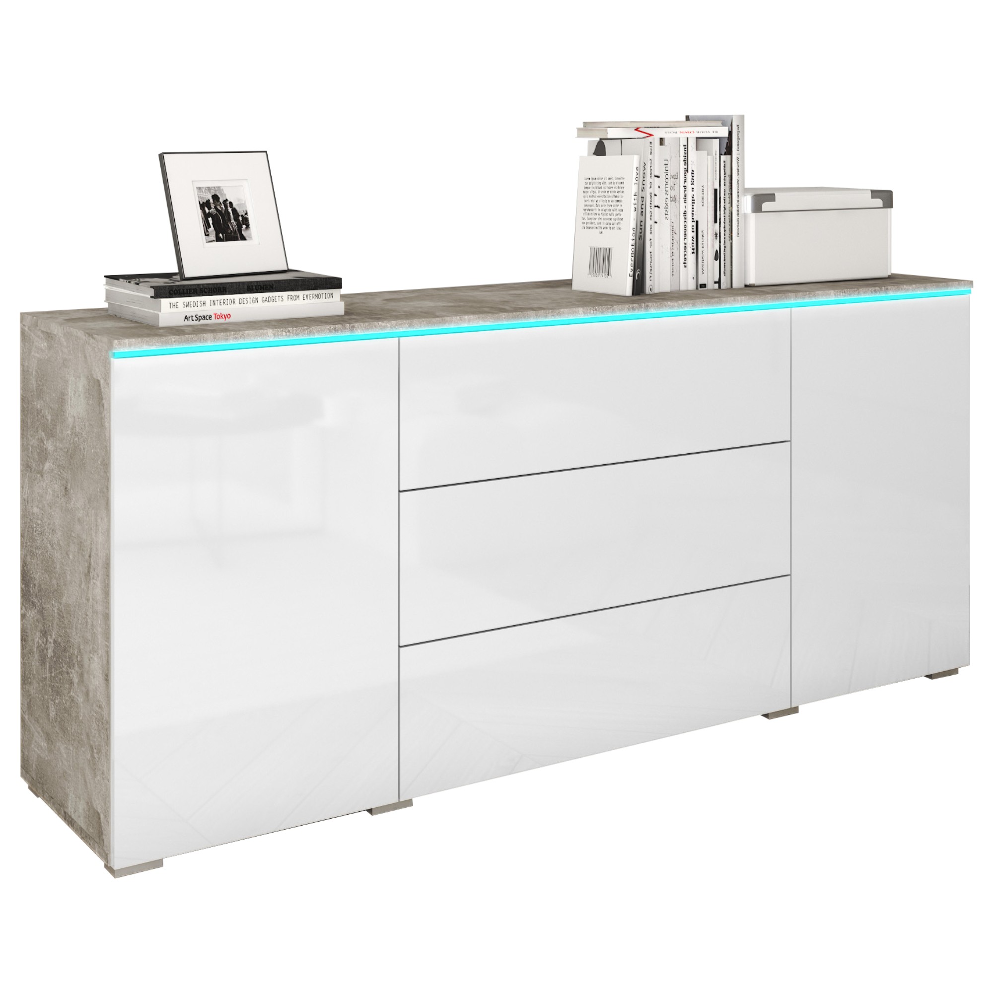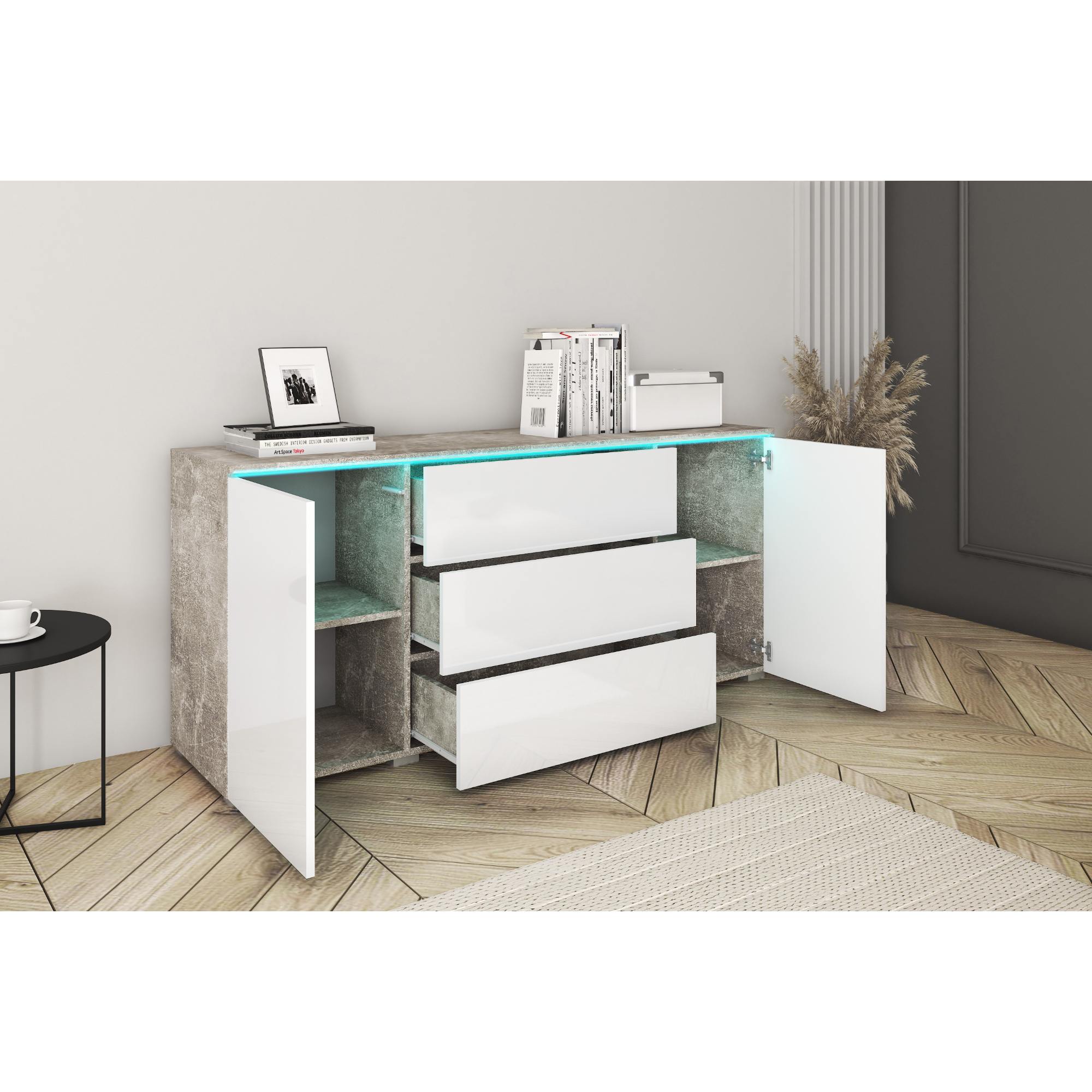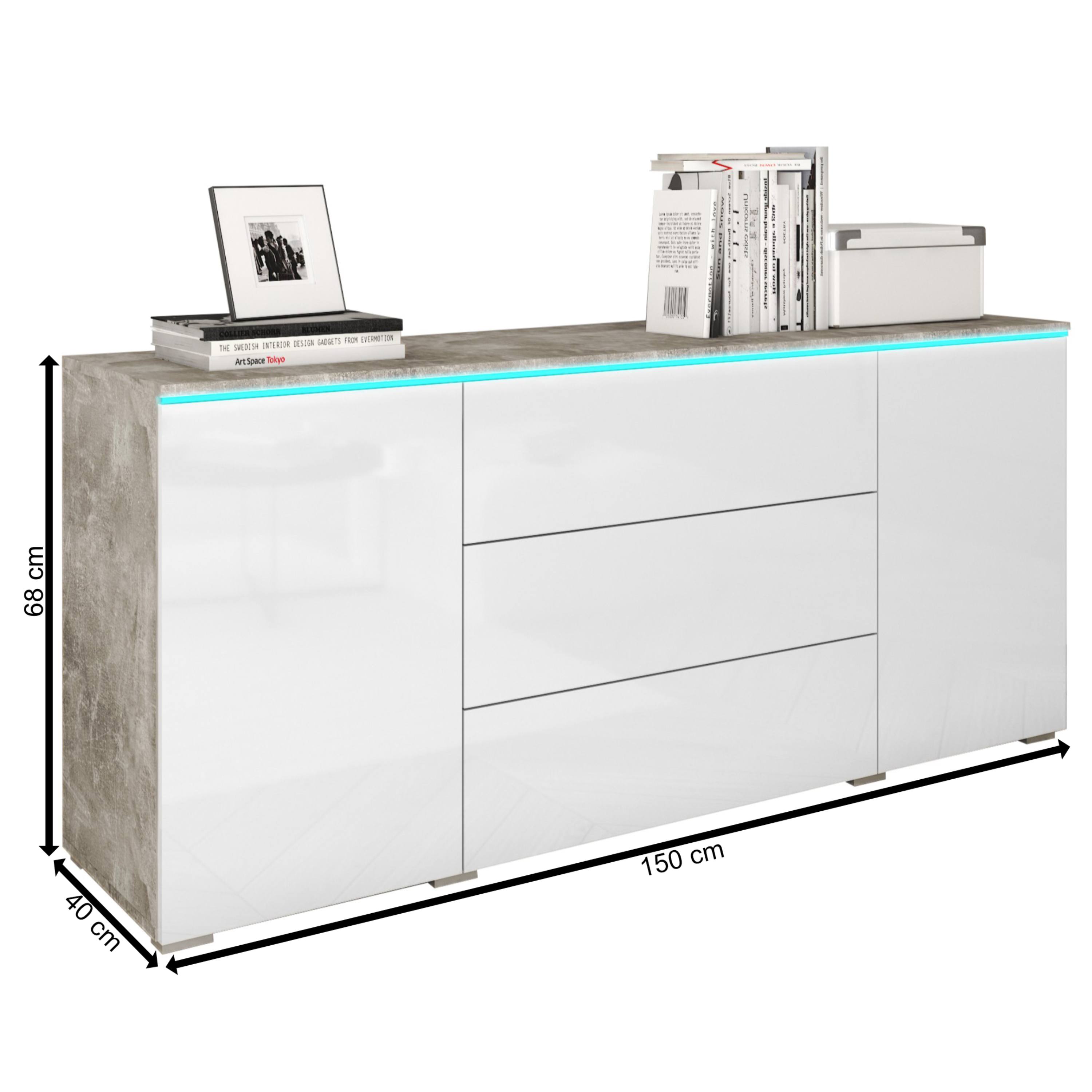 Komoda PAVIA 150 - betón/biela lesklá