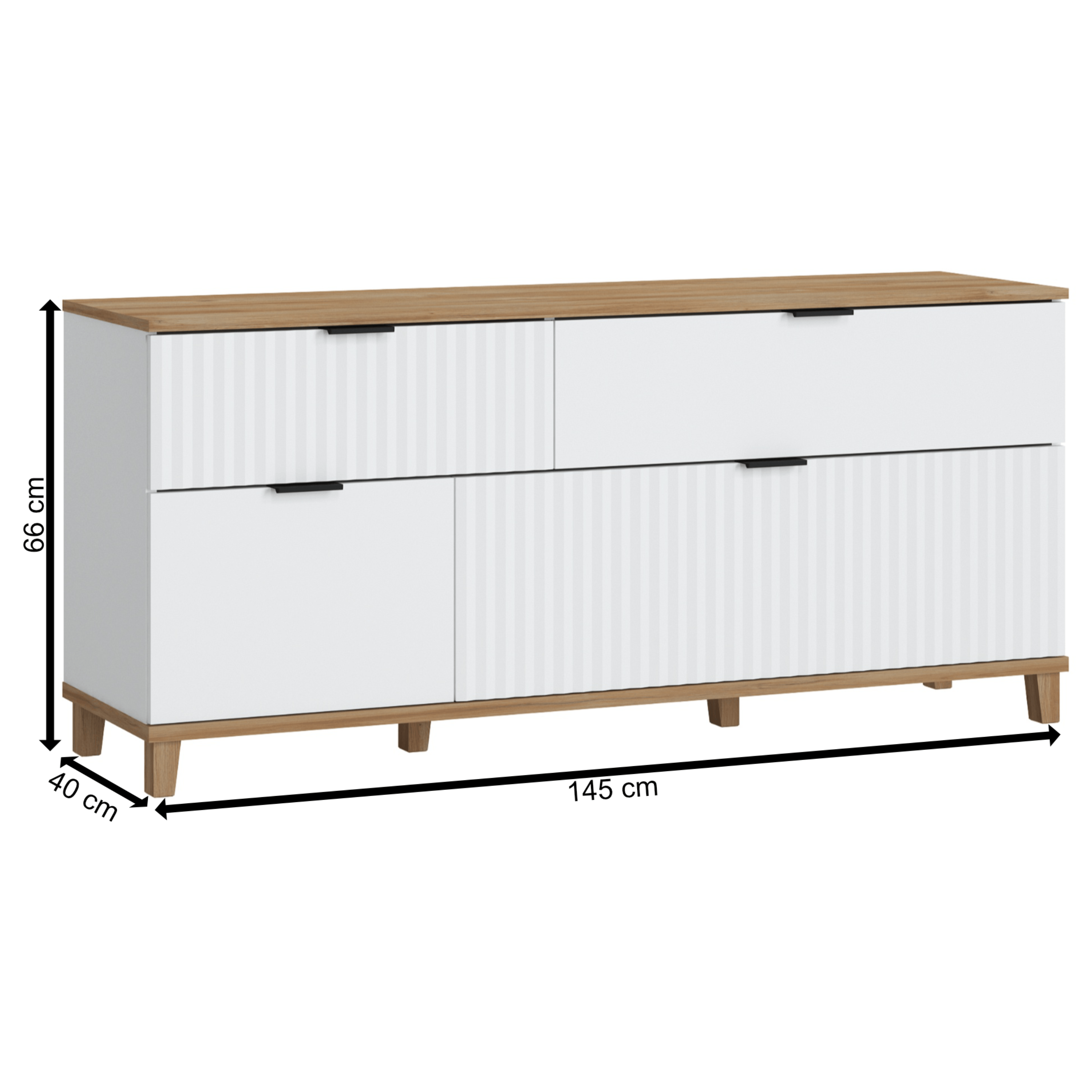 Komoda PLISSEE PLIF01 - alpská biela/dub grandson