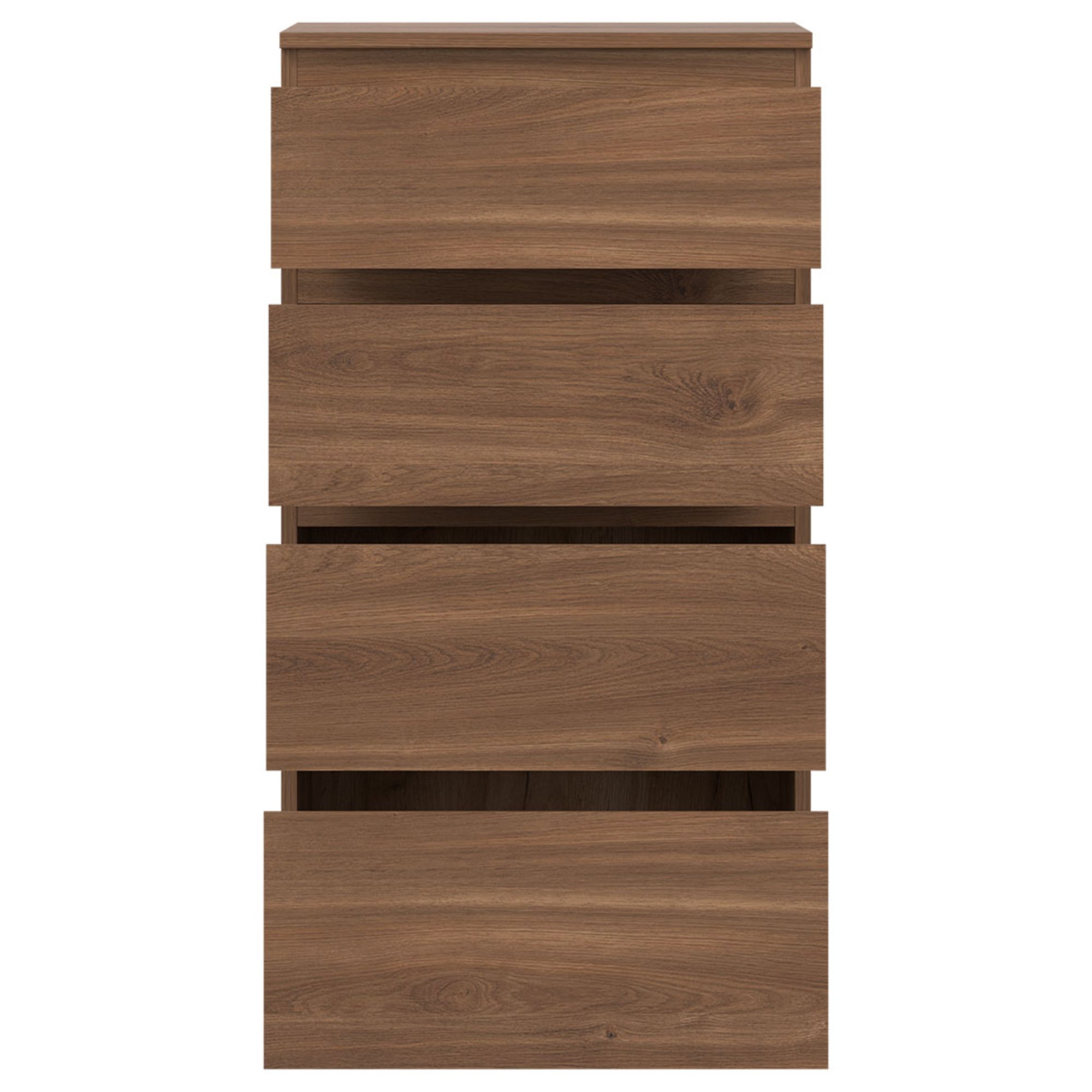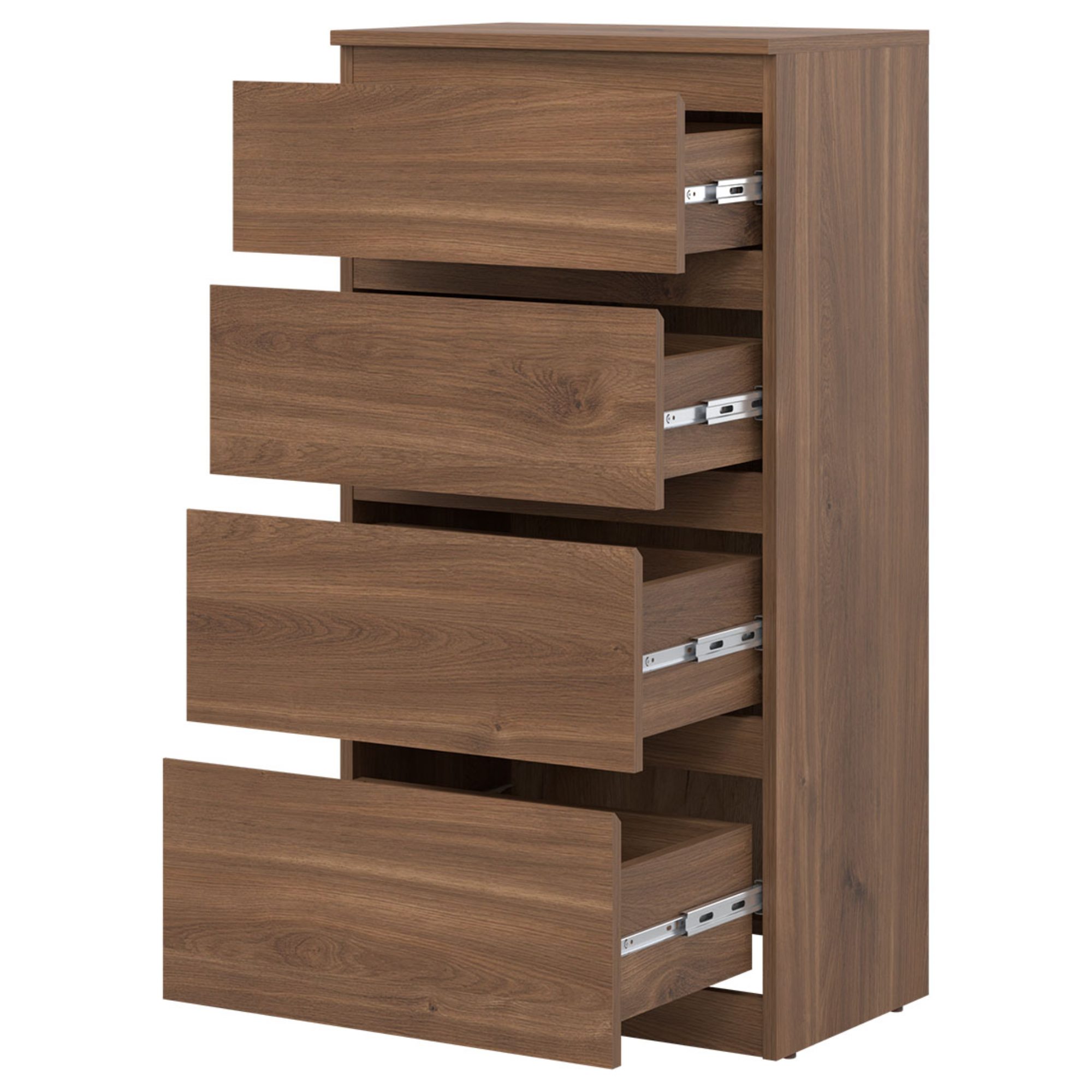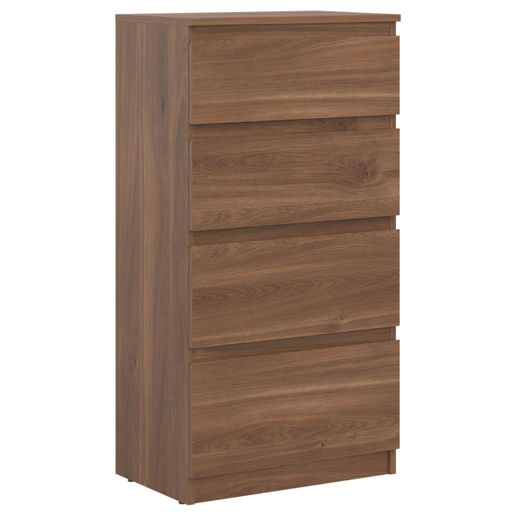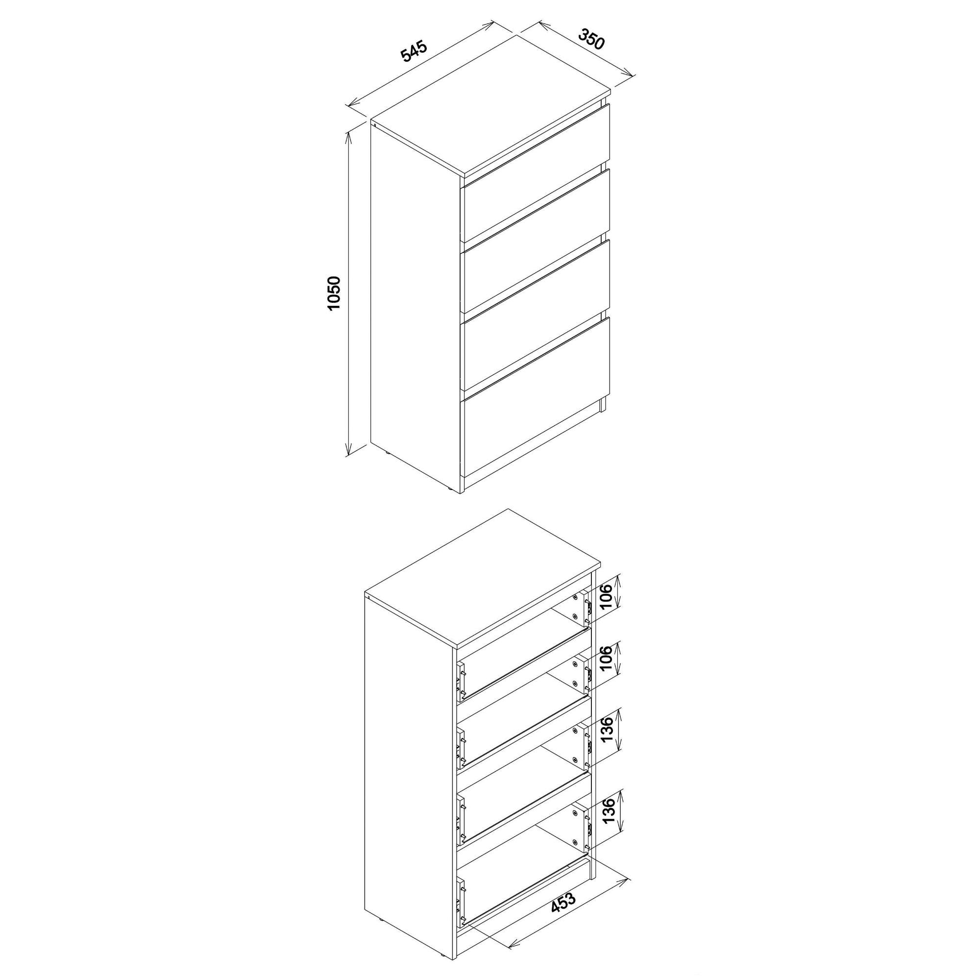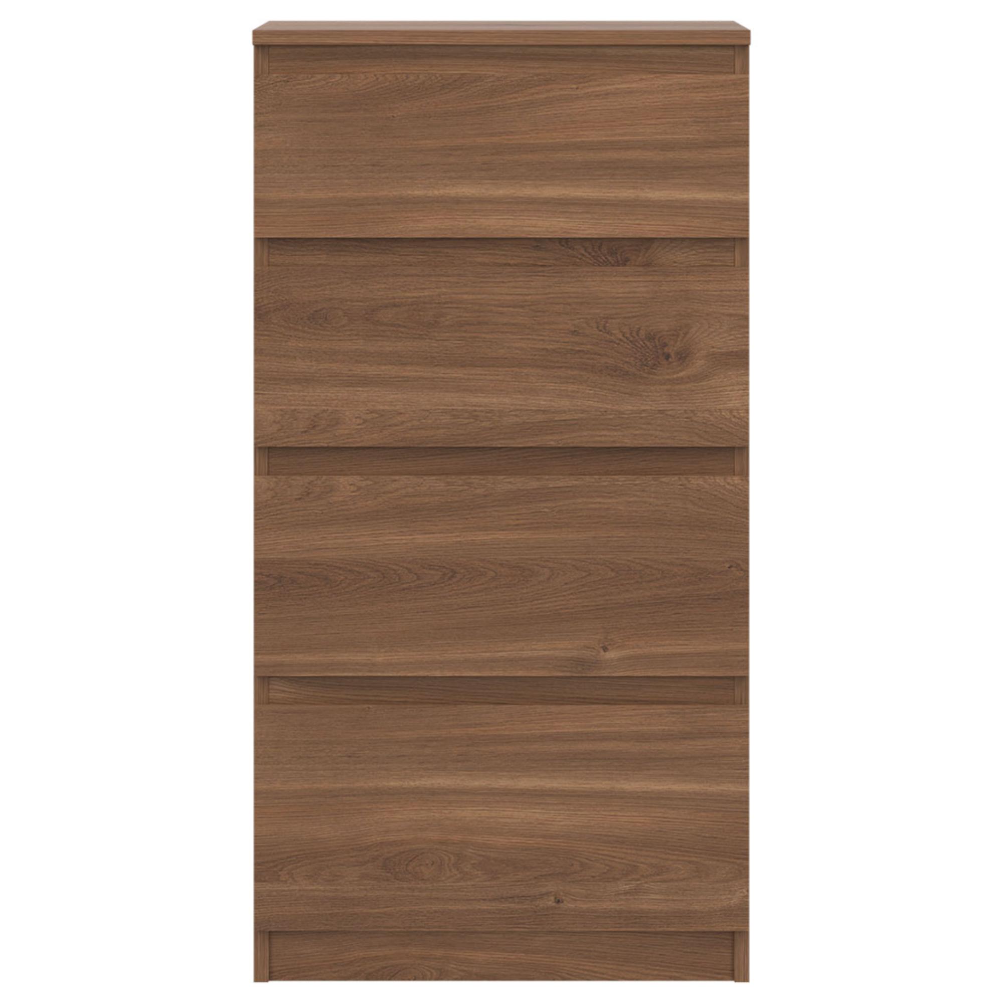 Vyrobená je z laminovaného dreveného materiálu, pre ktorý je typická ľahká udržiavateľnosť a dlhá životnosť. Dostatočný úložný priestor zaisťujú okrem hornej dosky aj štyri zásuvky. Bezrúčkové vyhotovenie pridáva na čistom vzhľade. Podporte štýl domácnosti s komodou ERNIE RM04.