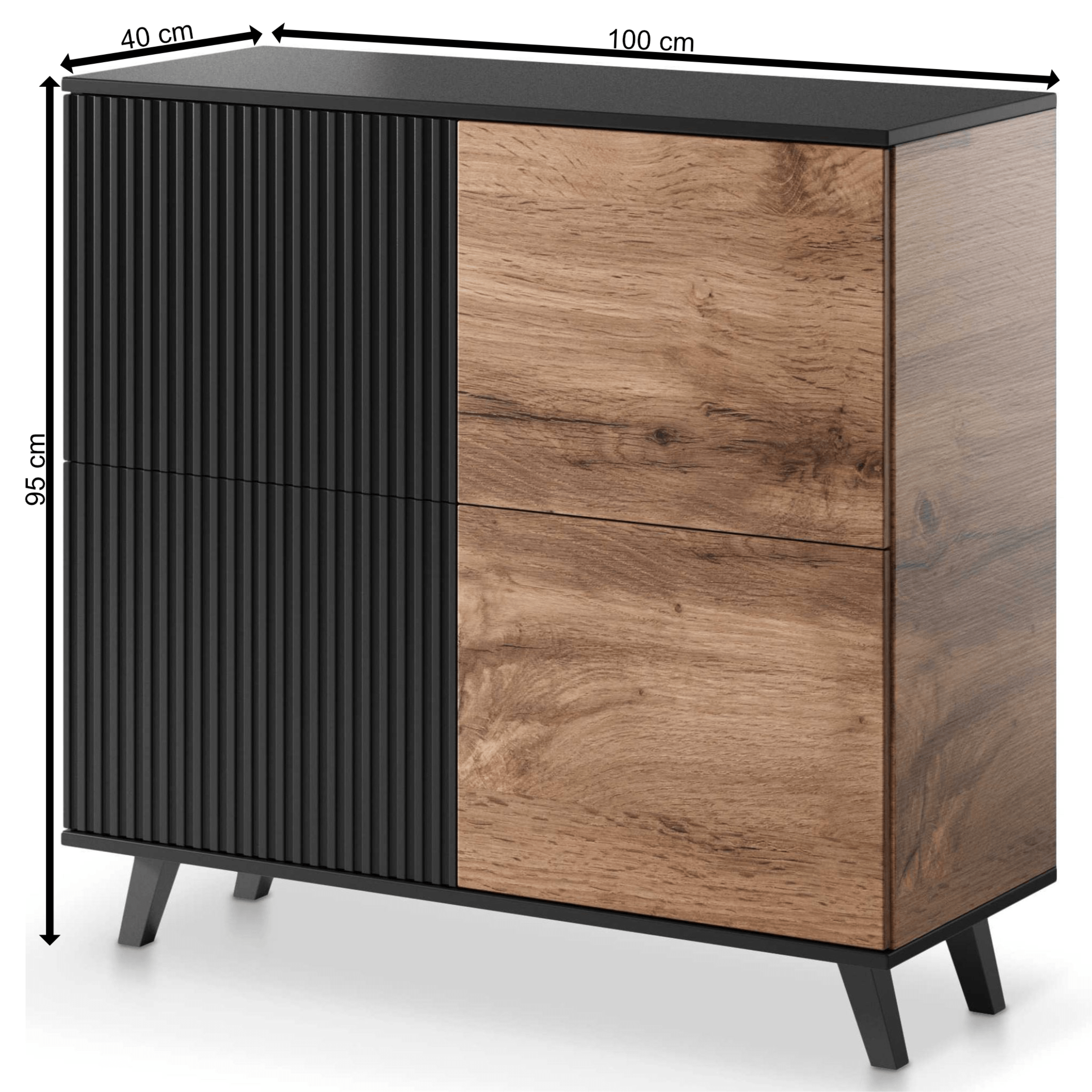 Komoda RONDUM - dub wotan/čierna, šírka 100 cm