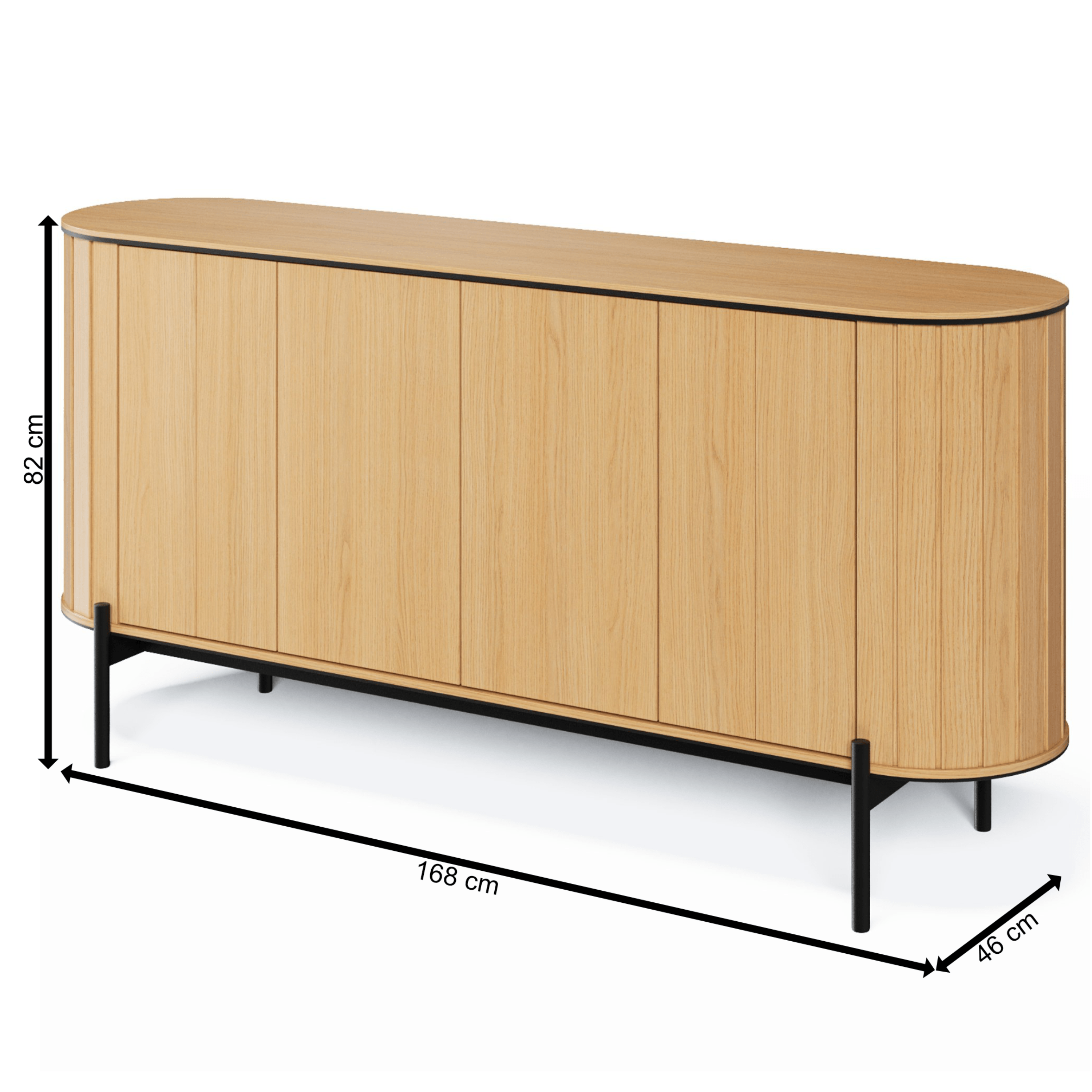 Vyrobená je z laminovaného dreveného materiálu, ktorý je ľahko udržiavateľný. Ladená je do dekora duba vincenza – ten interiér zútulňuje a prepožičiava mu nádych prírody. Maximálnu stabilitu zaisťuje podnož v kontrastnom čiernom vyhotovení. Dostatok úložného priestoru nájdete na troch vložených policiach za dvierkami.