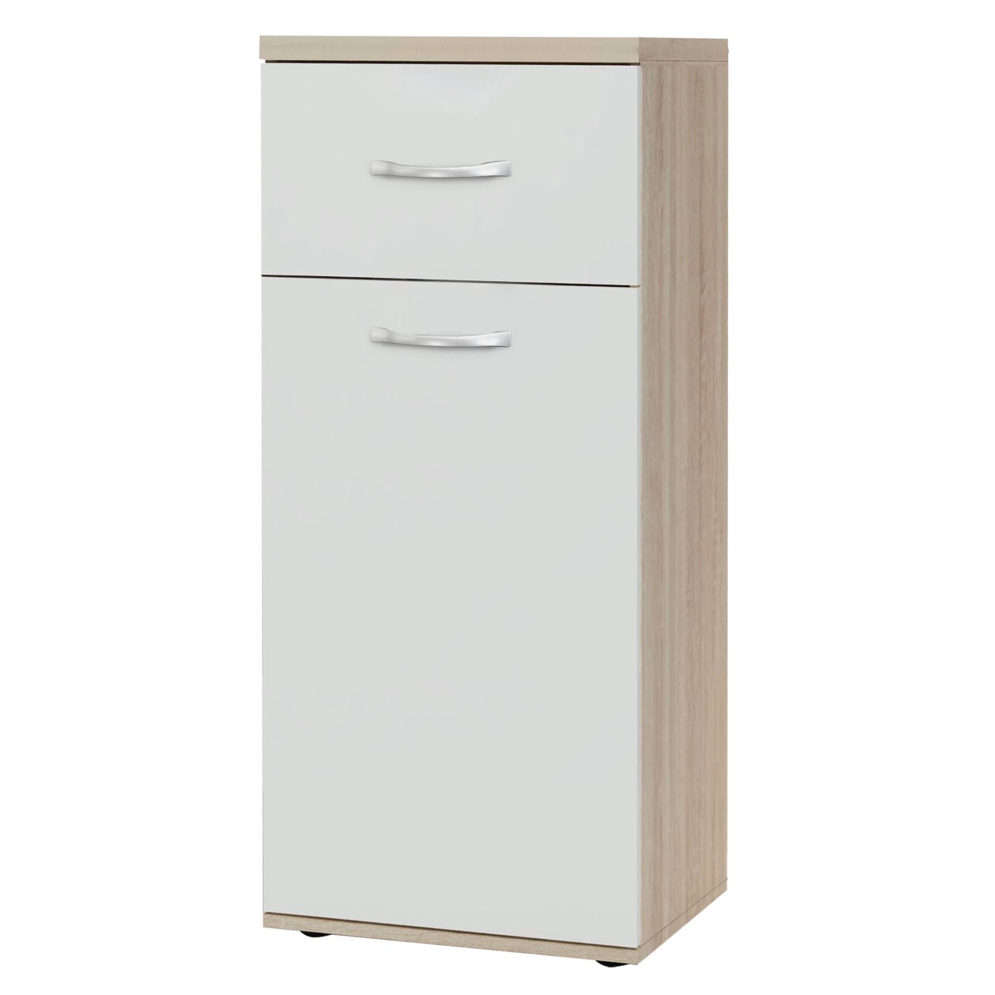 Komoda ponúka dostatok úložného priestoru. Jej súčasťou sú nielen 2 vložené police umiestnené za dvierkami, ale aj 1 zásuvka, ktorá je ideálna na uloženie drobností. Aby sa s dvierkami a zásuvkou ľahšie manipulovalo, je komoda vybavená praktickými rúčkami.