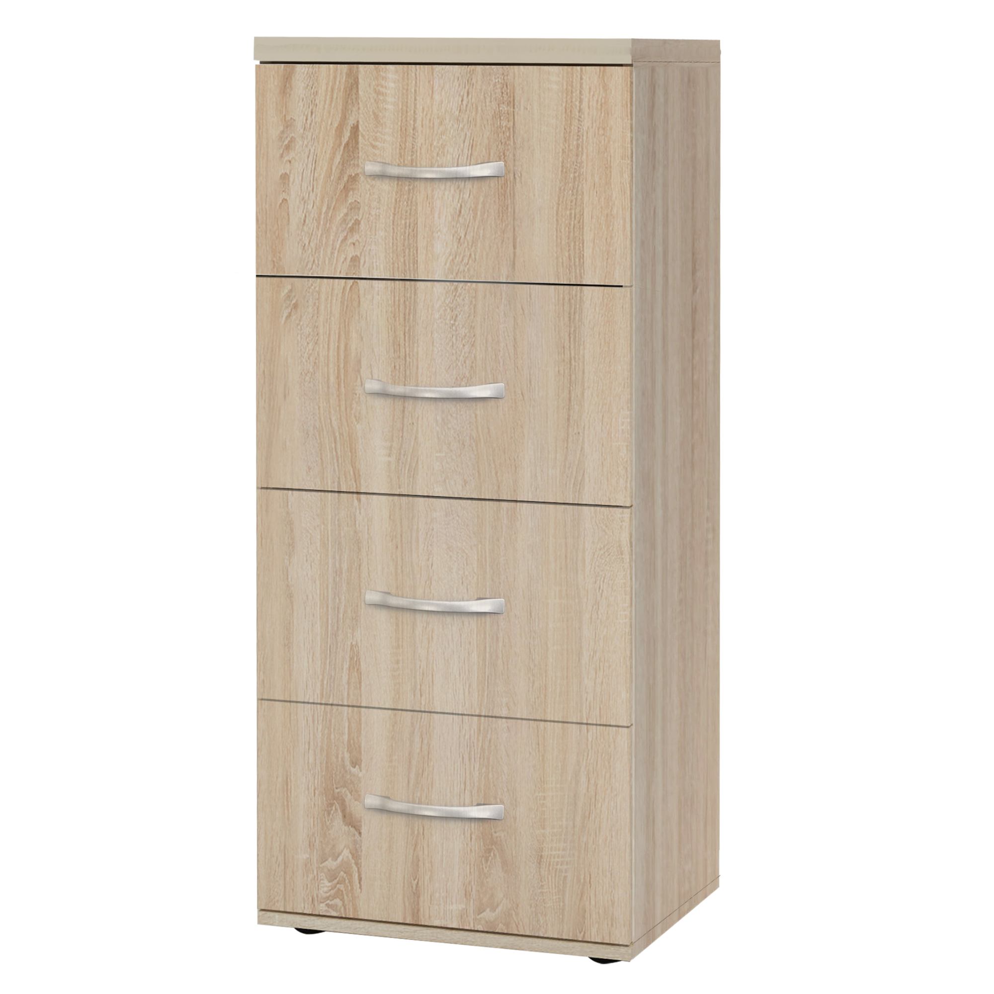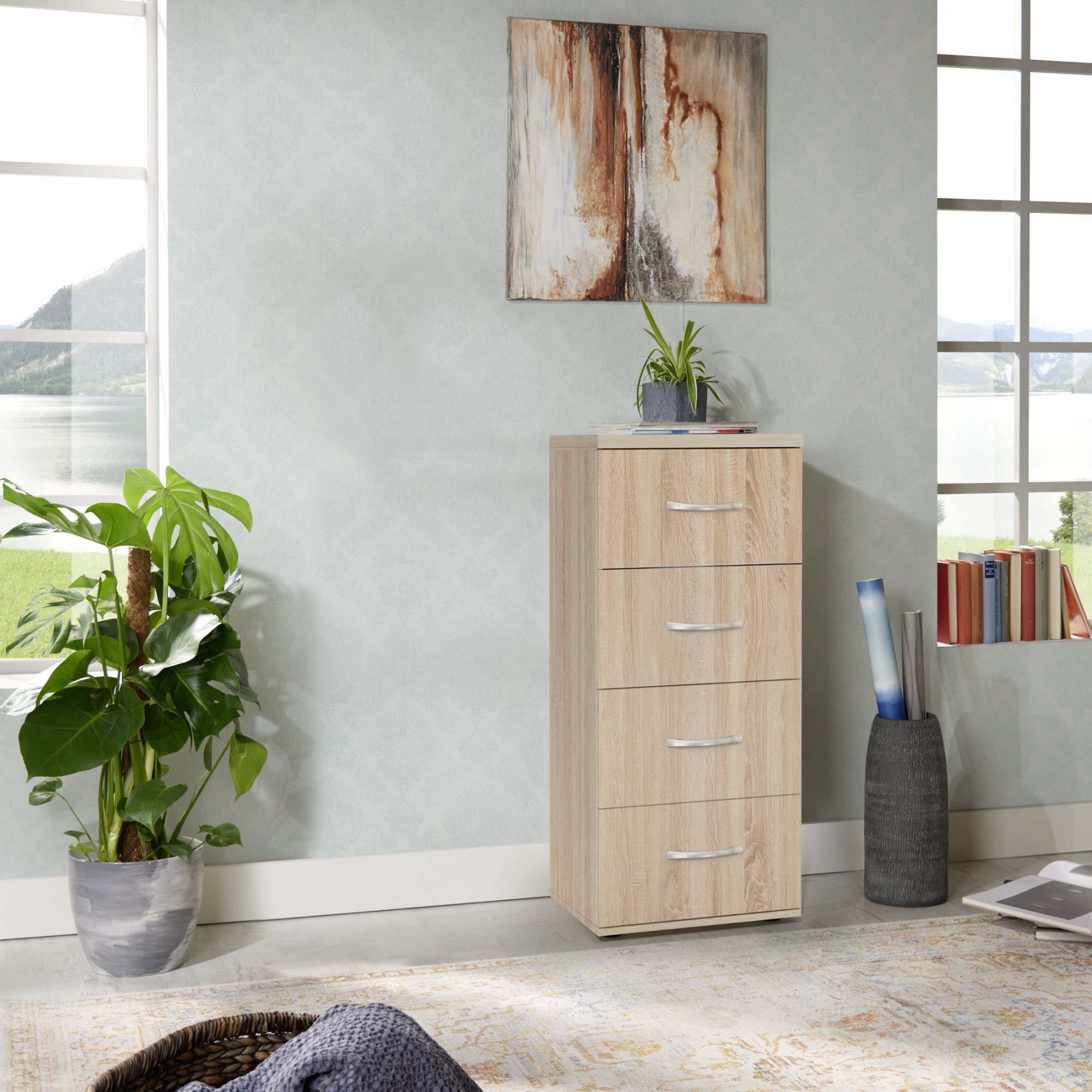 Komoda ponúka dostatok úložného priestoru. Jej súčasťou sú 4 zásuvky, ktoré sú ideálne na uloženie drobností. Aby sa so zásuvkami ľahšie manipulovalo, je komoda vybavená praktickými rúčkami.