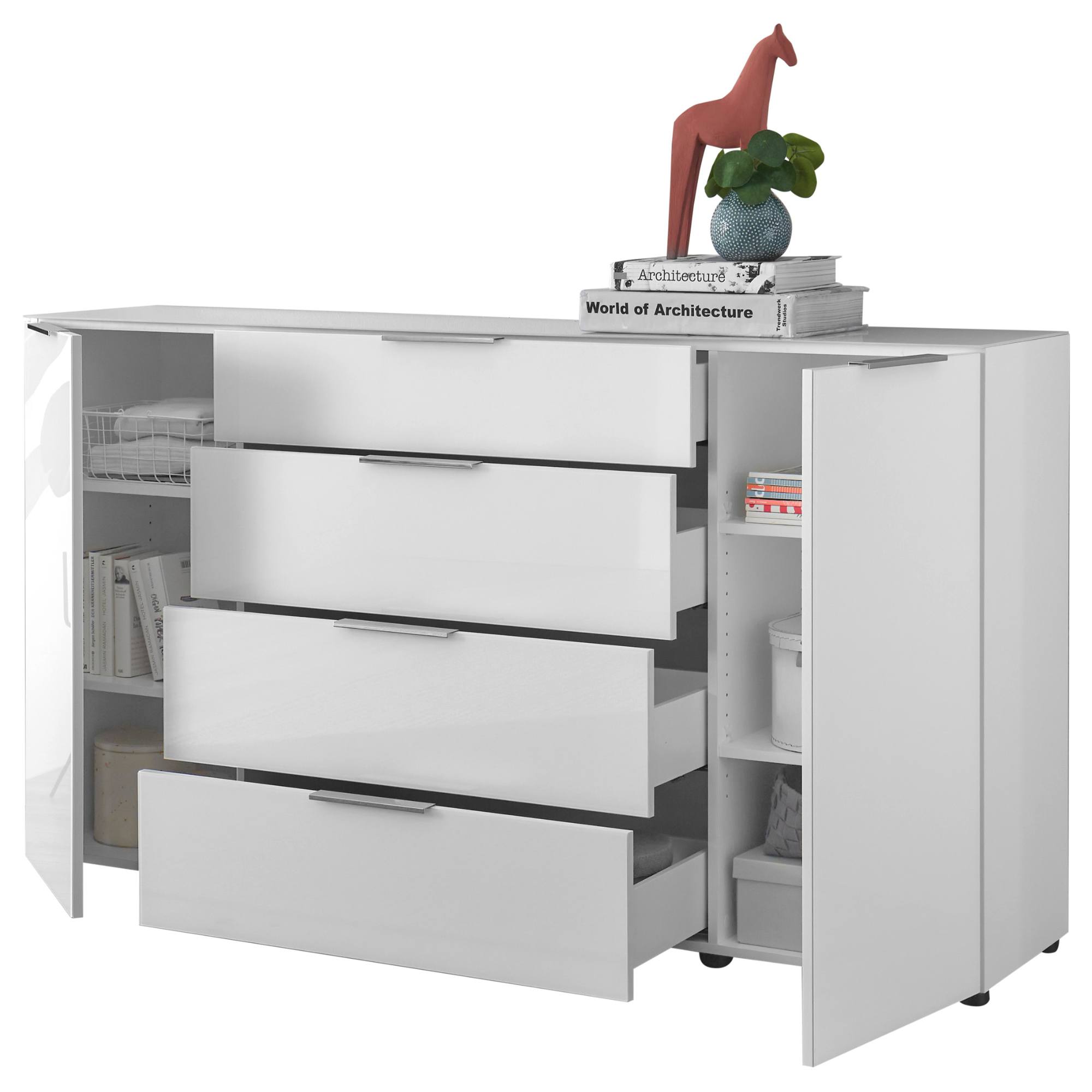 Komoda SANTORIN 4 kombinuje moderný dizajn a praktickosť. Sklenené vyhotovenie predných častí a hornej dosky ozvláštni vašu domácnosť a dodá jej atraktívny nádych. Je ideálnym kusom nábytku do moderne ladených interiérov.