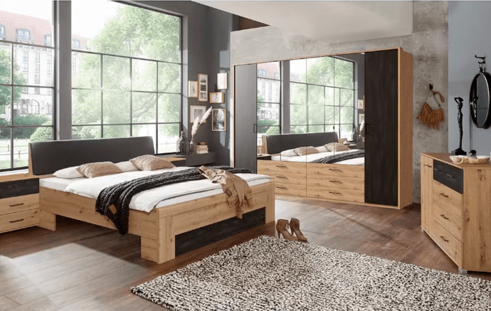 Komoda STACIE sa stane praktickou súčasťou vašej spálne alebo obývacej izby. Kombinácia prírodného dekora dubu artisan s grafitovou farbou vytvára modernú atmosféru v celej miestnosti.