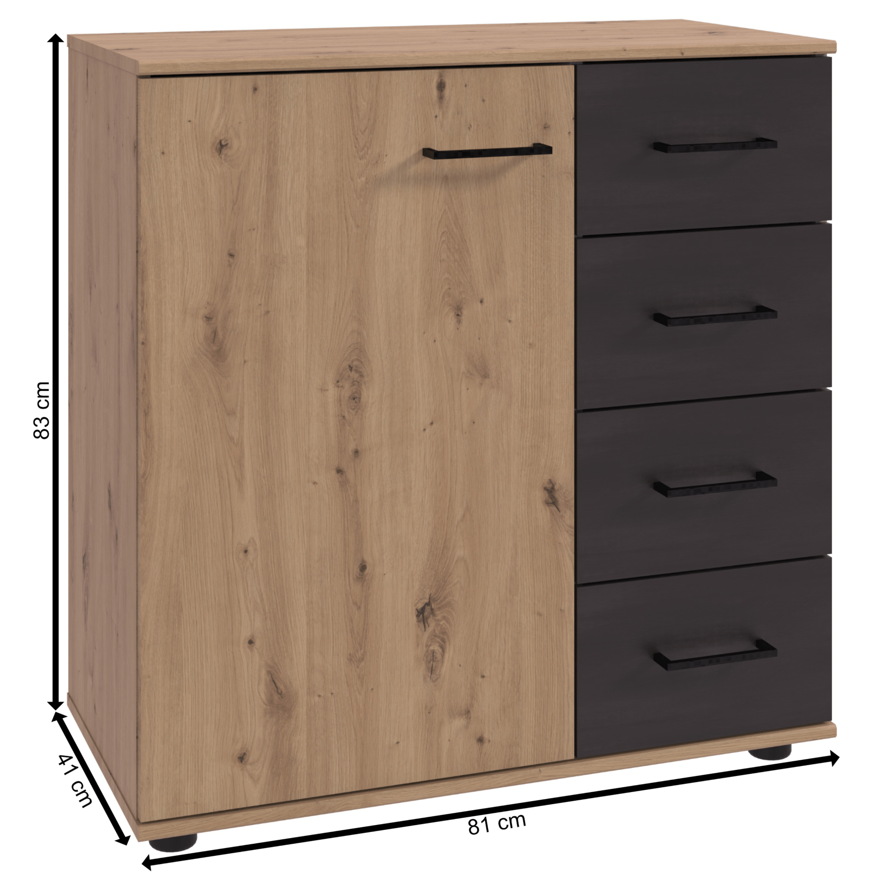 Komoda STACIE - grafit/dub artisan, šírka 81 cm