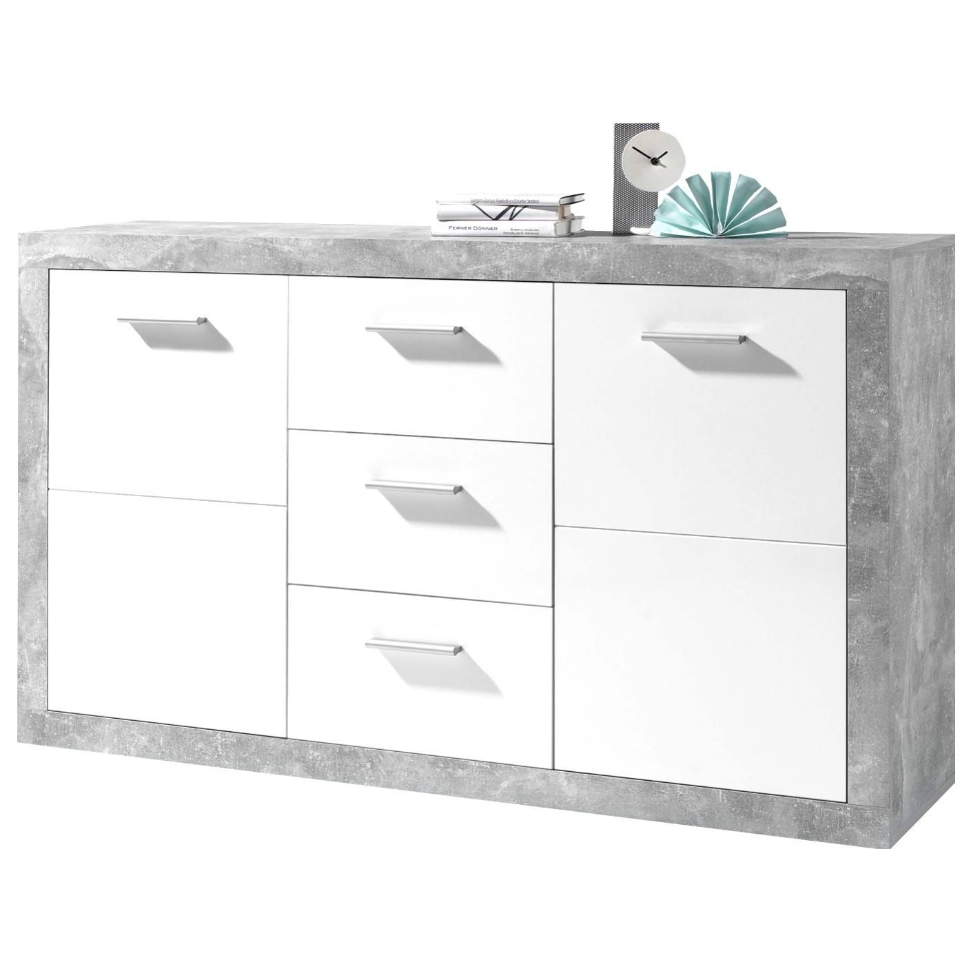Veľký úložný priestor poskytuje komoda STONE 2, ktorá kombinuje dekor betónu na korpuse s bielou farbou vo vysokom lesku na čelách zásuviek a dvierok. Váš interiér tak bude vybavený v modernom duchu. Dve vložené police za dvierkami a tri zásuvky vytvárajú veľmi praktický kus nábytku v jednoduchom funkčnom štýle. Všetko potrebné tak budete mať vždy po ruke. Vyrobená je z laminovaného dreveného materiálu, ktorý sa vyznačuje jednoduchou údržbou.