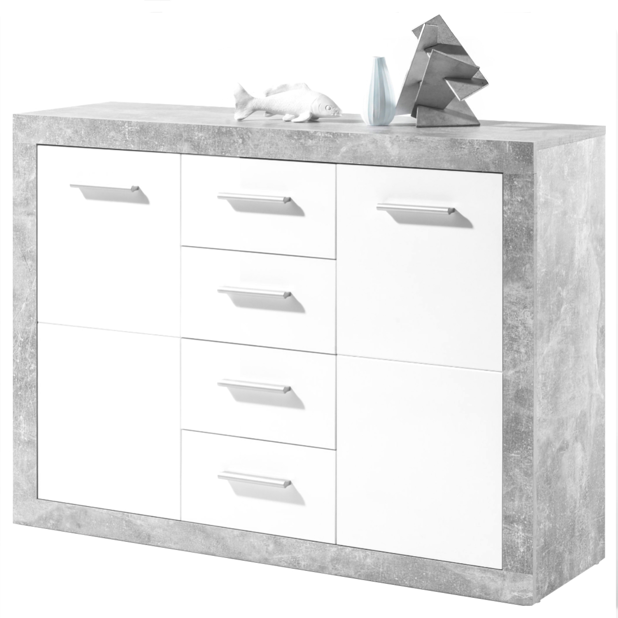 Kombinovaná komoda STONE 8, efektne kombinuje dekor kameňa na korpuse s bielou farbou vo vysokom lesku na čelách zásuviek a dvierok. Váš interiér tak bude vybavený v modernom duchu. Dve vložené police a štyri zásuvky vytvárajú veľmi praktický kus nábytku v jednoduchom funkčnom štýle. Všetko potrebné tak budete mať vždy po ruke. Vyrobená je z laminovaného dreveného materiálu, ktorý sa vyznačuje jednoduchou údržbou.