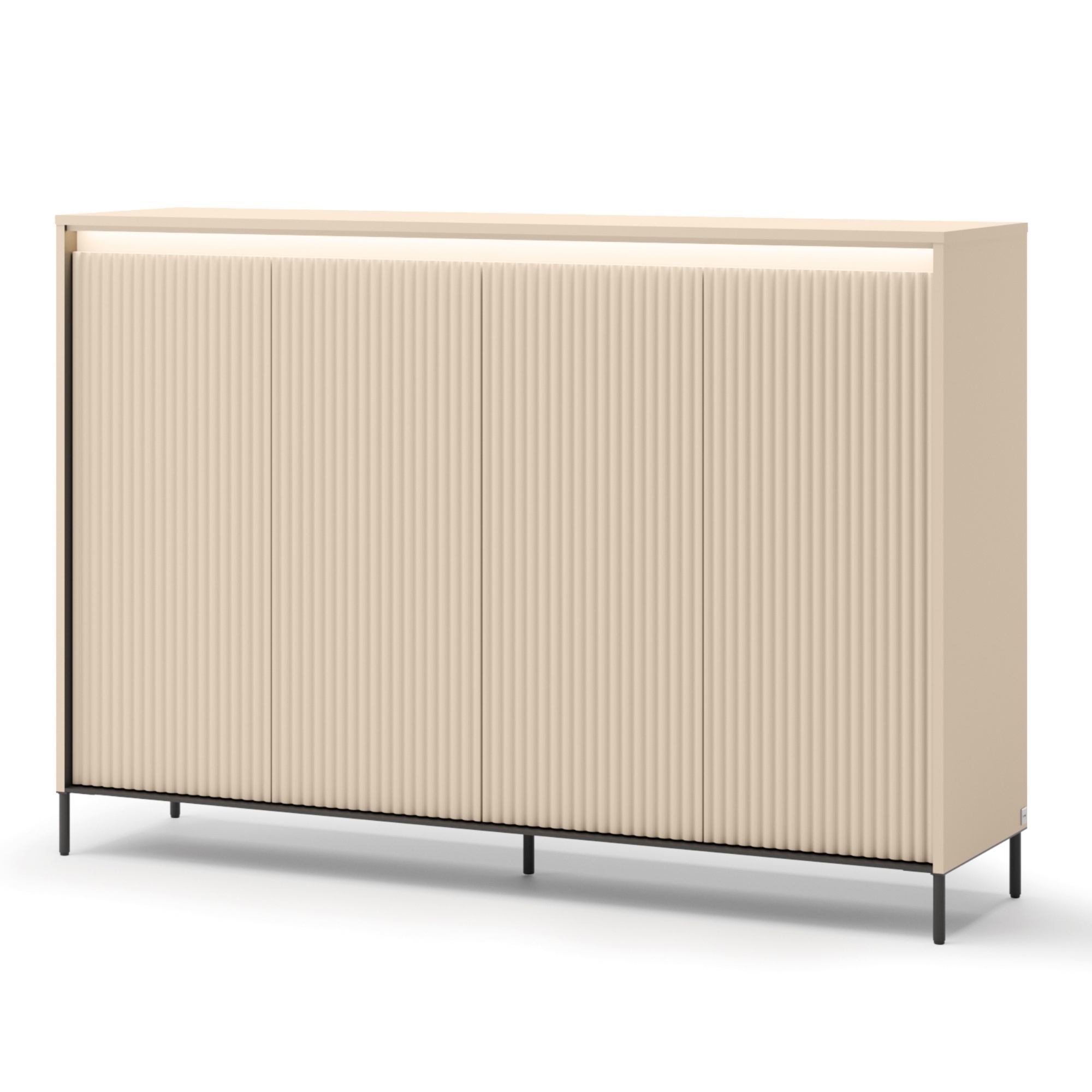 Komoda poskytuje dostatok úložného priestoru. Za jej dvierkami sa ukrýva 6 vložených políc. Nechýba ani elegantné LED osvetlenie.